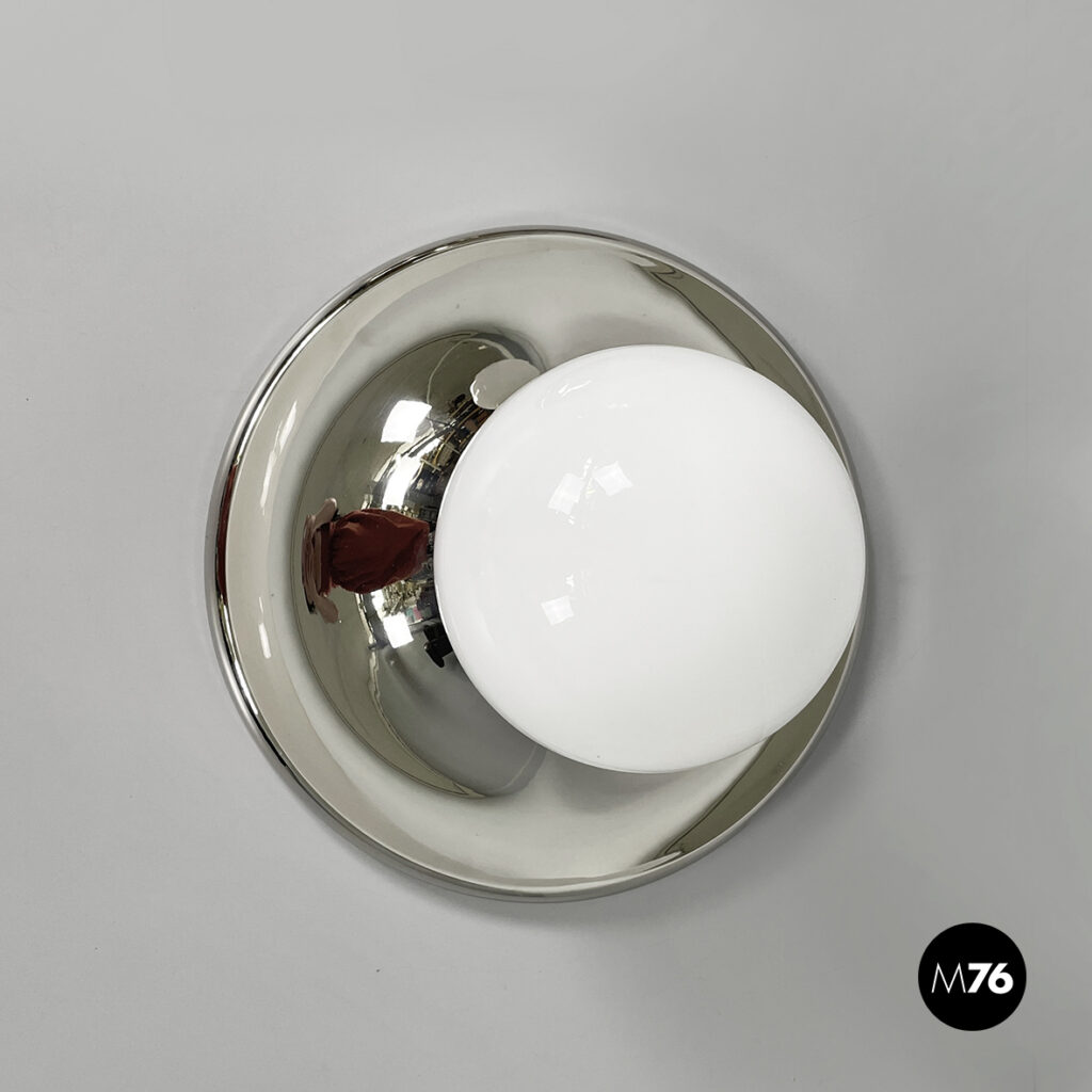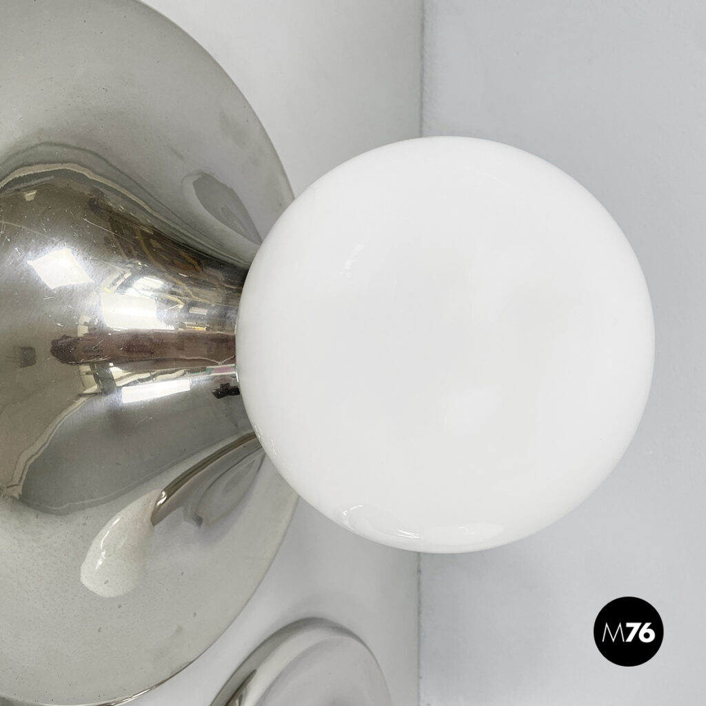 Coppia di applique o o plafoniere modello Light Ball con diffusore sferico in vetro opalino. La struttura a base tonda è in metallo.