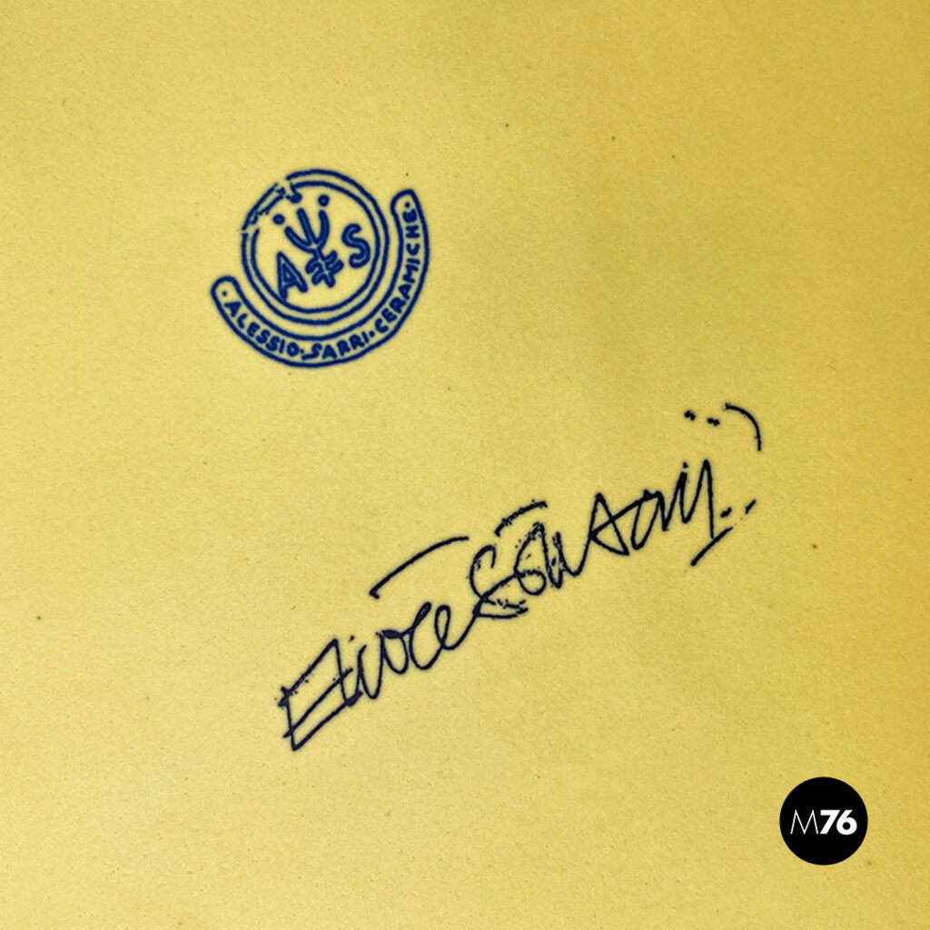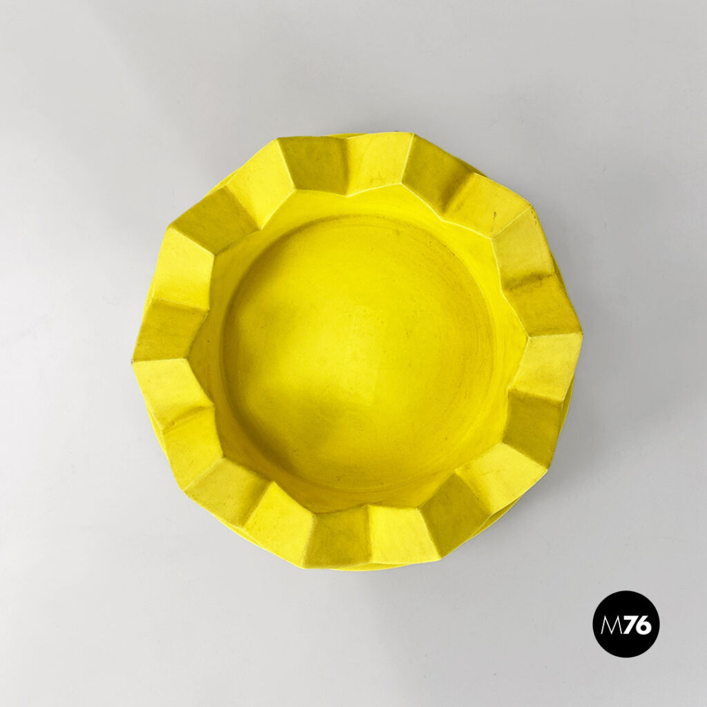 Centrotavola o portafrutta modello Camomilla in ceramica dipinta in giallo.