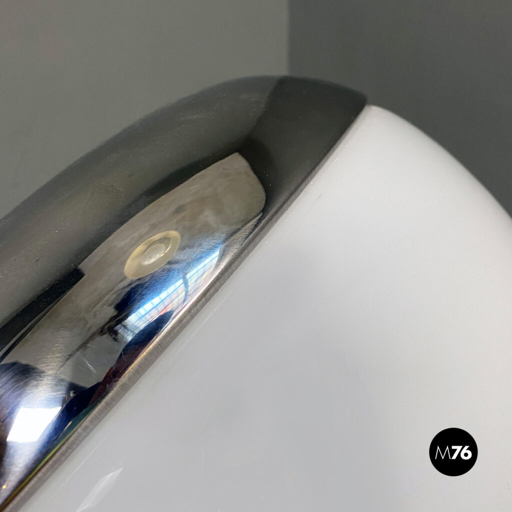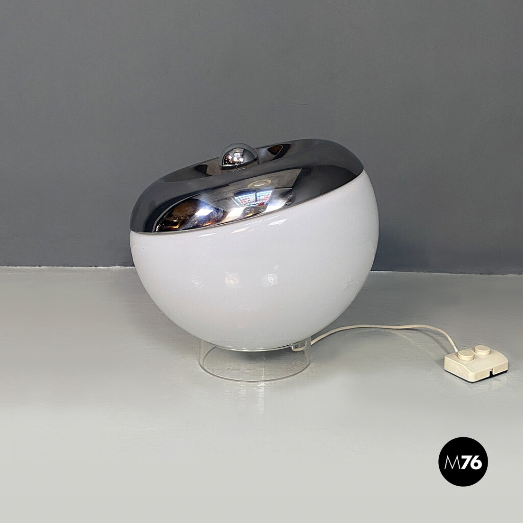 Lampada da tavolo orientabile in vetro opaline e metallo cromato.
