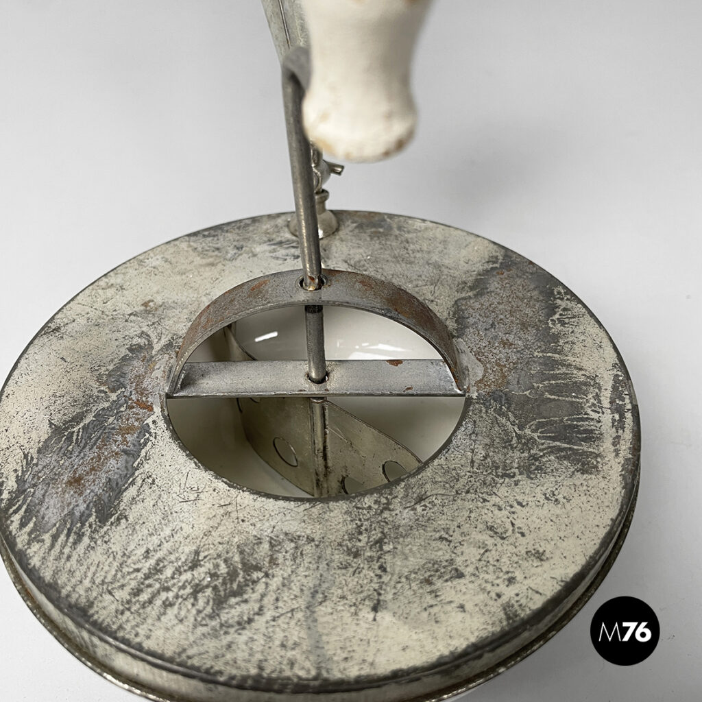 Condizioni vintage. Il metallo presenta numerosi segni del tempo e dell’utilizzo. Piccoli segni sulla ciotola in ceramica. In patina.