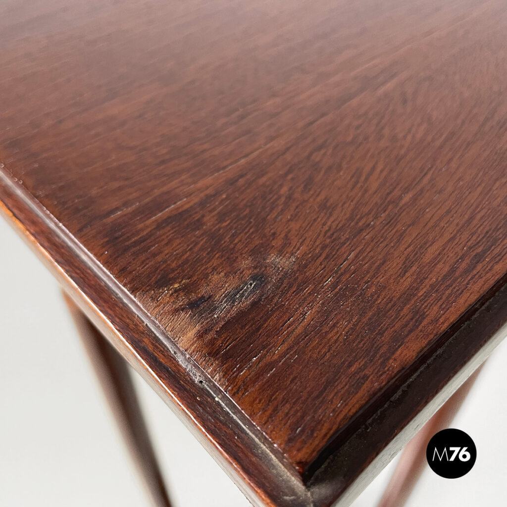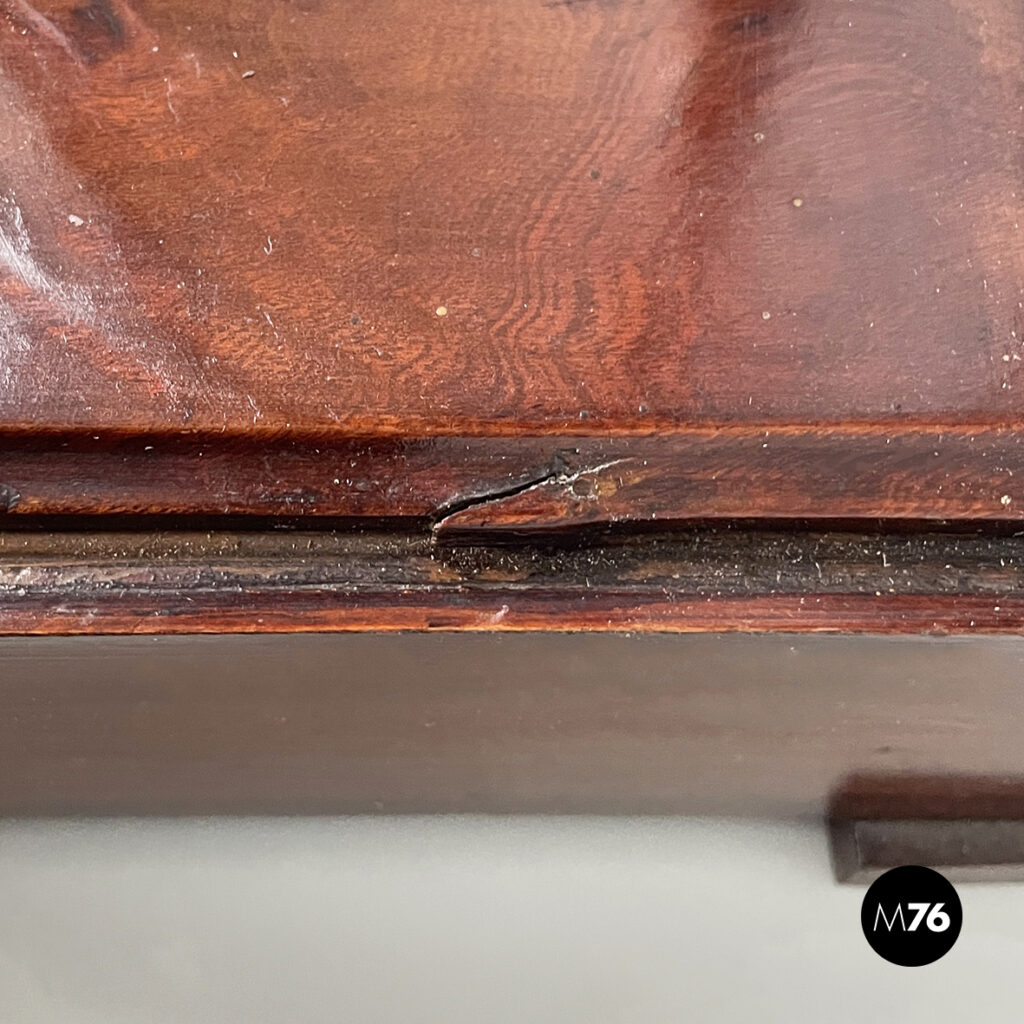 Buone condizioni. Segni sparsi e piccole mancanze sul legno date dal tempo. Ottone in patina.
