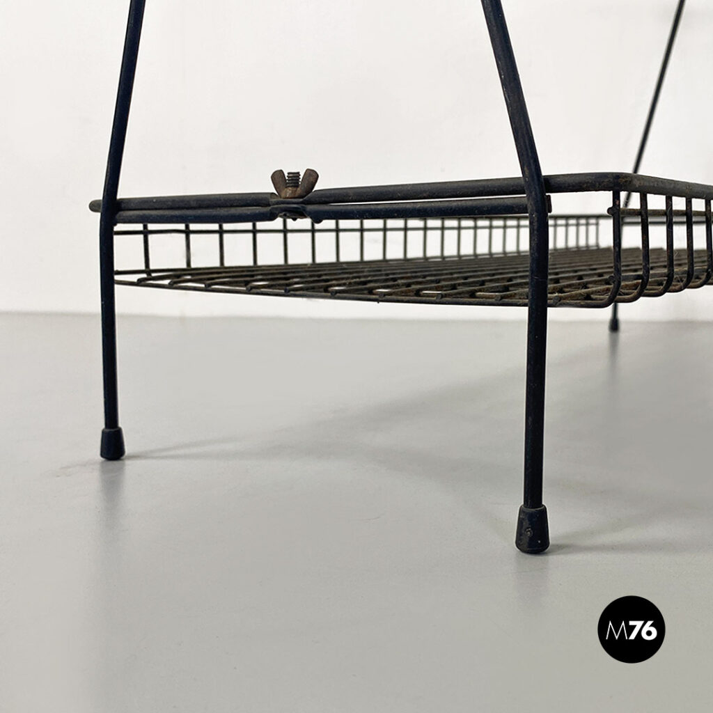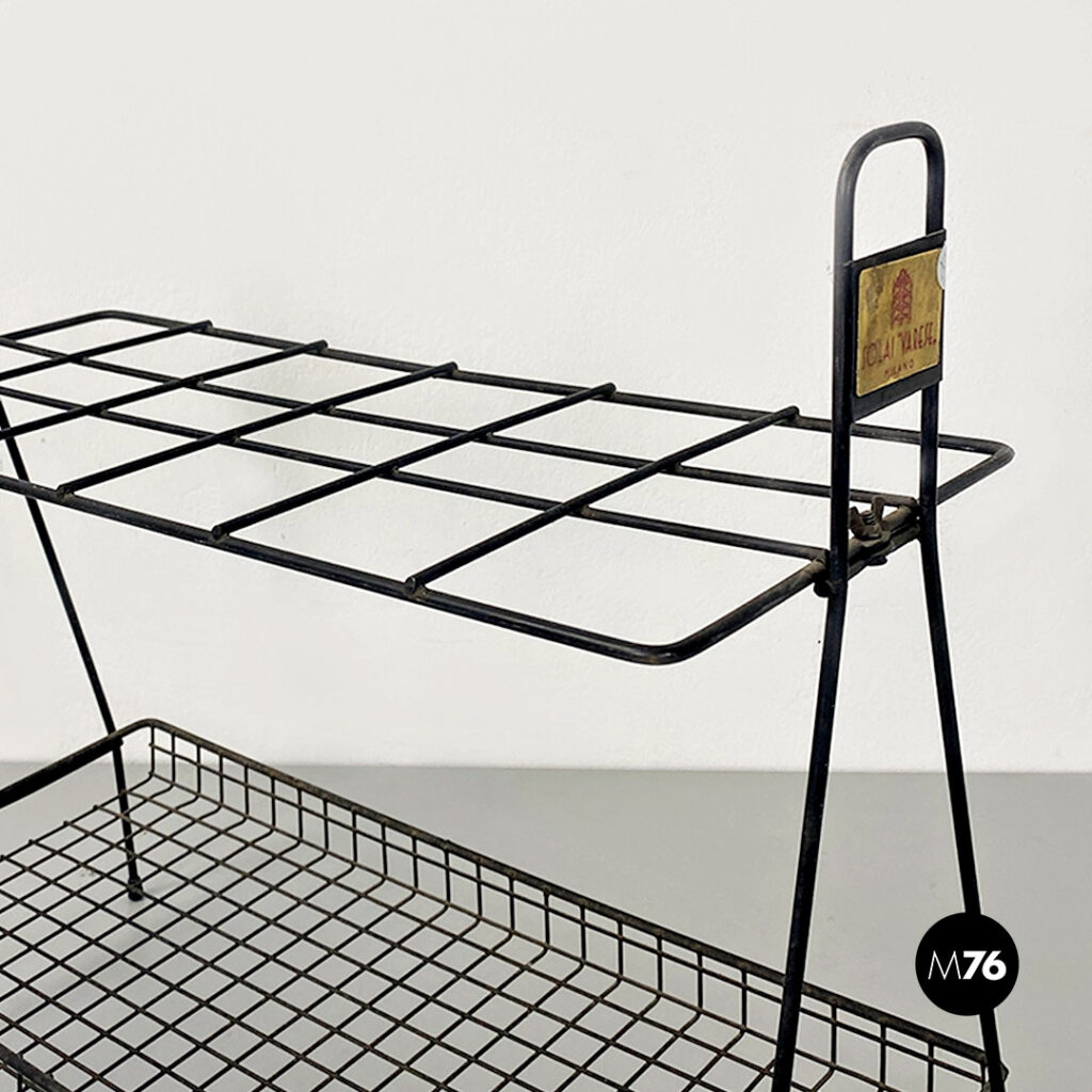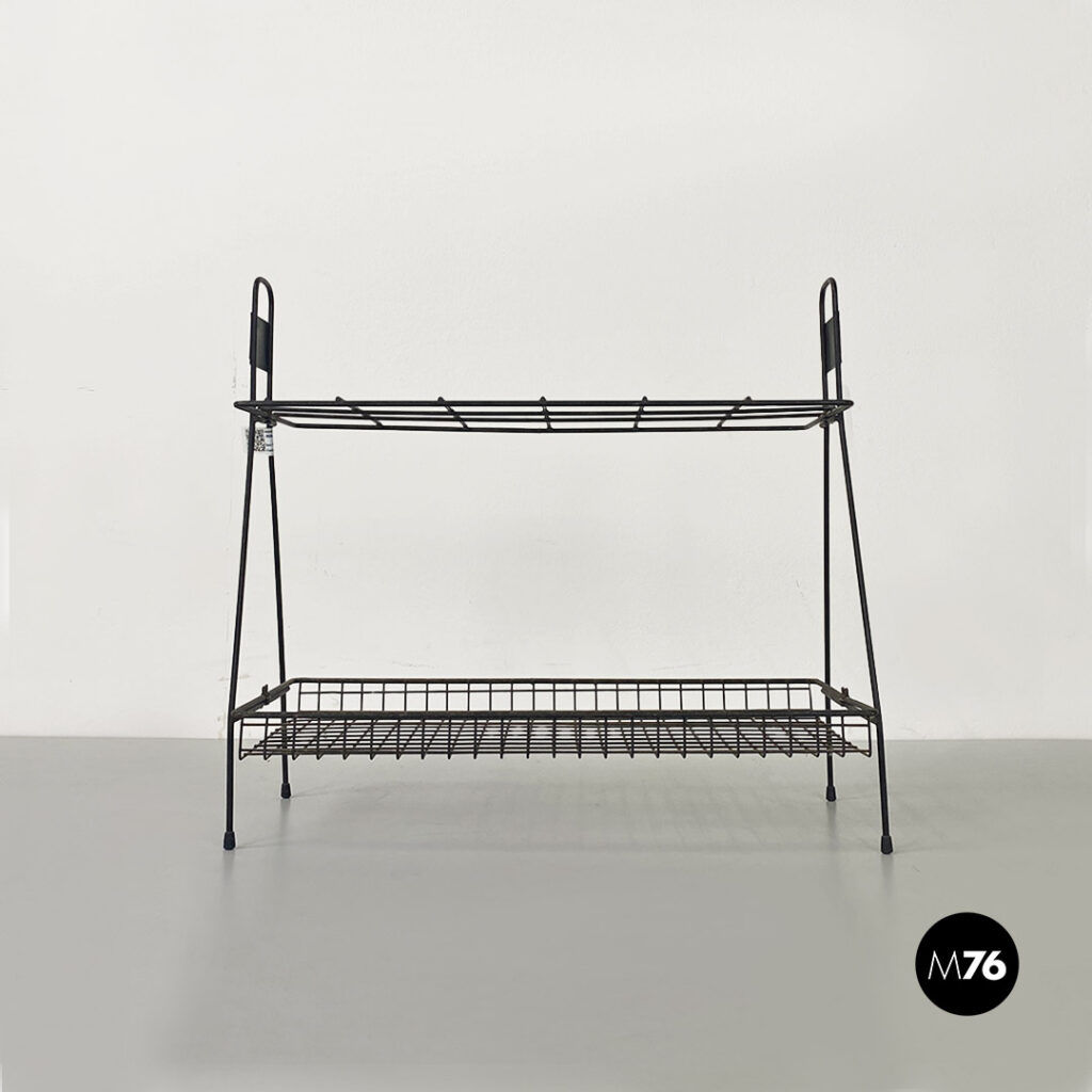 Portaombrelli in filo d’acciaio verniciato nero con due ripiani.