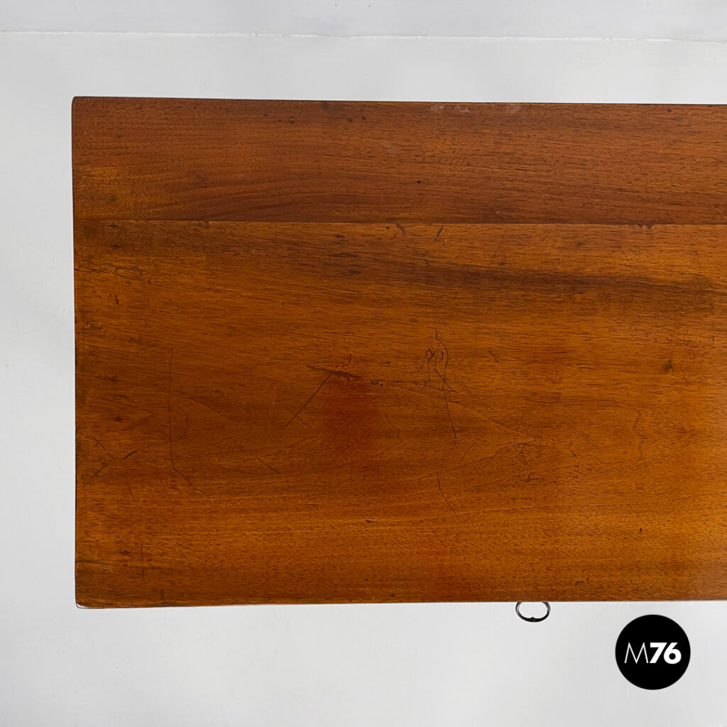 Scrivania o scrittoio con piano rettangolare in legno. Sul fronte il tavolo presenta un cassetto a scomparsa. Le gambe sono a sezione quadrata.