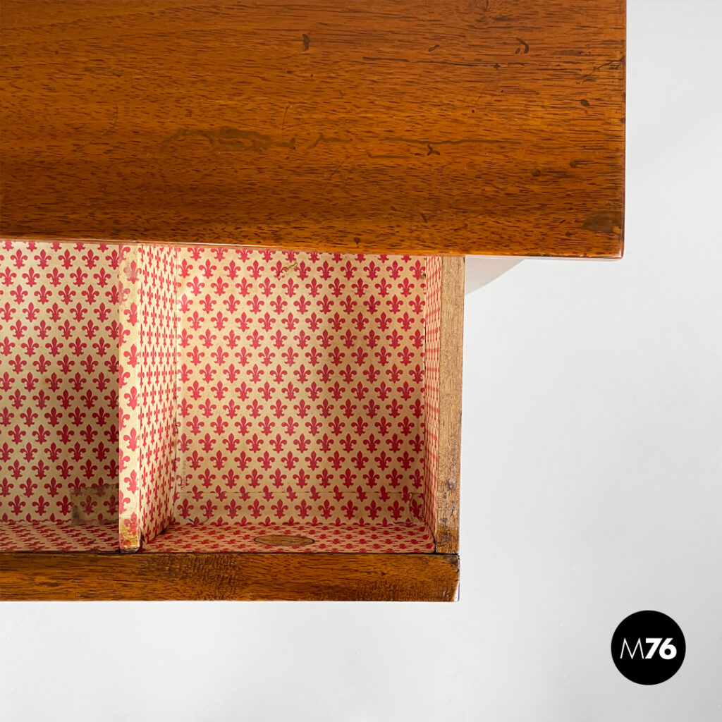 Condizioni vintage, con segni dell’uso e del tempo, qualche graffio sul piano e macchie sulla carta che riveste il cassetto.
