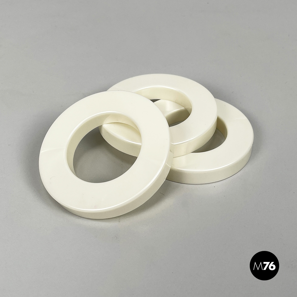 Set di tre anelli rotondi per il calendario perpetuo da parete di Ring A Date, in plastica bianco perla. L’anello ha la funzione di segnare il giorno, il numero ed il mese sul calendario. Il set di anelli è disponibile anche in altri colori.