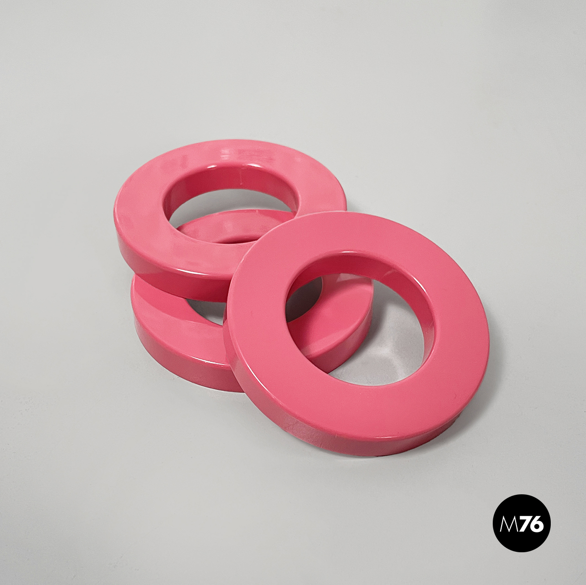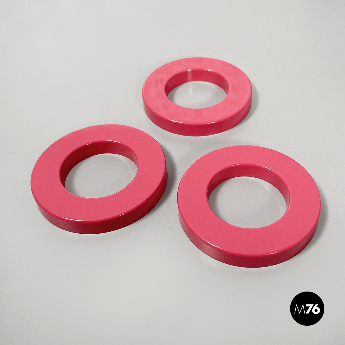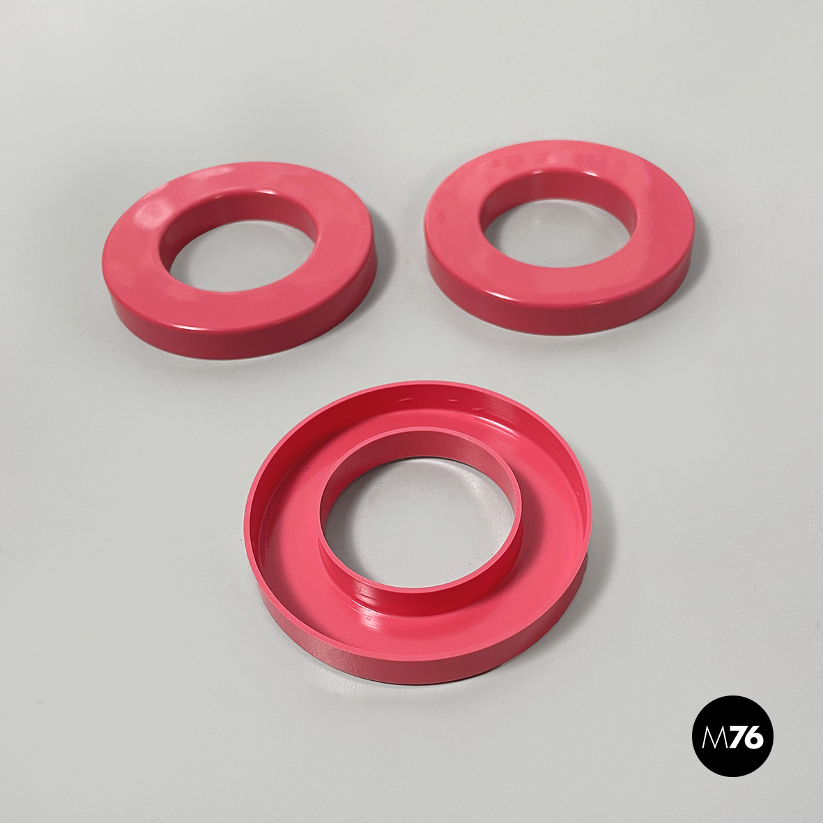 Set di tre anelli tondi per calendario infinito da parete di Ring A Date, in plastica rosa brillante. L’anello ha la funzione di segnare giorno, numero e mese sul calendario. Il set di anelli è disponibile anche in altri colori.