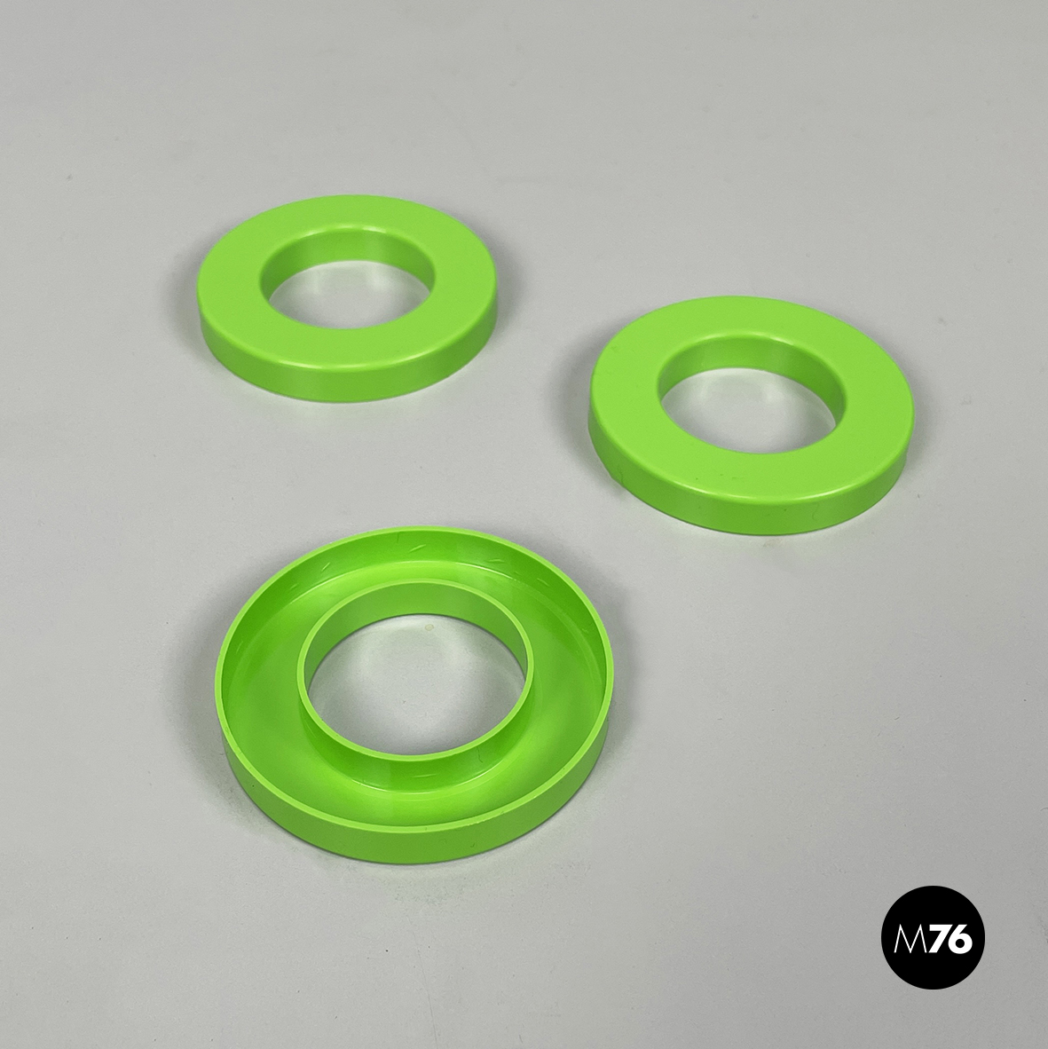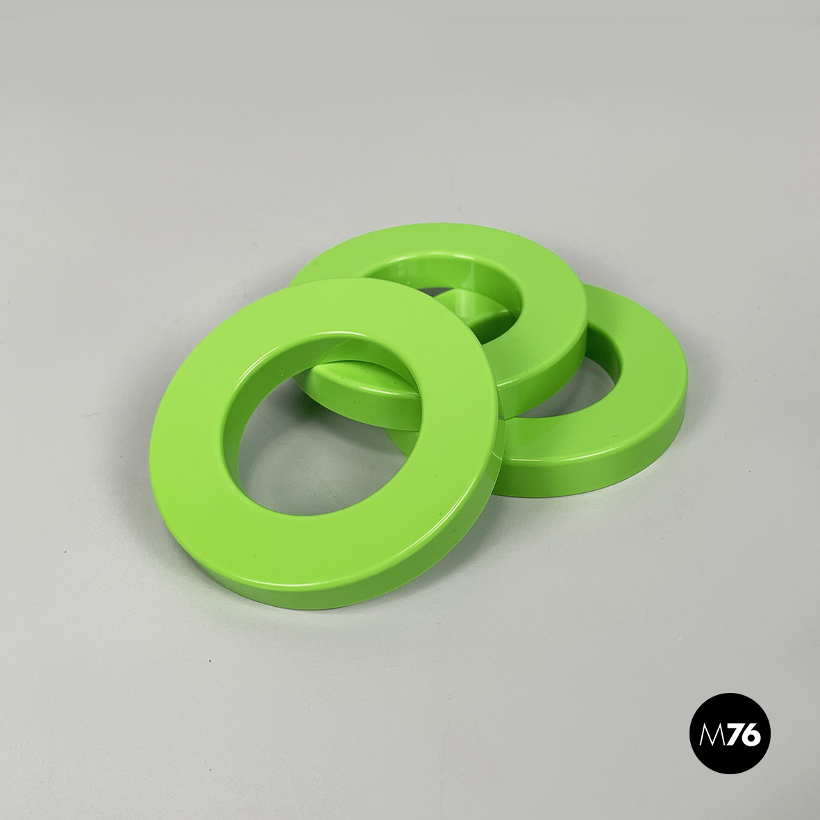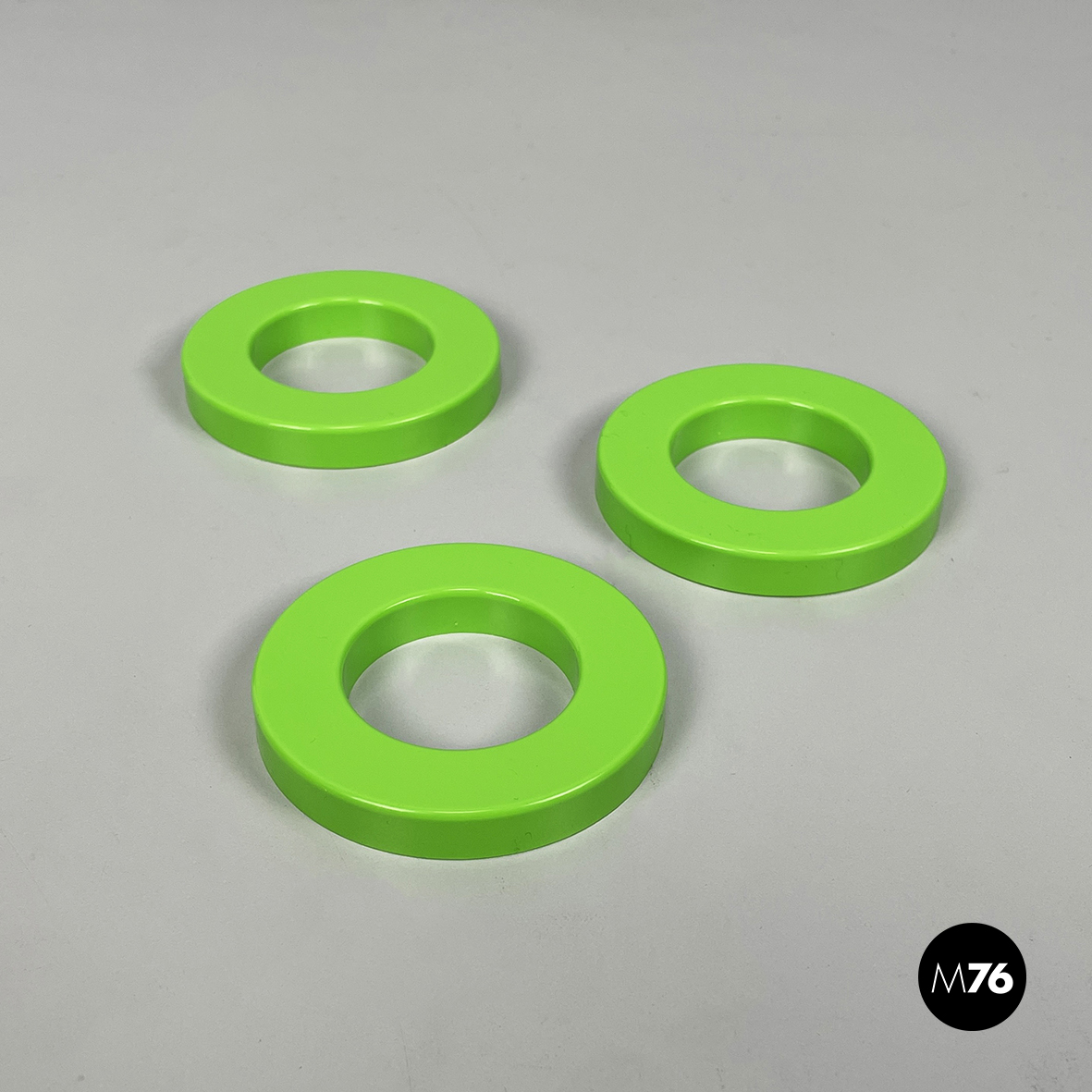 Set di tre anelli rotondi per il calendario perpetuo da parete di Ring A Date, in plastica verde chiaro. L’anello ha la funzione di segnare il giorno, il numero ed il mese sul calendario. Il set di anelli è disponibile anche in altri colori.