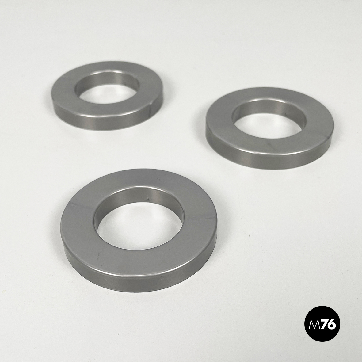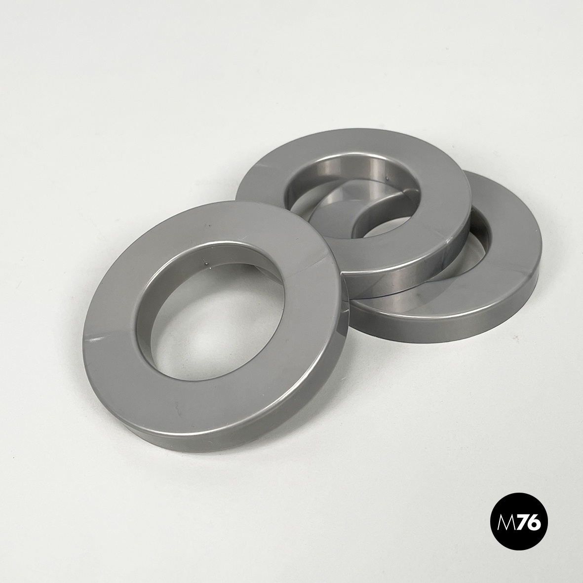 Set di tre anelli rotondi per il calendario perpetuo da parete di Ring A Date, in plastica grigio argento. L’anello ha la funzione di segnare il giorno, il numero ed il mese sul calendario. Il set di anelli è disponibile anche in altri colori.