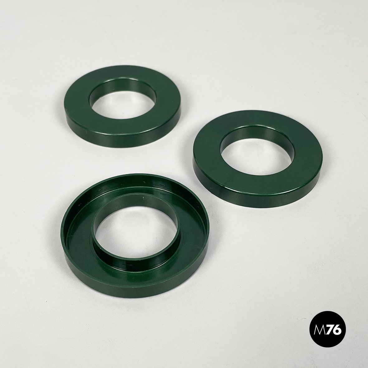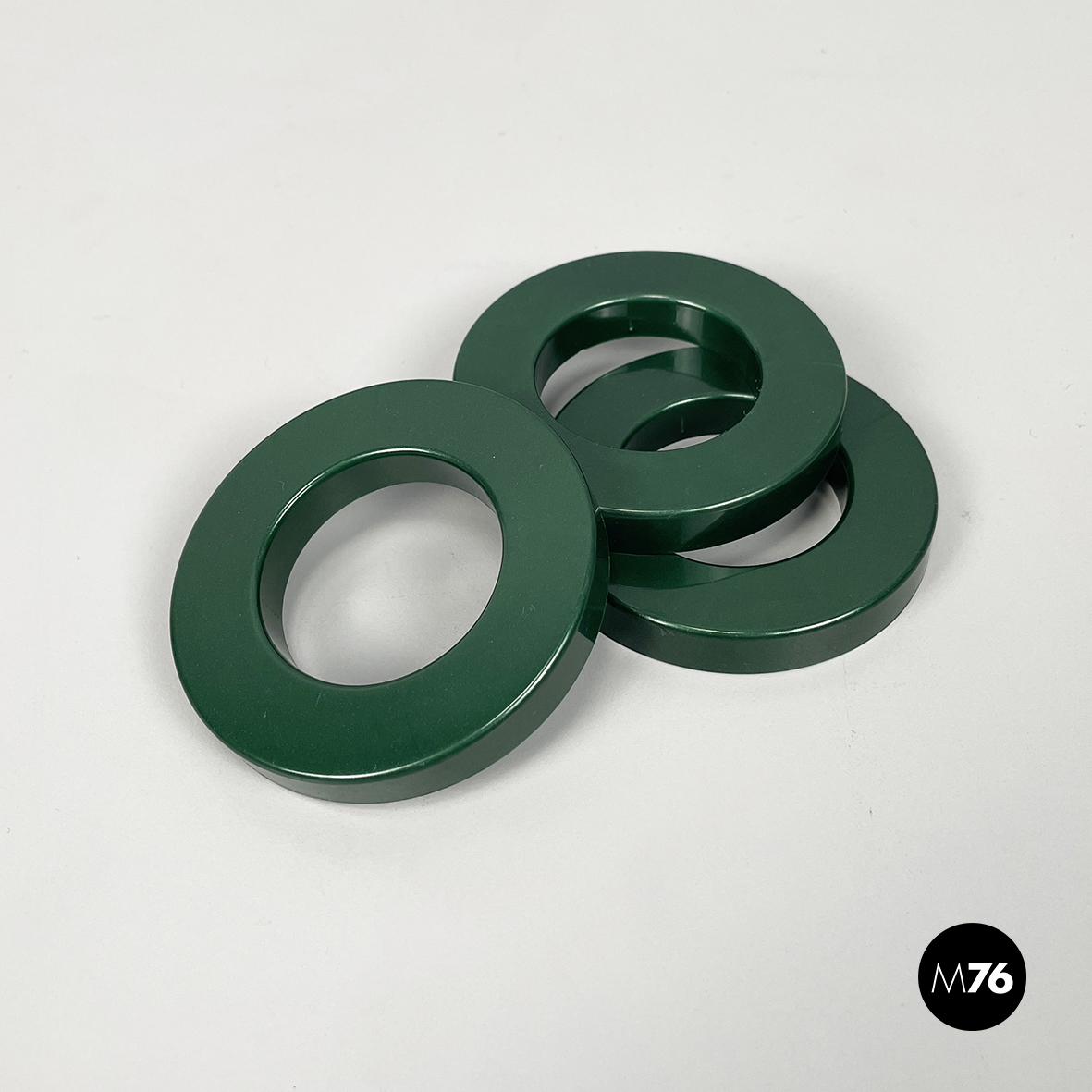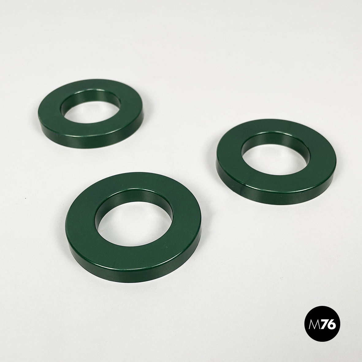 Set di tre anelli tondi per calendario infinito da parete di Ring A Date, in plastica verde bosco. L’anello ha la funzione di segnare giorno, numero e mese sul calendario. Il set di anelli è disponibile anche in altri colori.