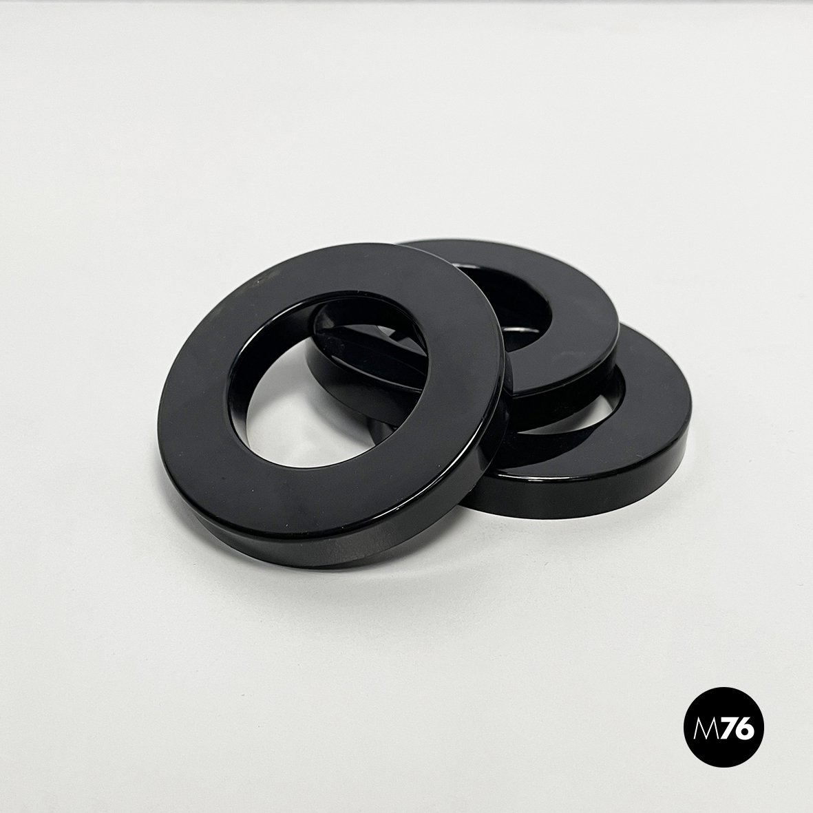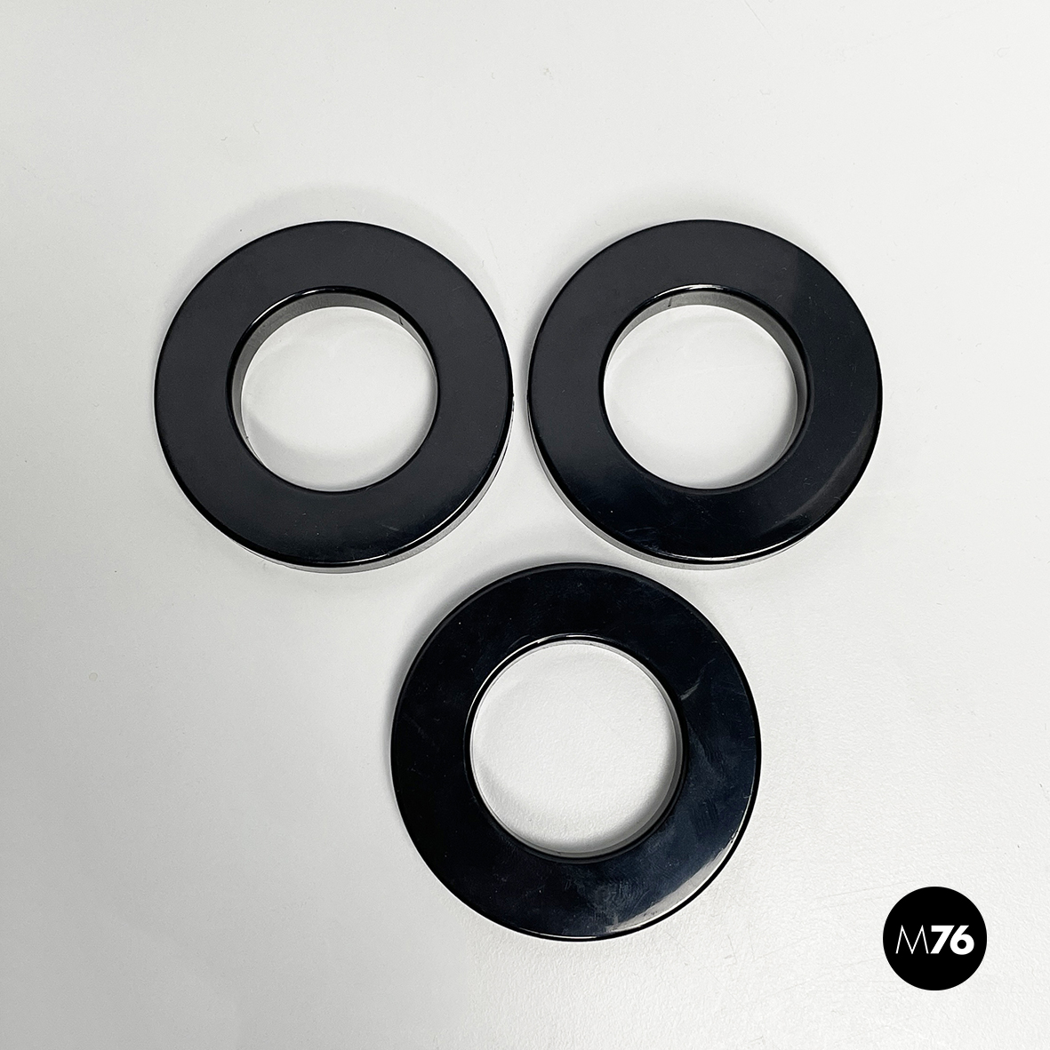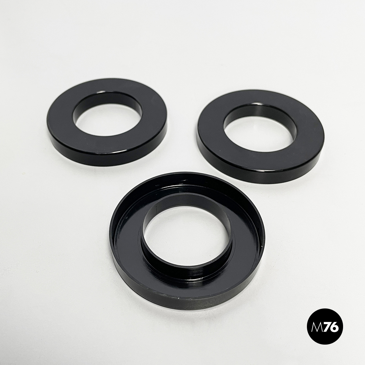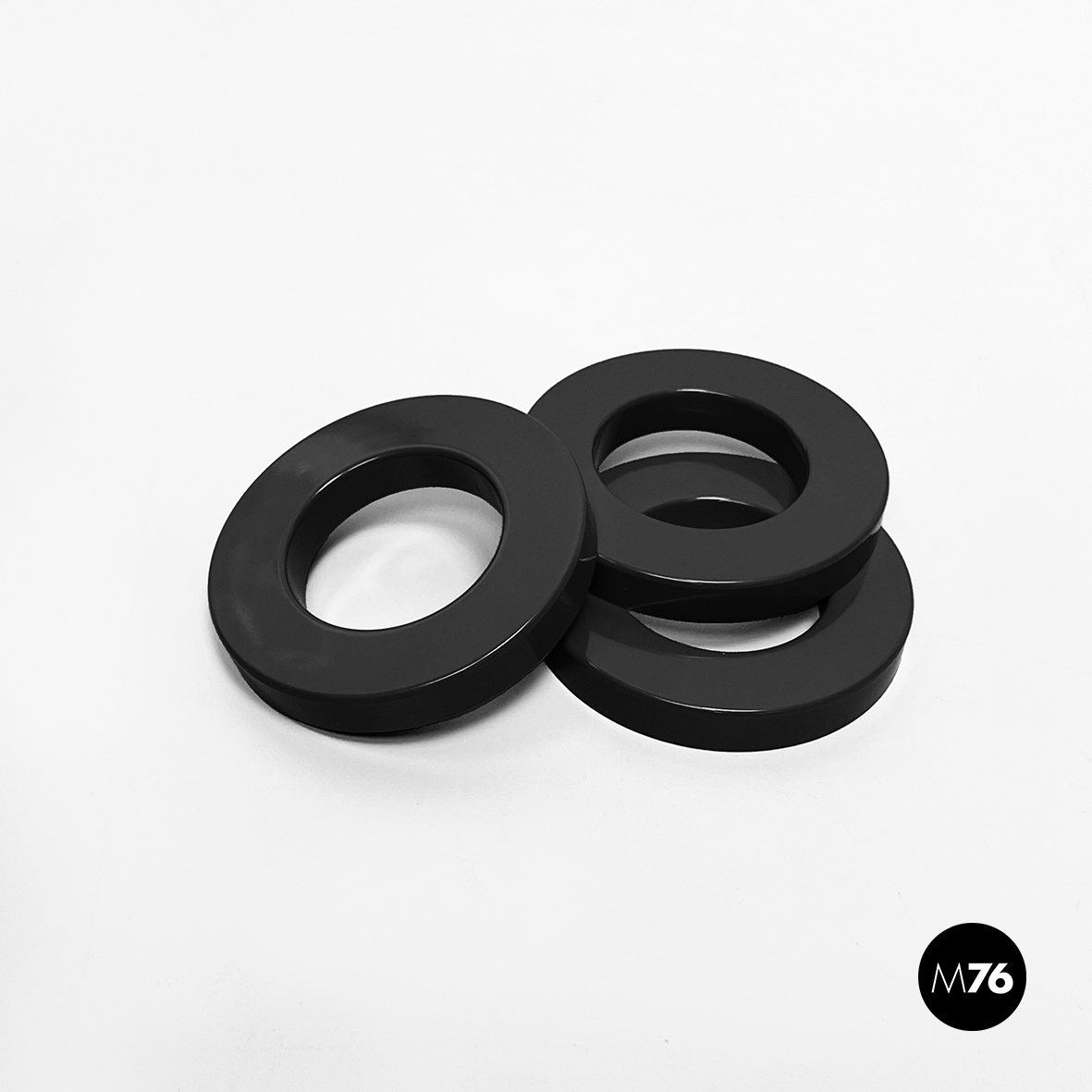 Set di tre anelli tondi per calendario infinito da parete di Ring A Date, in plastica nera. L’anello ha la funzione di segnare giorno, numero e mese sul calendario. Il set di anelli è disponibile anche in altri colori.