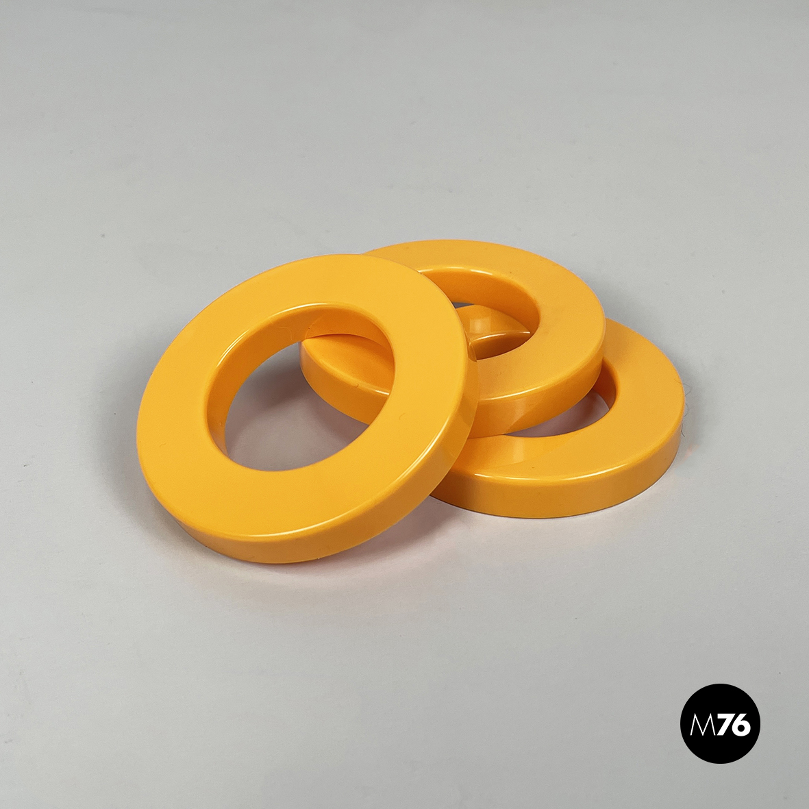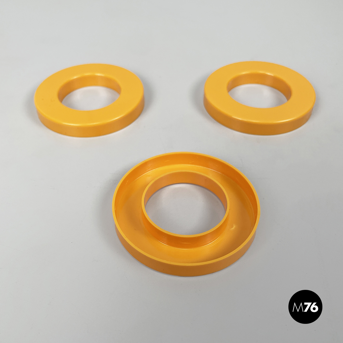 Set di tre anelli tondi per calendario infinito da parete di Ring A Date, in plastica arancione. L’anello ha la funzione di segnare giorno, numero e mese sul calendario. Il set di anelli è disponibile anche in altri colori.
