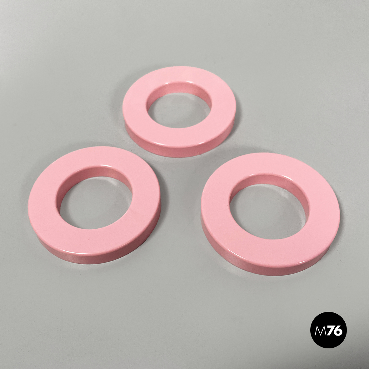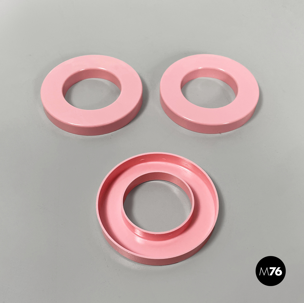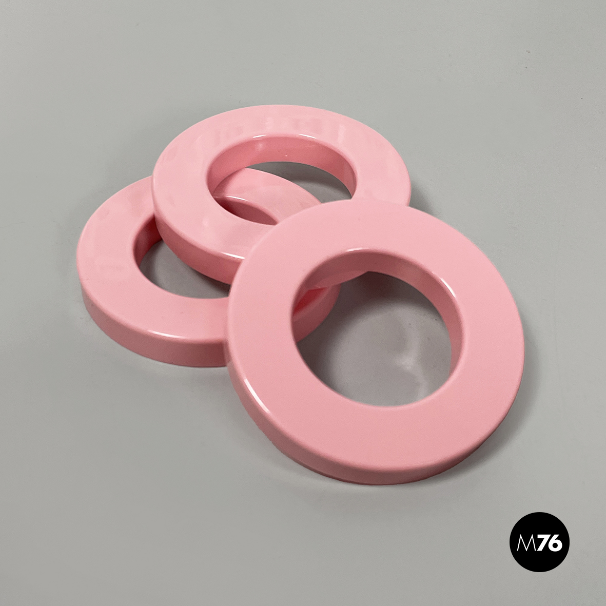 Set di tre anelli tondi per calendario infinito da parete di Ring A Date, in plastica rosa chiaro. L’anello ha la funzione di segnare giorno, numero e mese sul calendario. Il set di anelli è disponibile anche in altri colori.