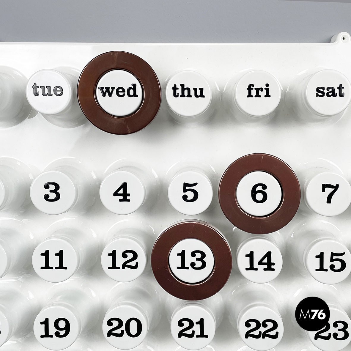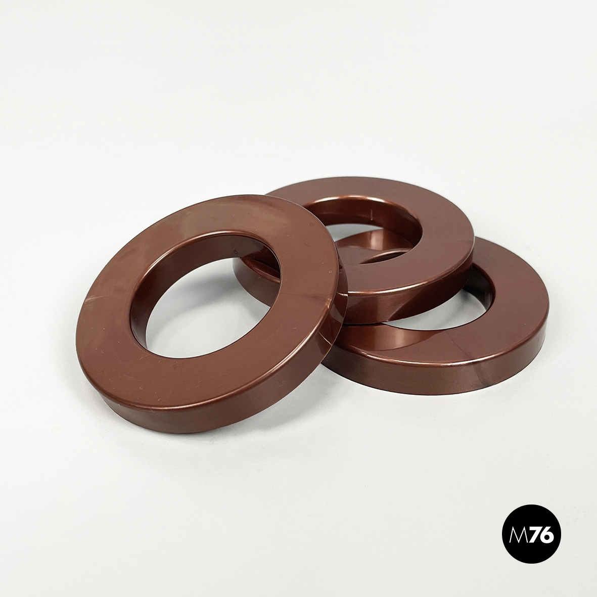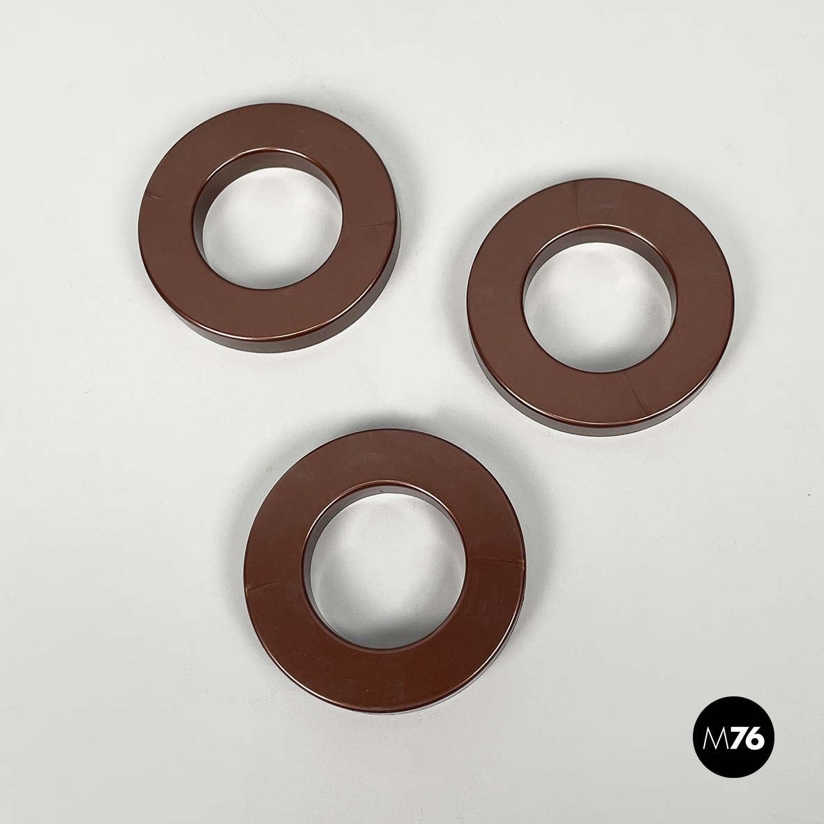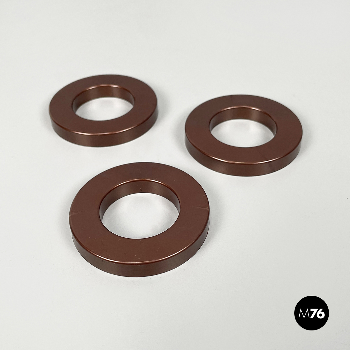 Set di tre anelli tondi per calendario infinito da parete di Ring A Date, in plastica marrone. L’anello ha la funzione di segnare giorno, numero e mese sul calendario. Il set di anelli è disponibile anche in altri colori.