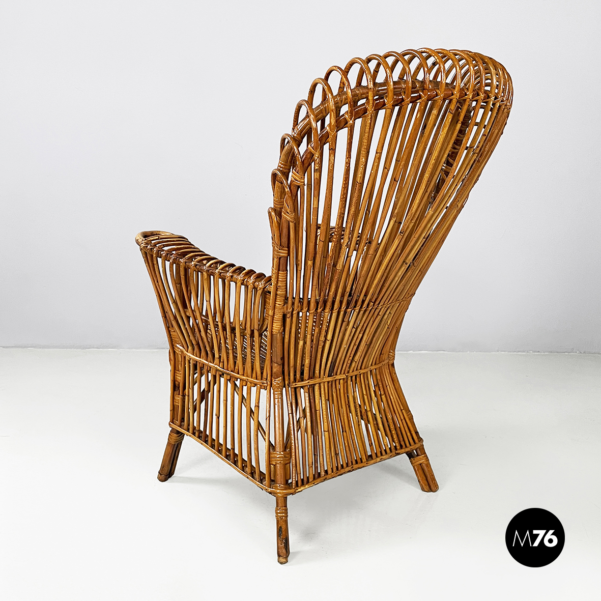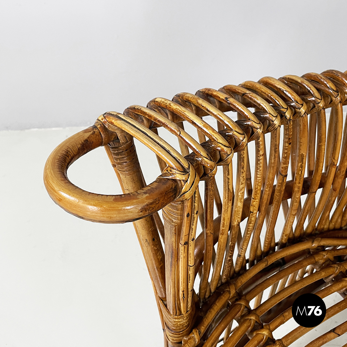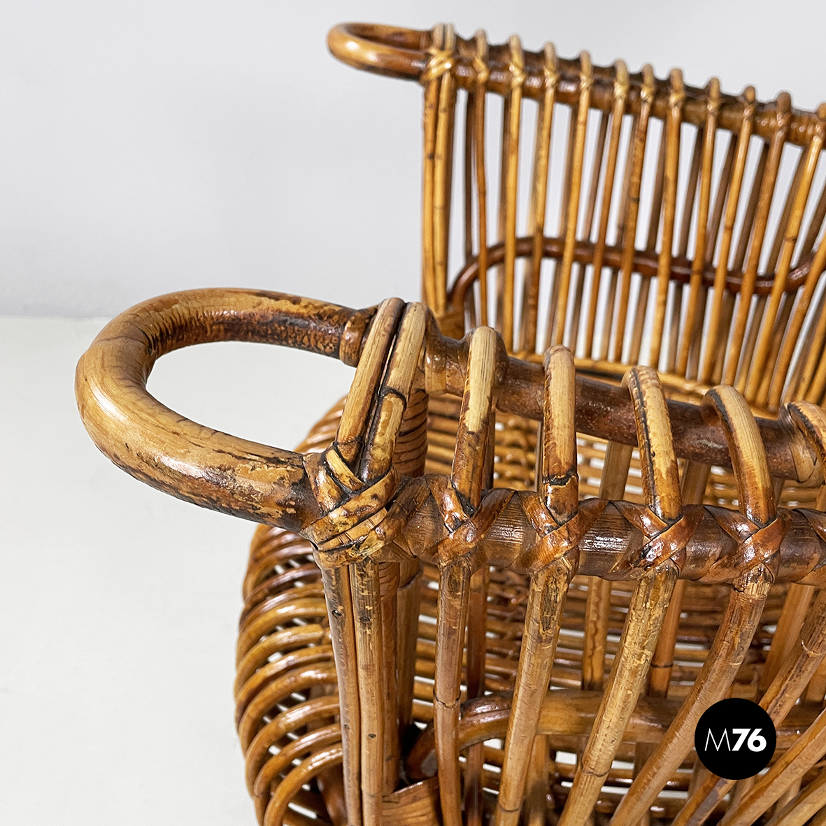 Poltrona interamente in rattan finemente intrecciato. Lo schienale, i braccioli e la seduta presentano un profilo tondeggiante. Piedini a sezione tonda. Adatta ad uso esterno come in giardino.