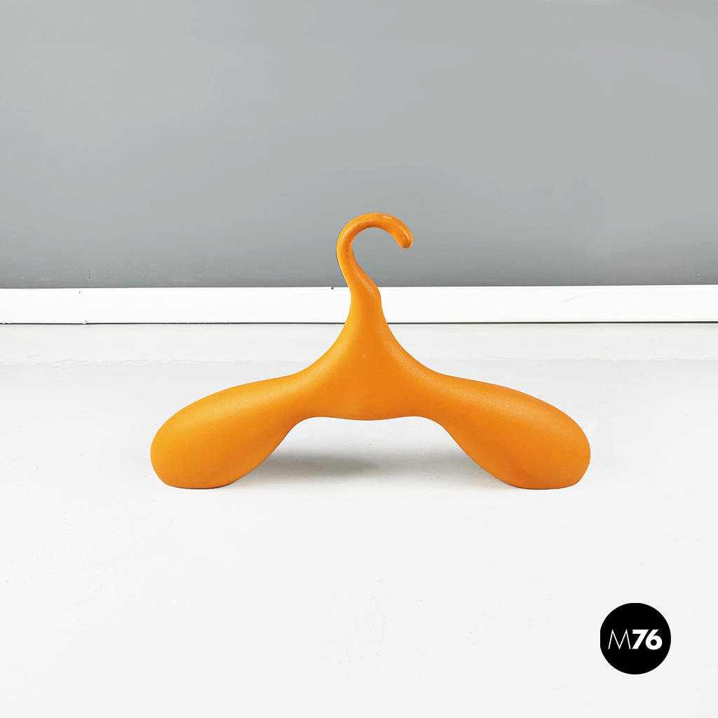 Appendiabiti da parete modello Dino in poliuretano espanso morbido e strutturato in arancione brillante. L’omino è stato realizzato per essere posta appeso all’interno di un armadio o anche poggiato a terra.