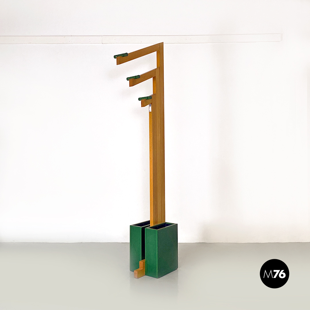 Appendiabiti in legno verde con portaombrelli, 1980 ca.