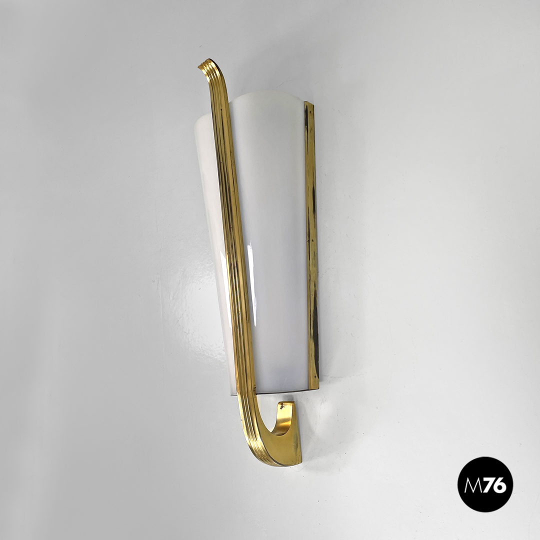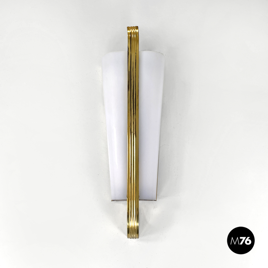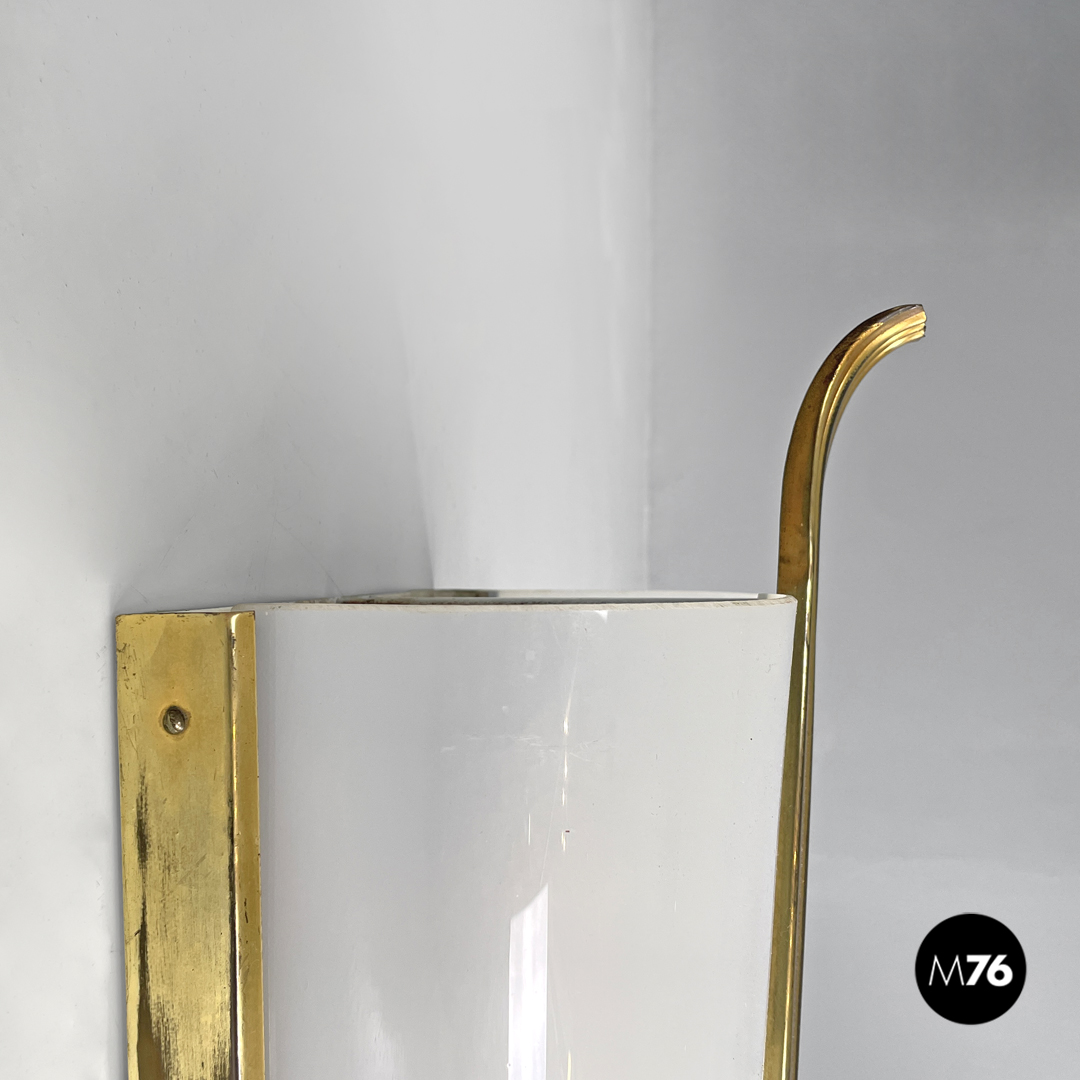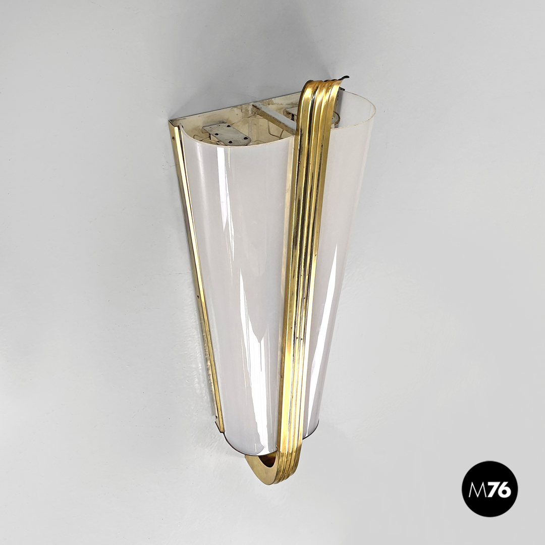 Applique in plexiglass bianco e ottone, 1950 ca.