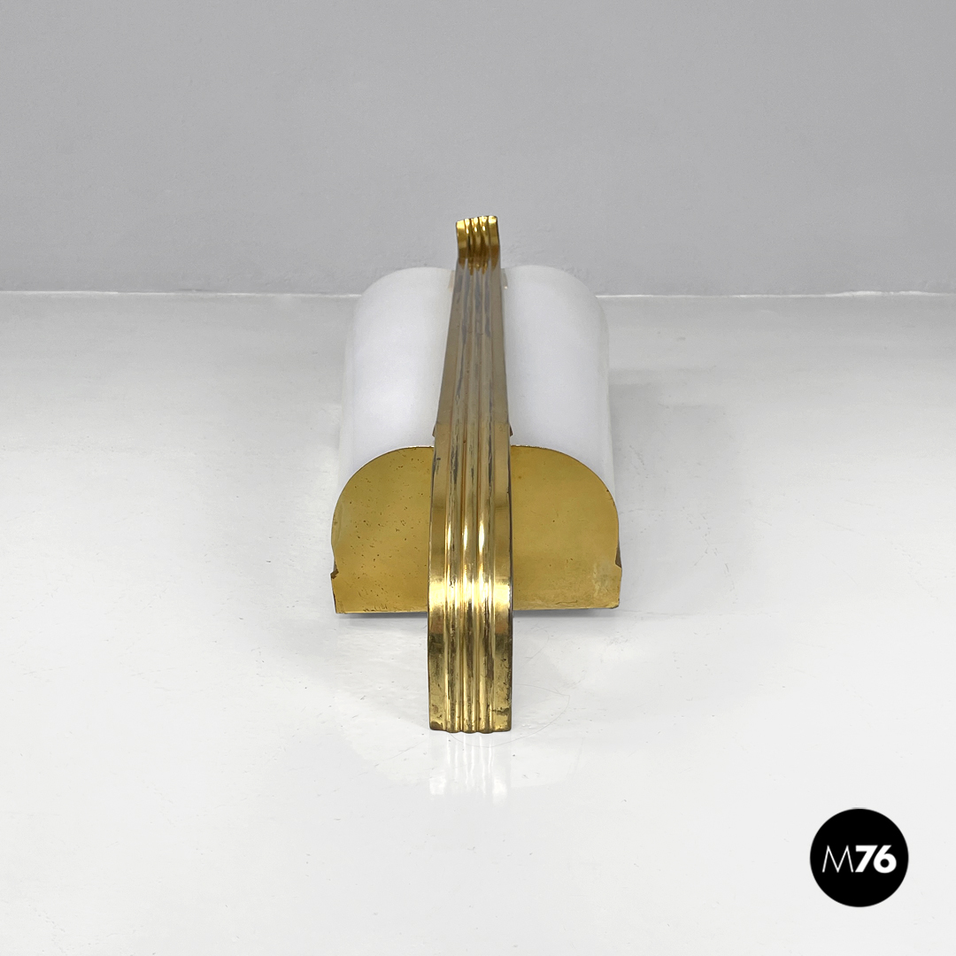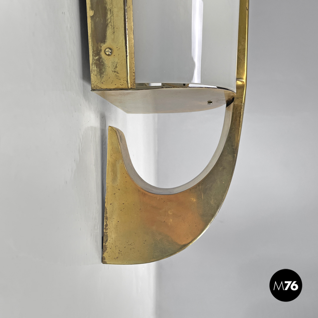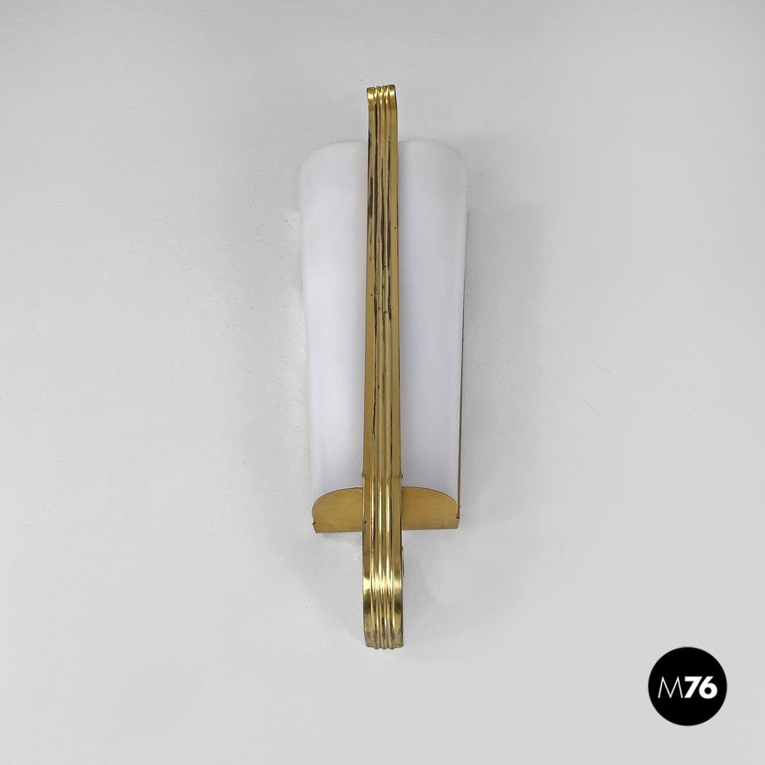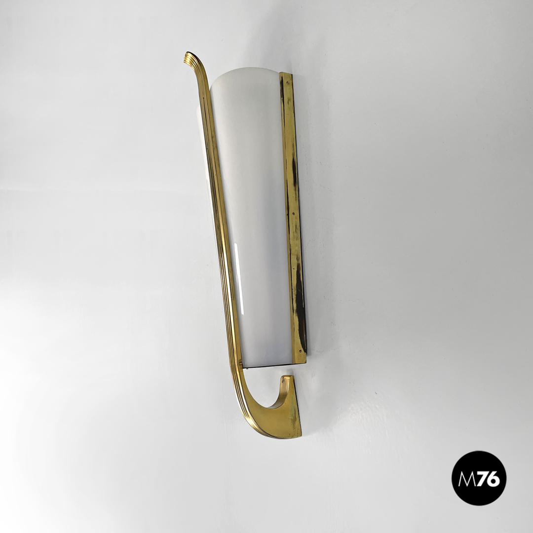 Applique in plexiglass bianco e ottone, 1950 ca.