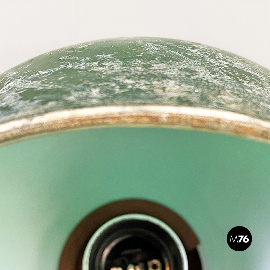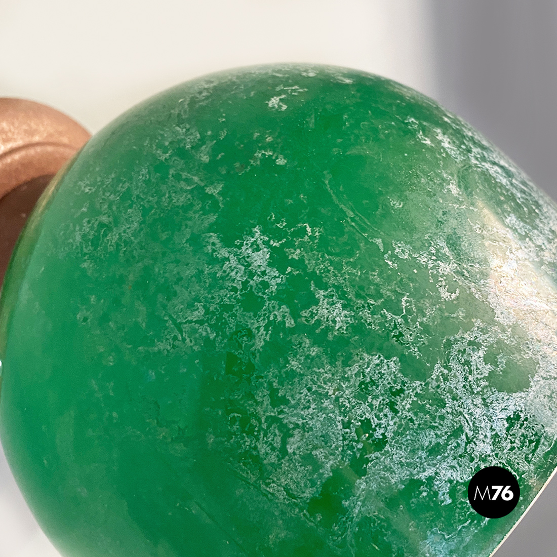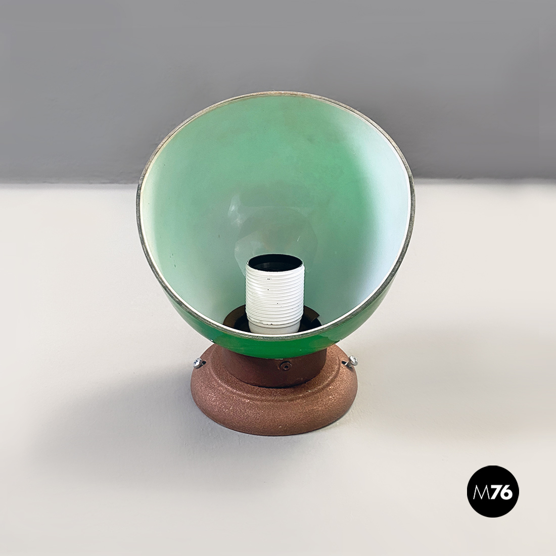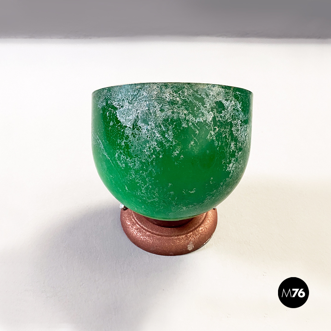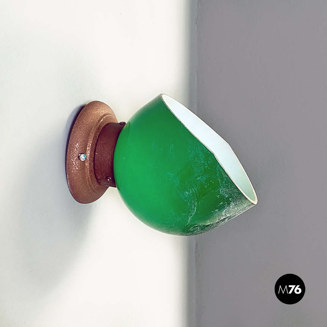 Set di tre appliques in vetro incamiciato verde all’esterno e bianco all’interno, con portalampada in lamiera.