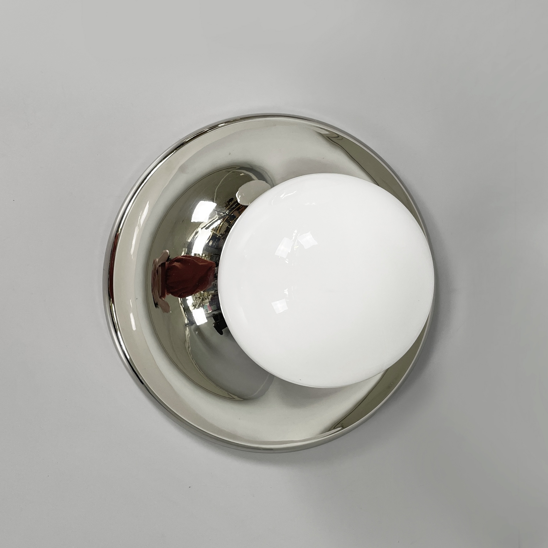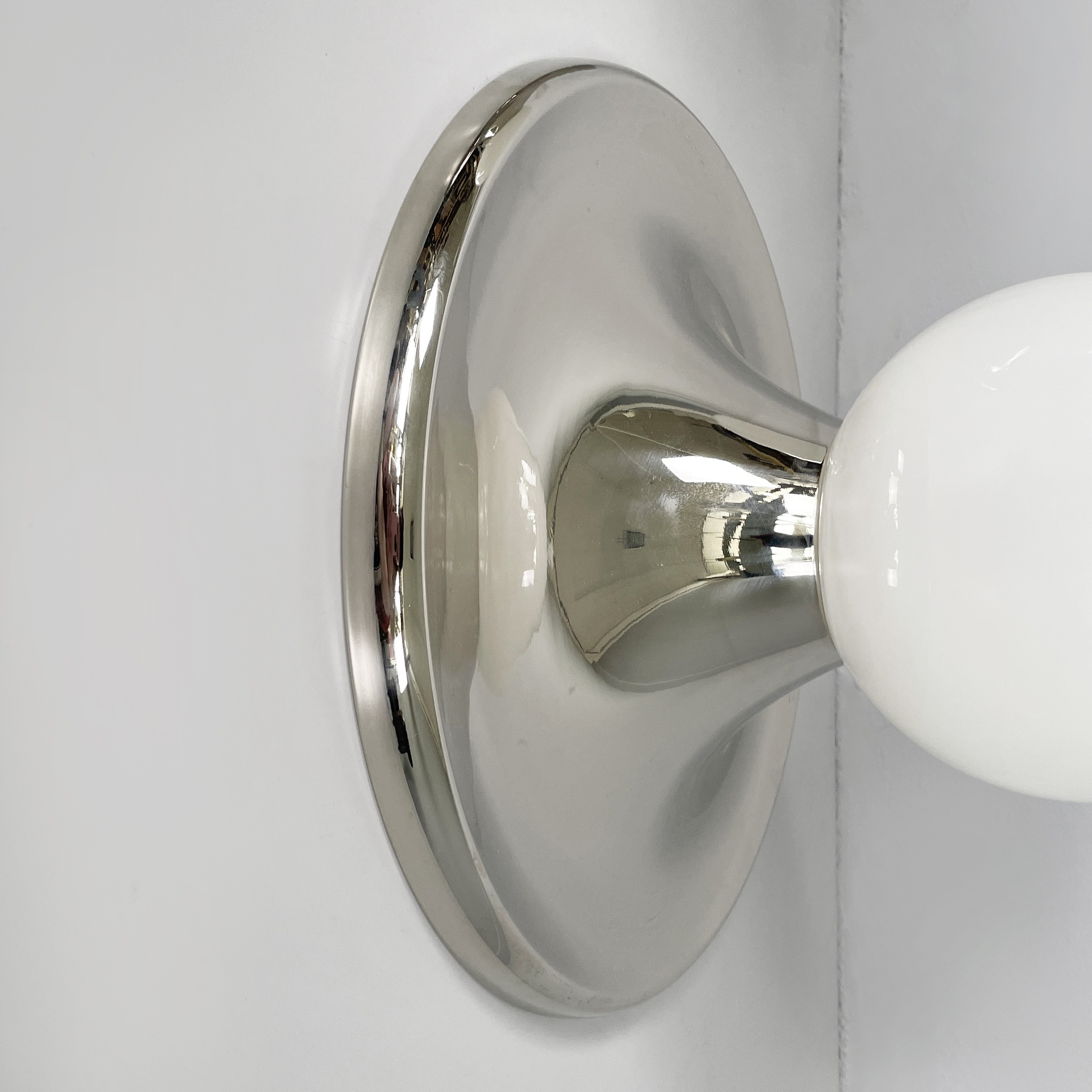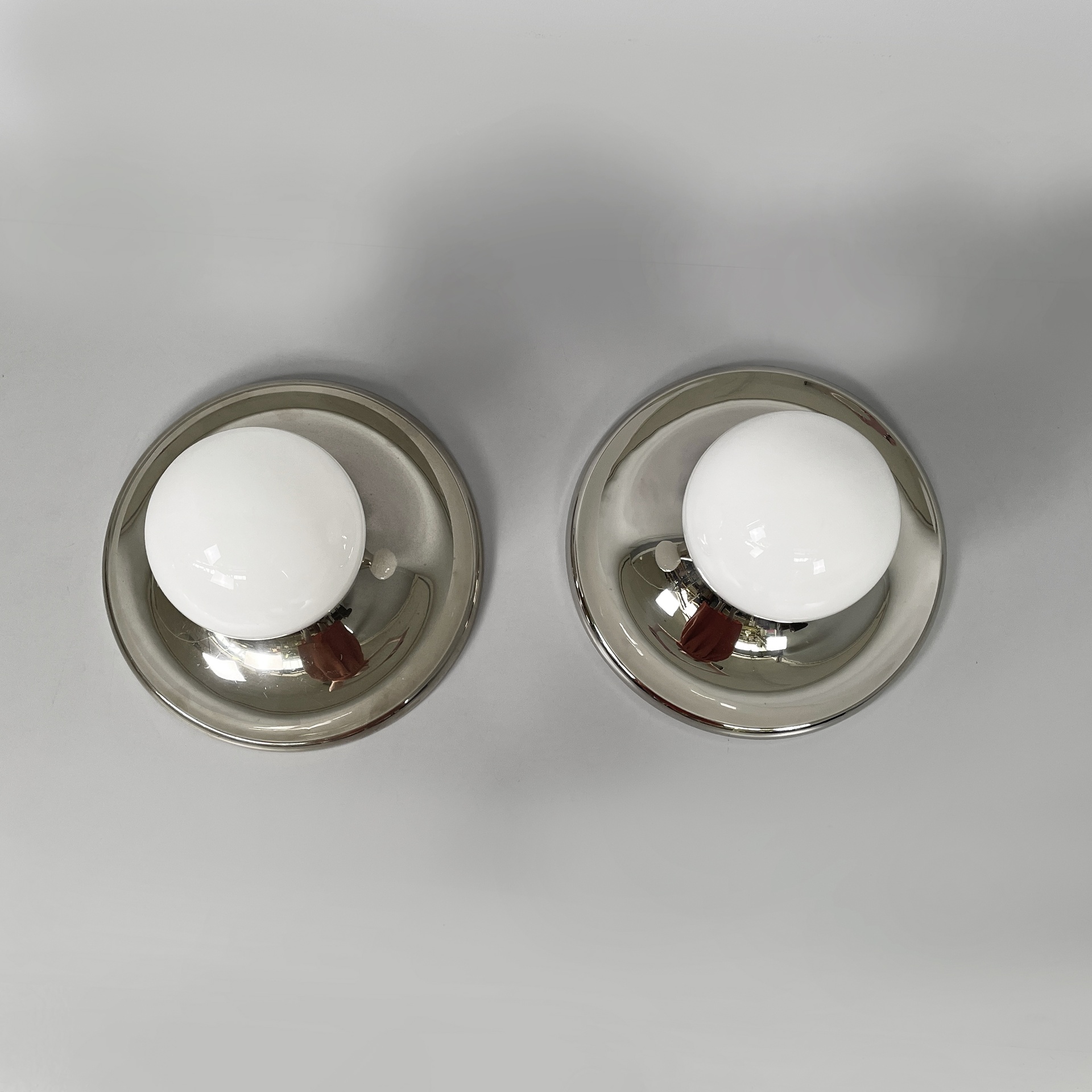 Coppia di applique o o plafoniere modello Light Ball con diffusore sferico in vetro opalino. La struttura a base tonda è in metallo.