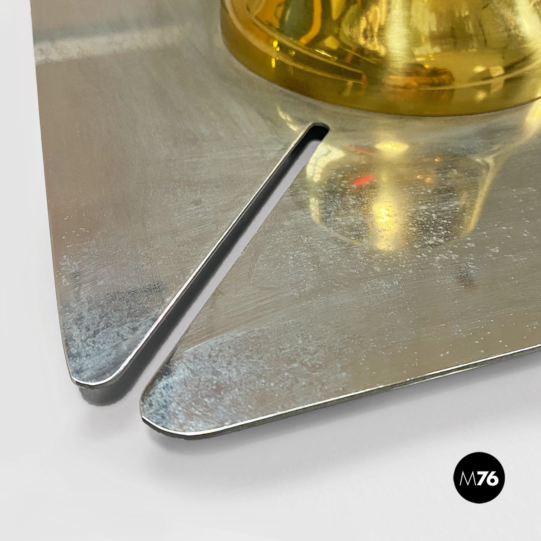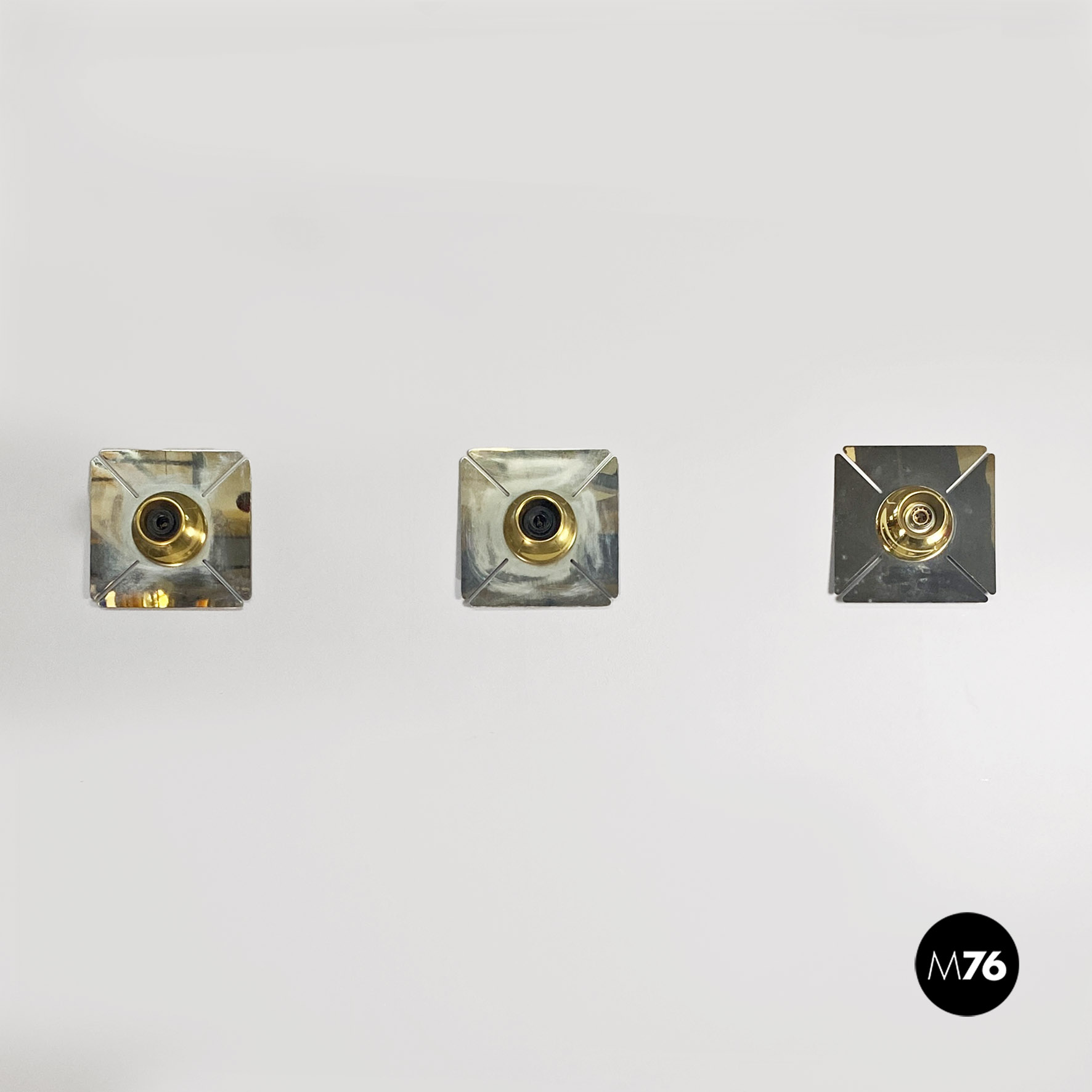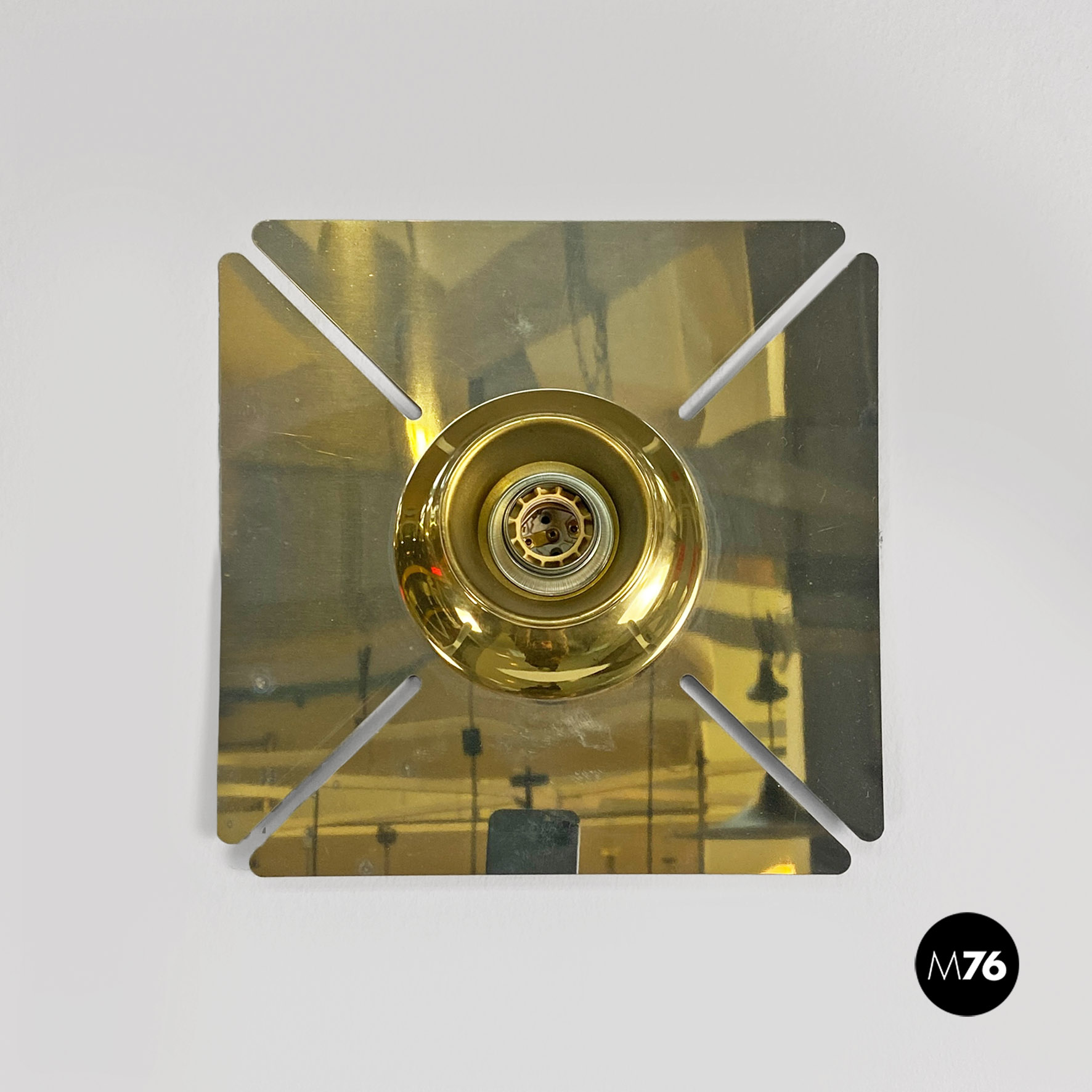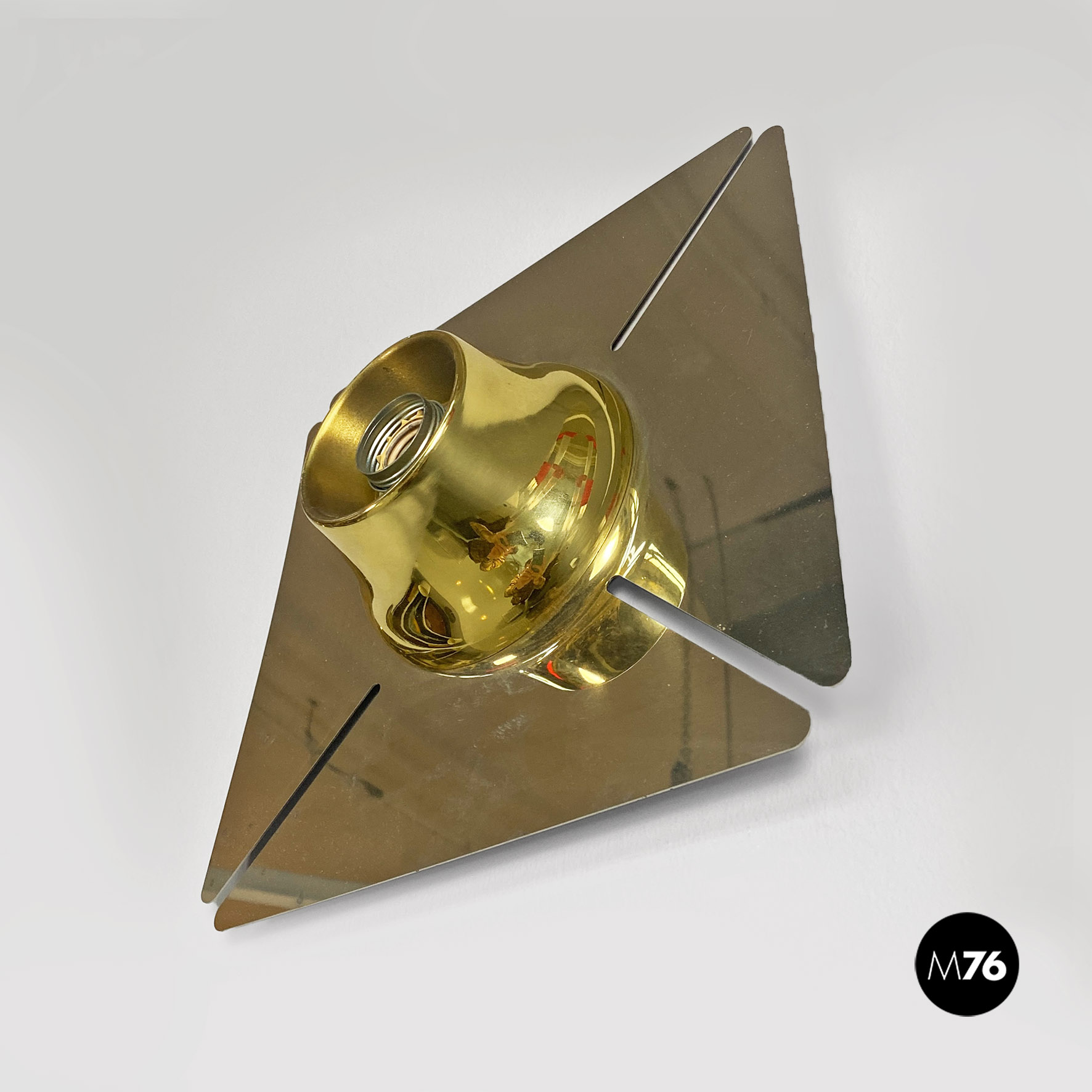 Set di tre applique modello LSP14 Quadrifoglio in acciaio inossidabile e ottone. La lampada presenta al cento il diffusore a base tonda in ottone. Intorno a questo sono presenti quattro lembi flessibili in acciaio, i quali si possono adattare alla curvatura del soffitto o della parete.