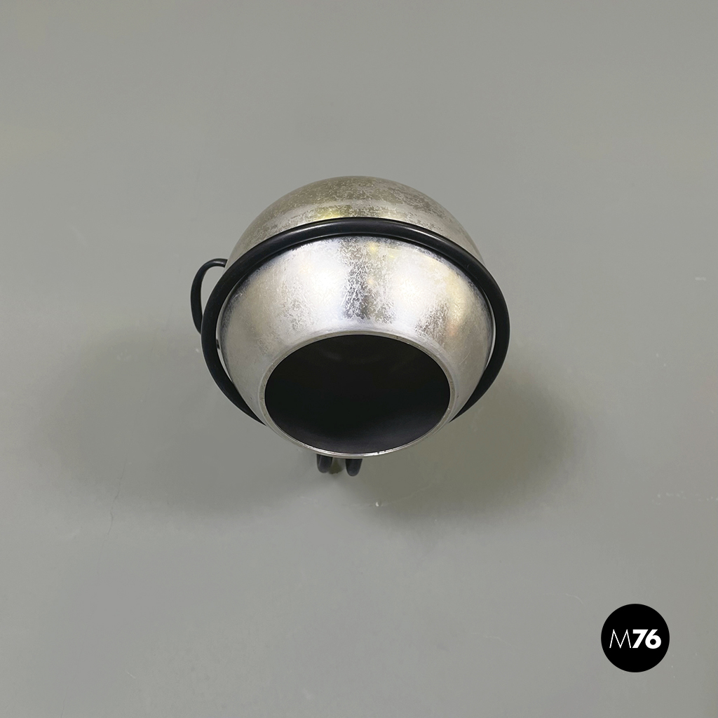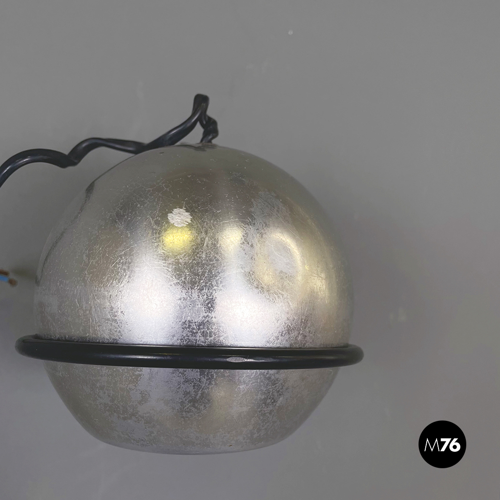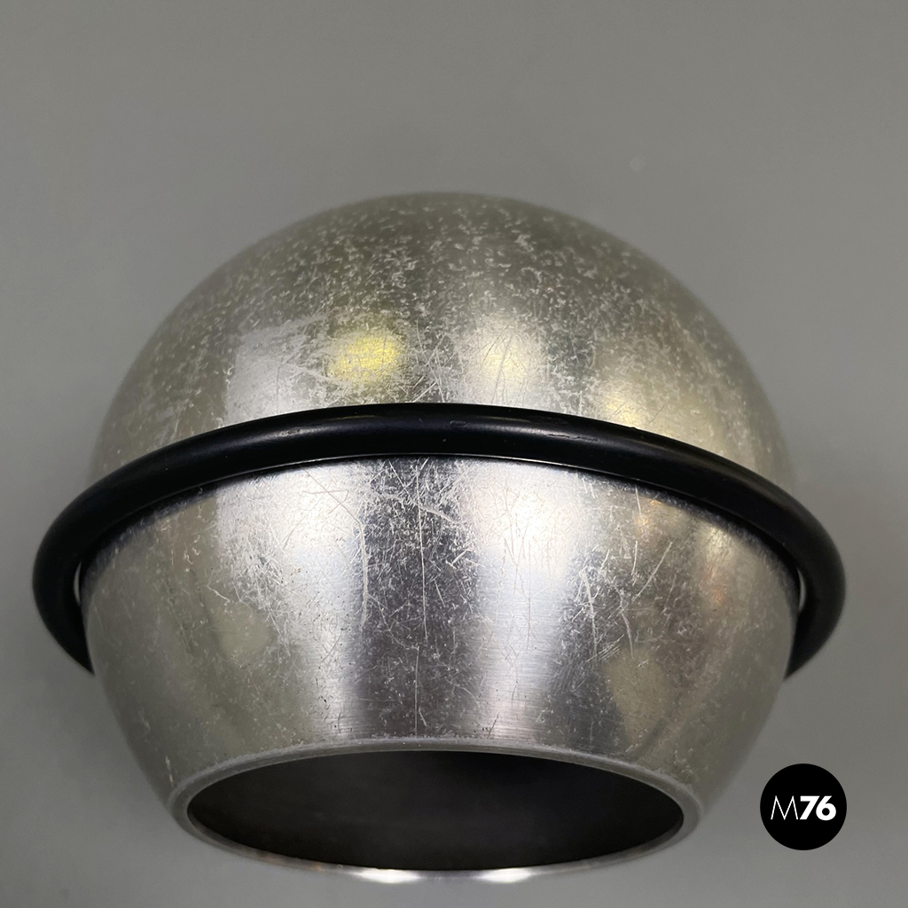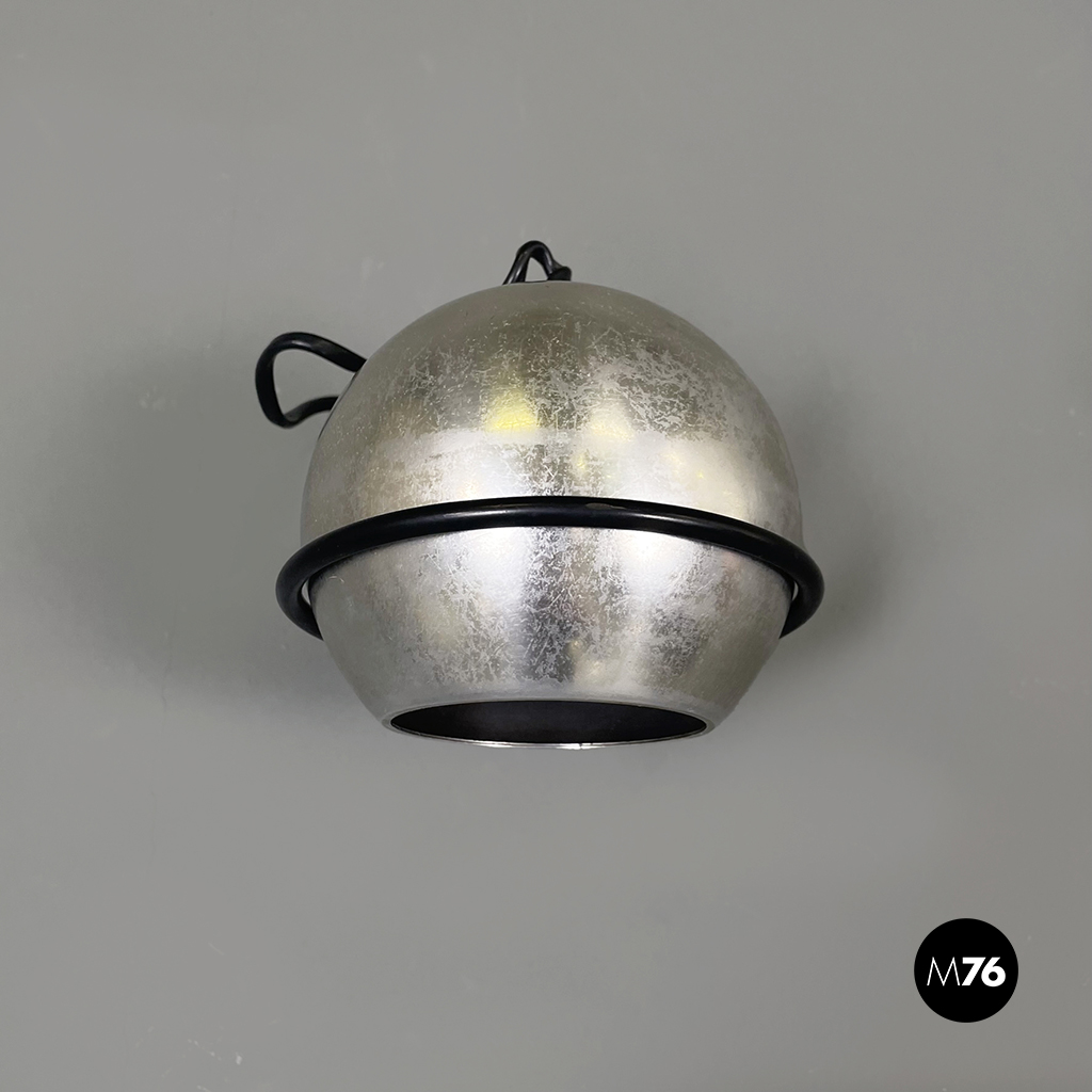 Coppia di applique modello nr. 232 a base tonda in metallo. Il diffusore sferico in acciaio è sostenuto da una struttura in tondino di metallo verniciato nero. L’interruttore è posizionato dietro il diffusore. Posizionabile a piacere.