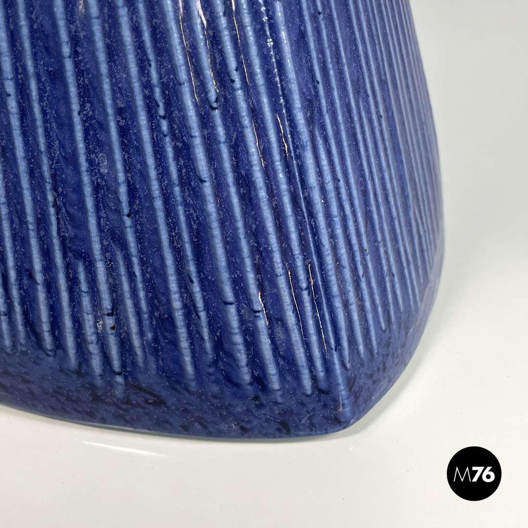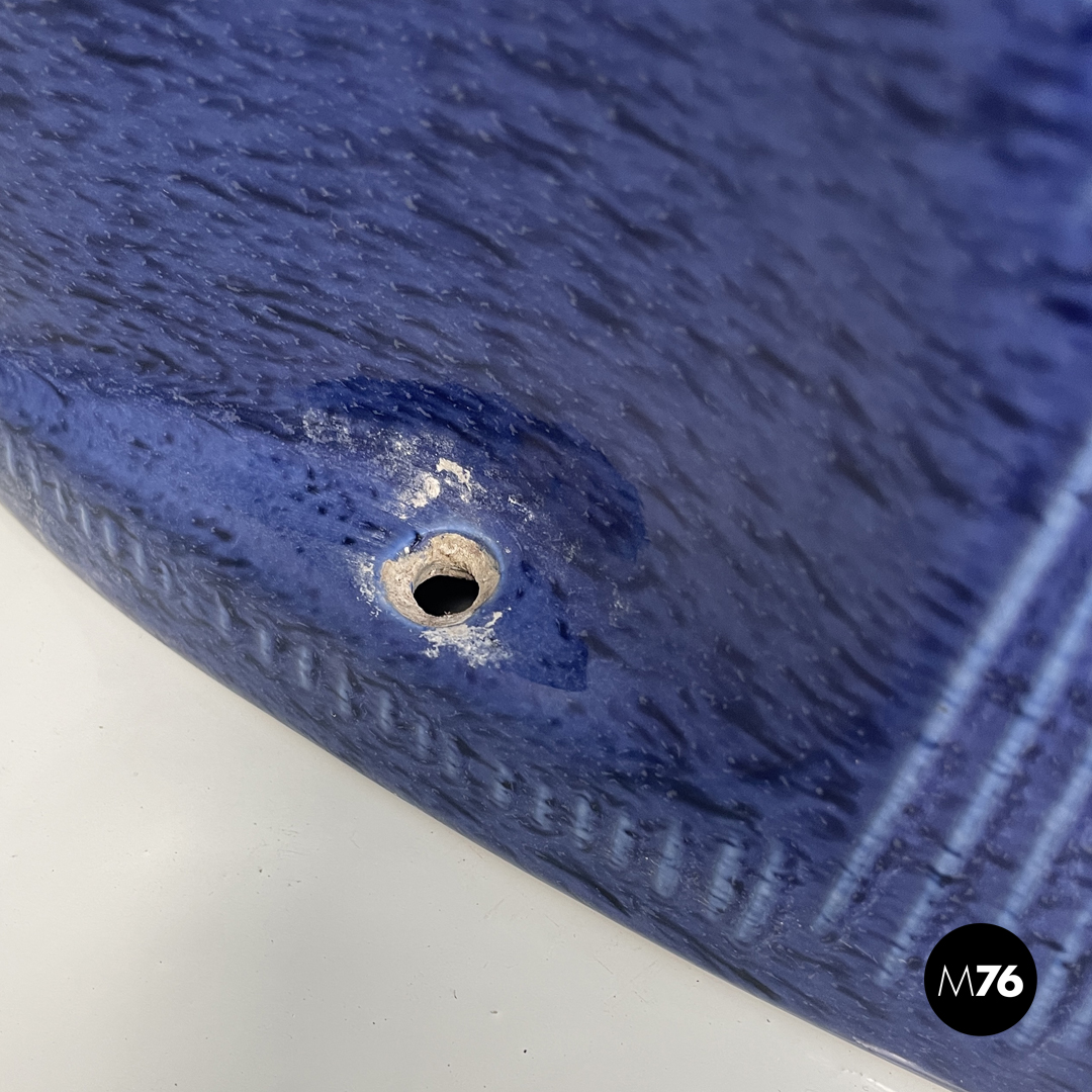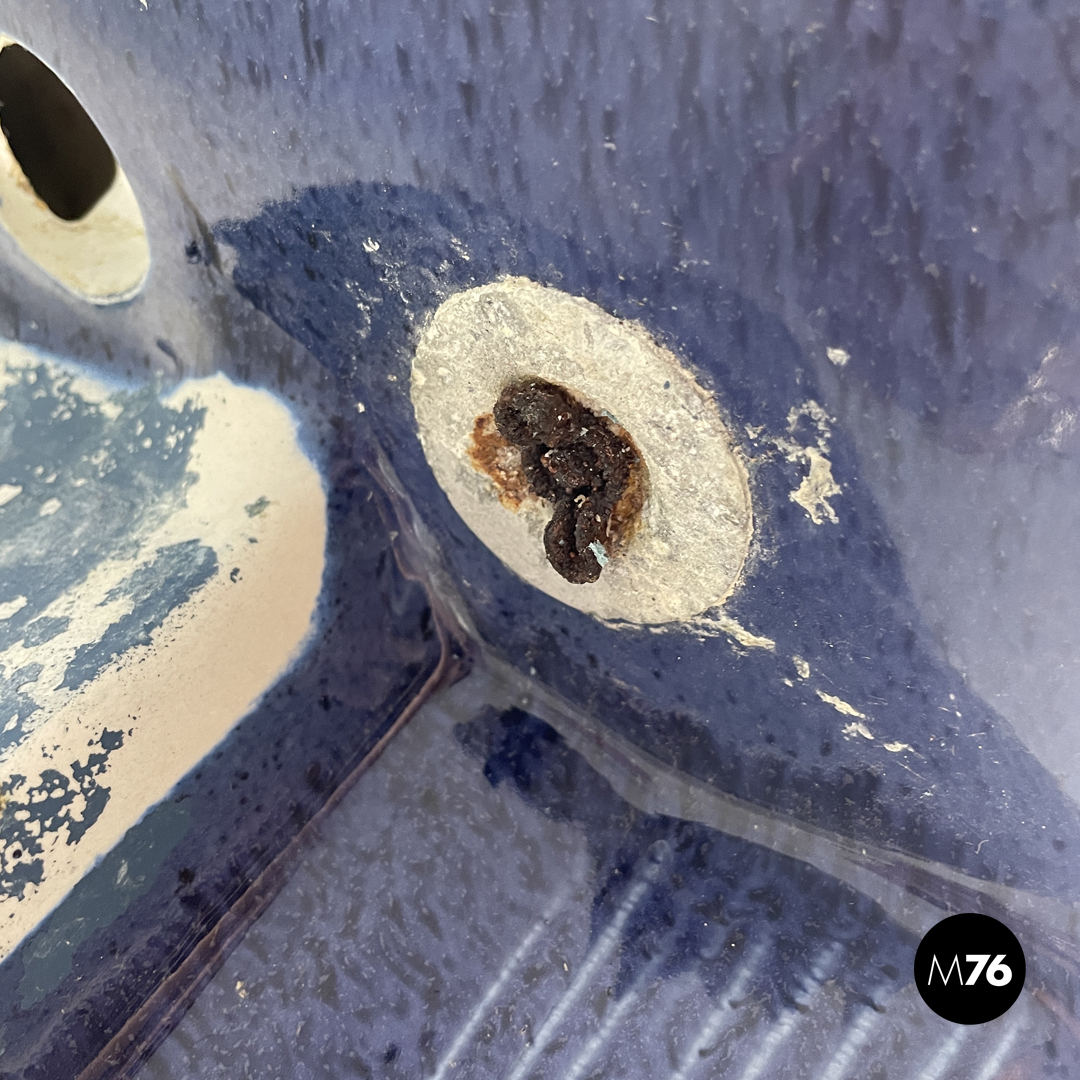 Bidet modello Gardena in ceramica bianca smaltata sui toni del blu con linee a rilievo più chiare. Presenti due placche in metallo.