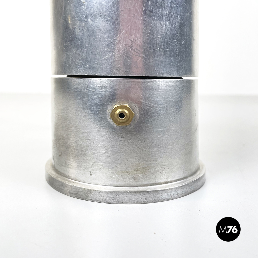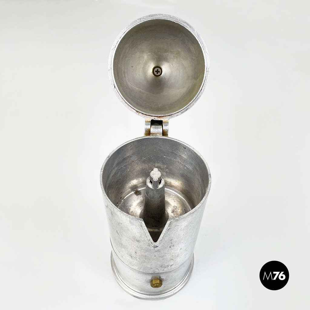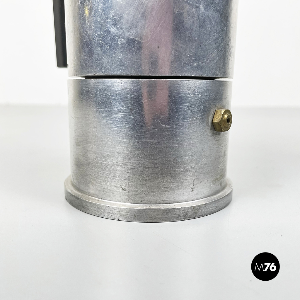 Caffettiera da espresso o moka modello La Cupola a base tonda in fusione di alluminio. Presenta manico e pomello sferico sulla cima, in plastica nera. Sul fronte presenta il beccuccio triangolare. Alla base presenta un disco in alluminio, Il quale ha la funzione di para fiamma oltre che distribuire in maniera uniforme il calore alla base durante la fase della preparazione.