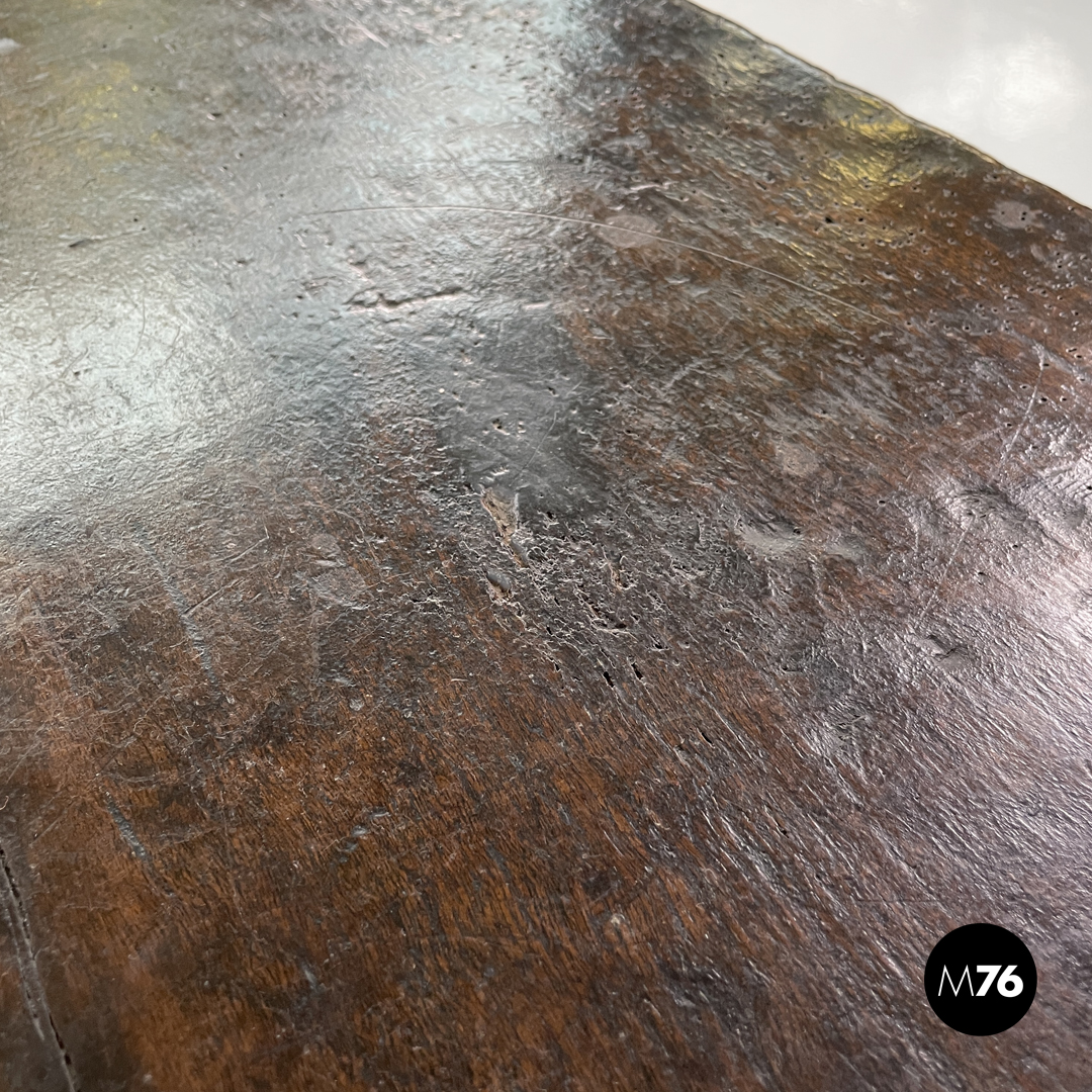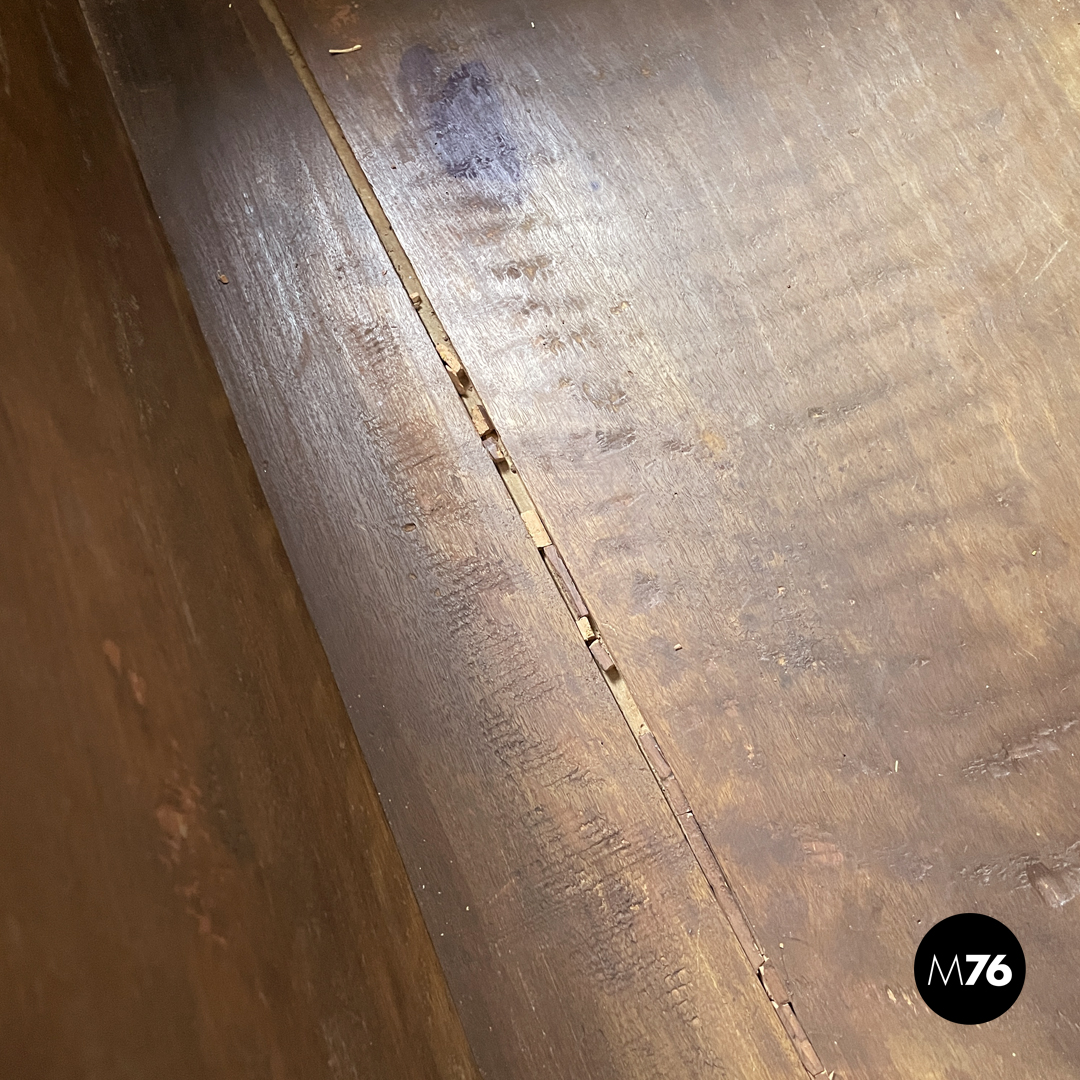 Buone condizioni, con segni dell’uso e del tempo, ossidazioni e mancanze di materiali. Alcune parti dell’intarsio sono rialzate.