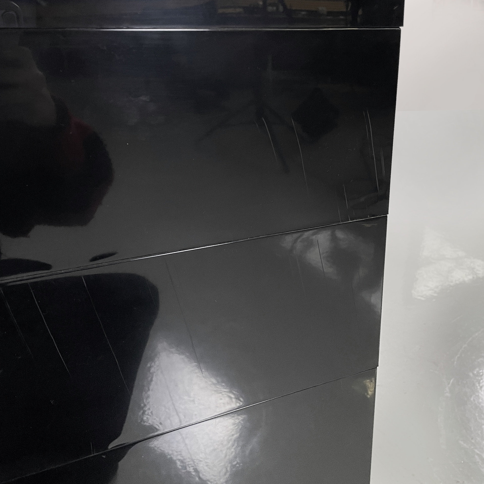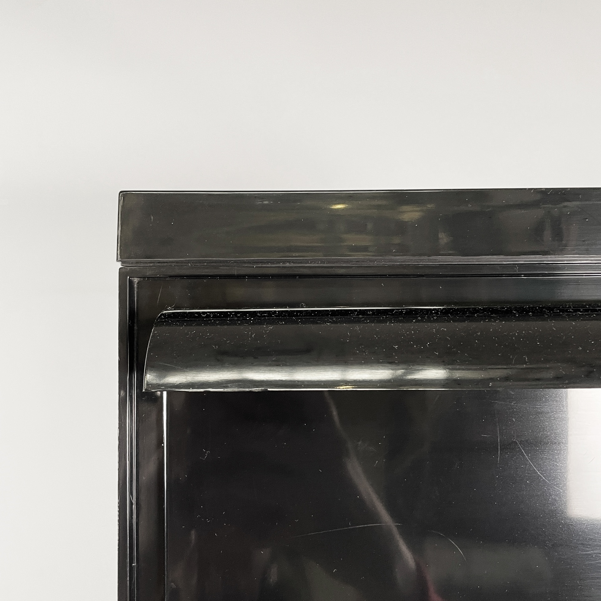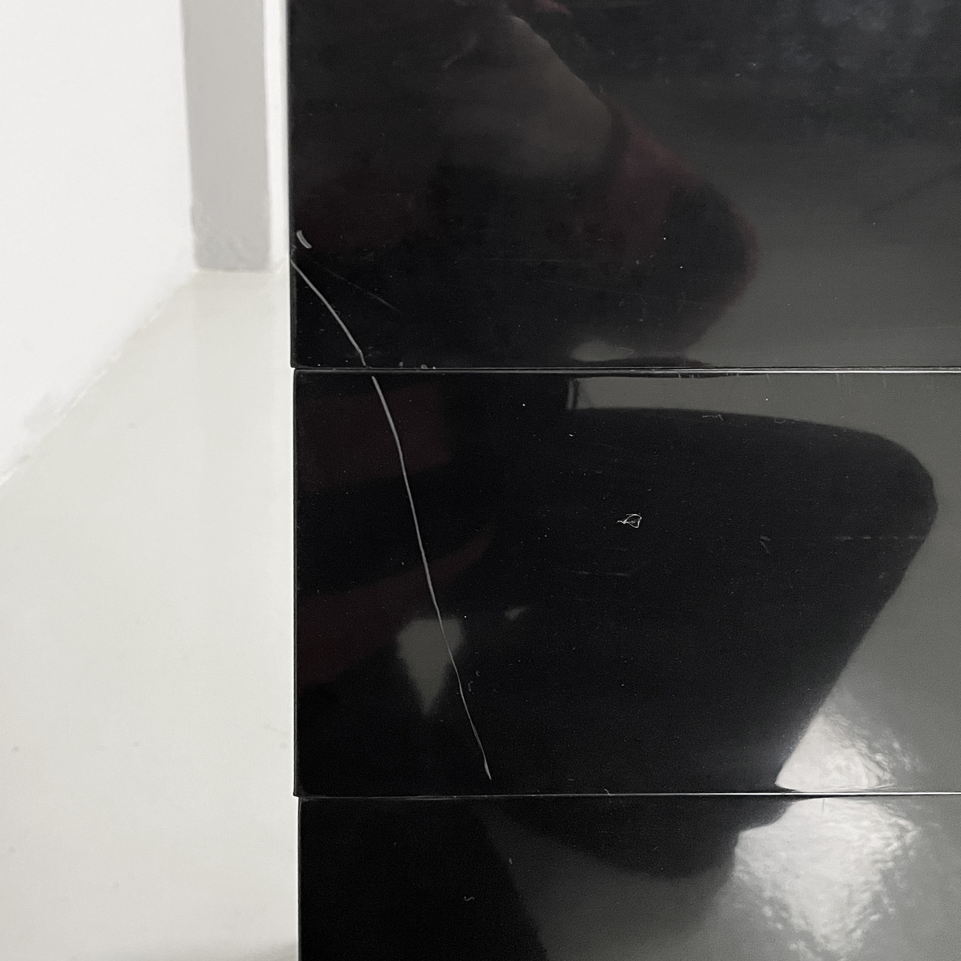 Cassettiera modulare modello 4602 a base quadrata interamente in plastica nera. I tredici cassetti presentano una maniglia con profilo a triangolo stondato, lunga quanto il cassetto.