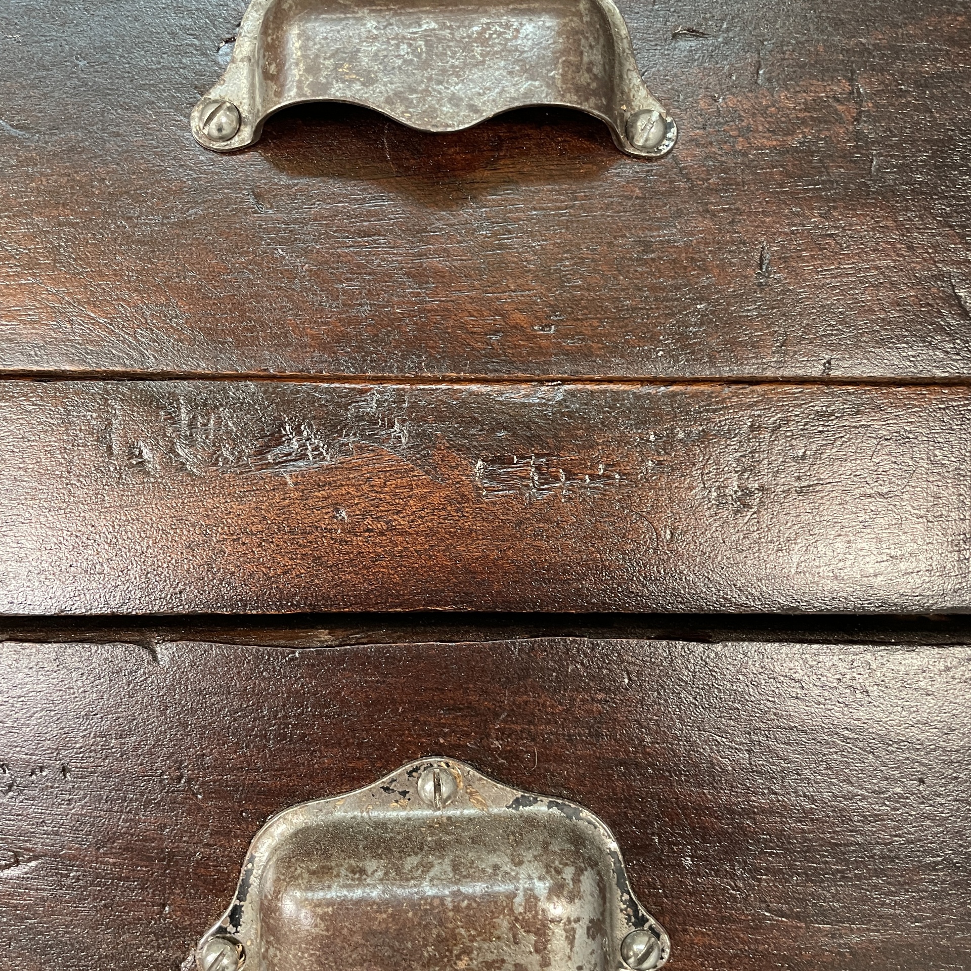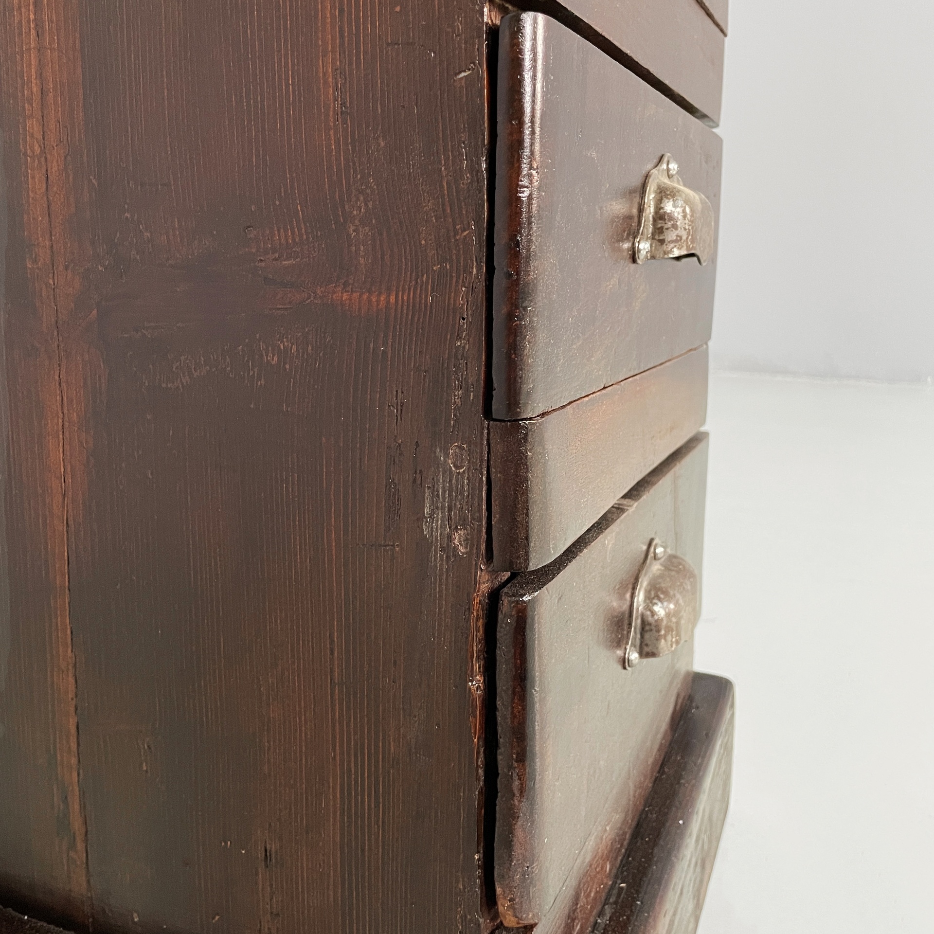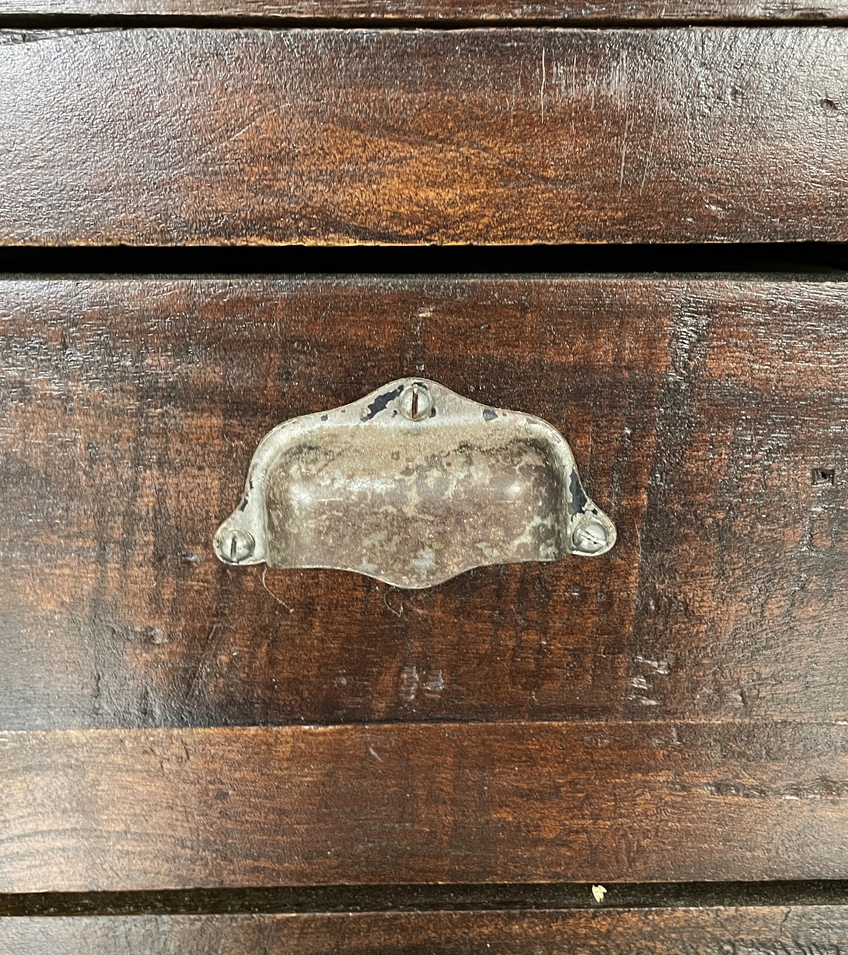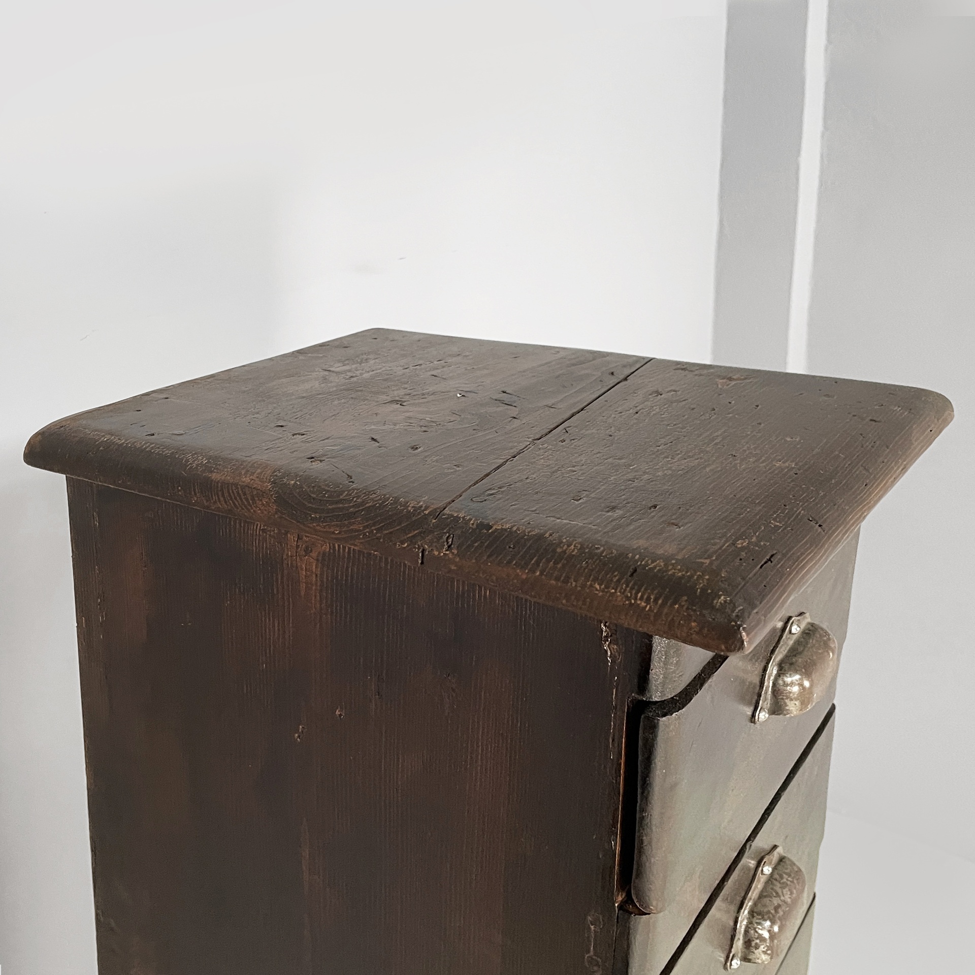 Cassettiera a base squadrata in legno con maniglie metallo. Sul fronte presenta undici cassetti rettangolari. Utilizzabile come mobile archivio.