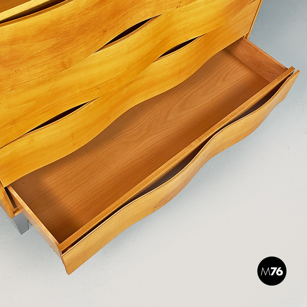 Cassettiera in legno con cassetti curvi, 1980 ca.