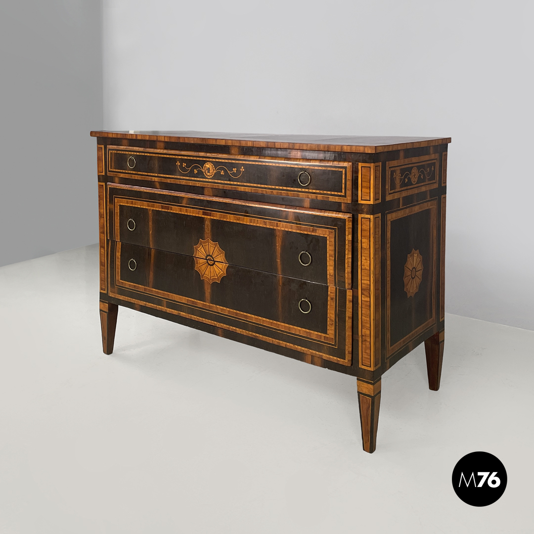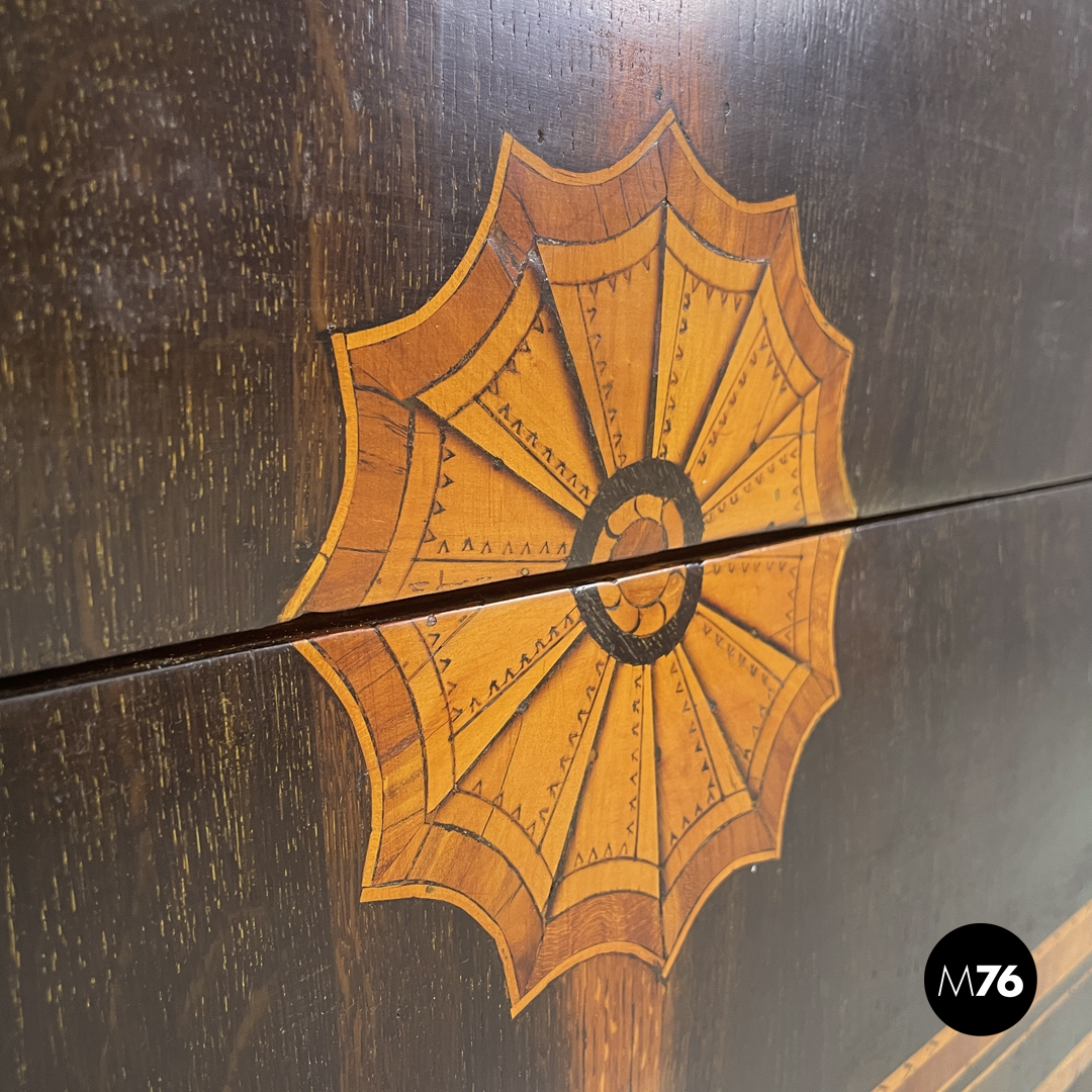 Cassettiera in legno con intarsi, inizio 1800 ca.