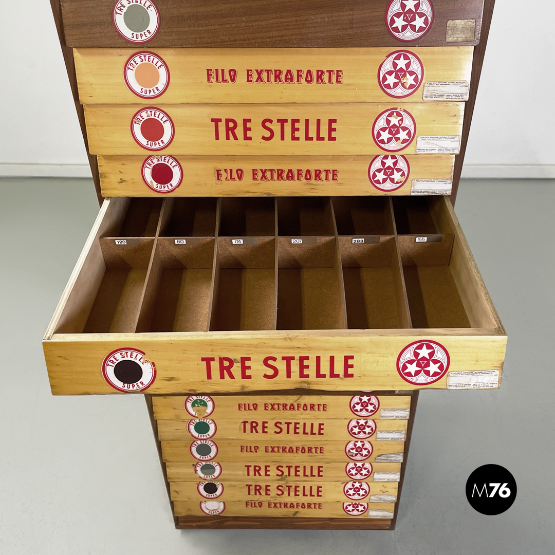 Prodotta da Cucirini Tre Stelle nel 1960 ca. Sui cassetti e sui lati sono presenti i suoi loghi e adesivi pubblicitari originali.