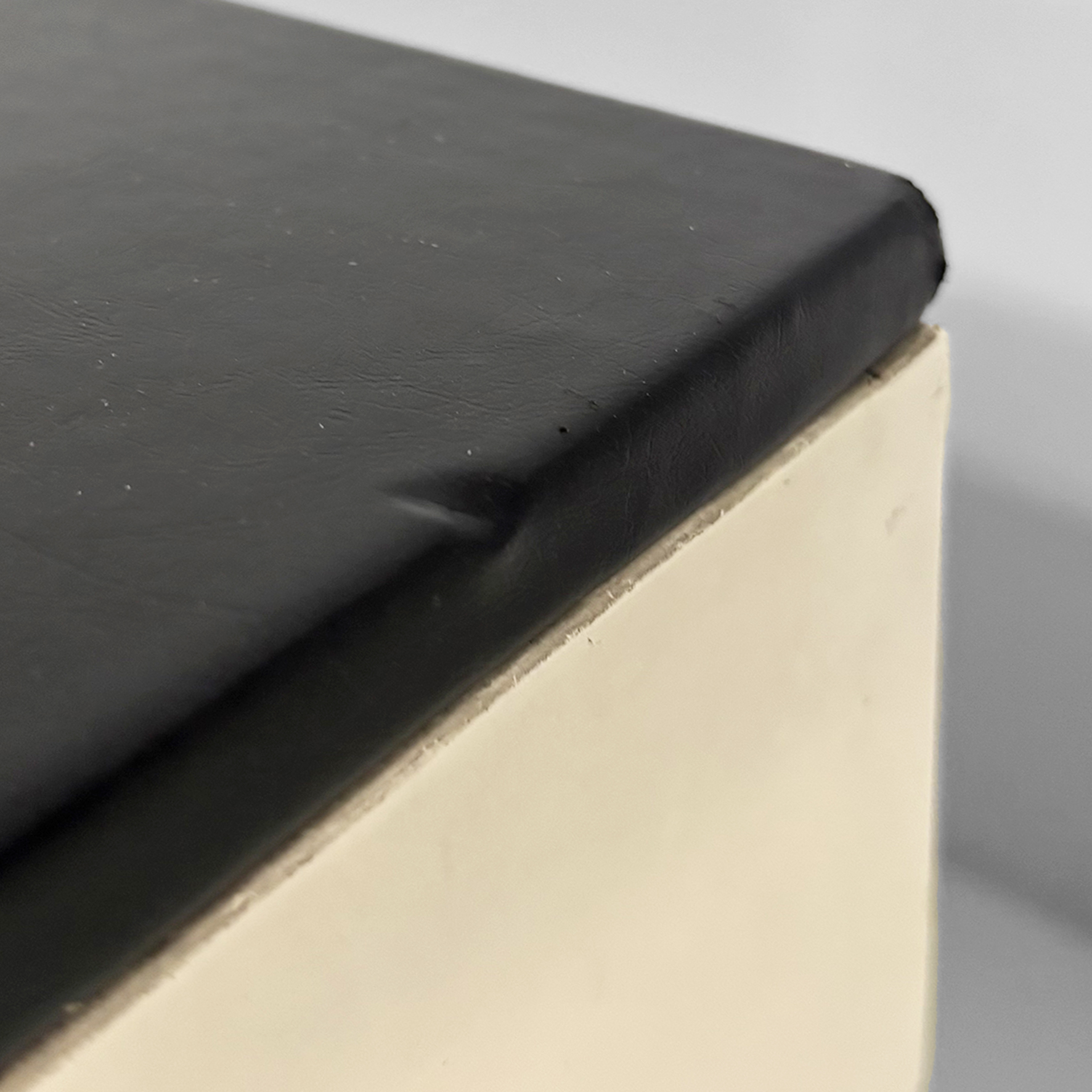 Condizioni discrete. Il legno presenta graffi e piccole mancanze di colore. Leggeri segni sulla pelle.