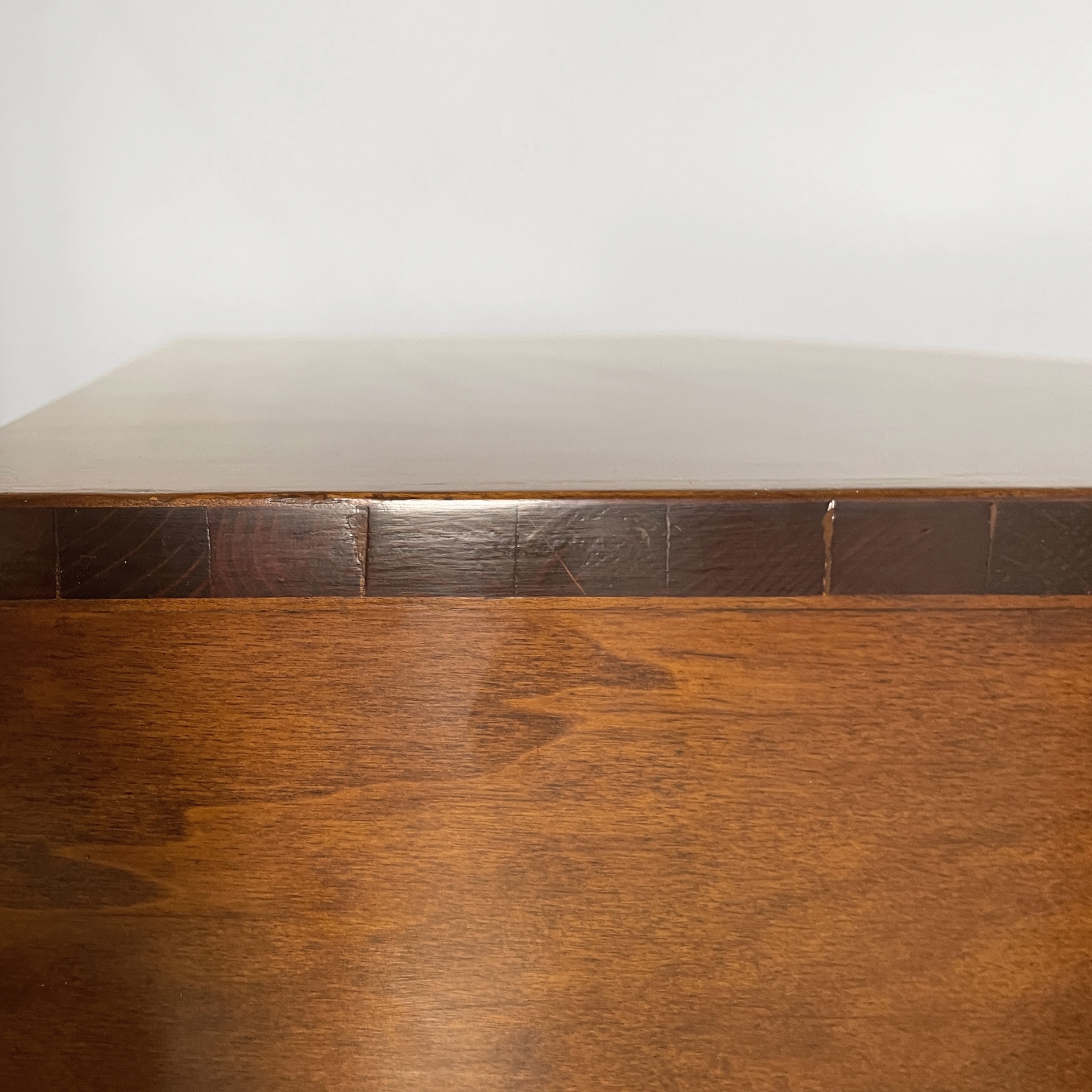Buone condizioni. Leggeri segni sparsi. Il metallo delle maniglie presenta piccole mancanze di colore. Legno restaurato.