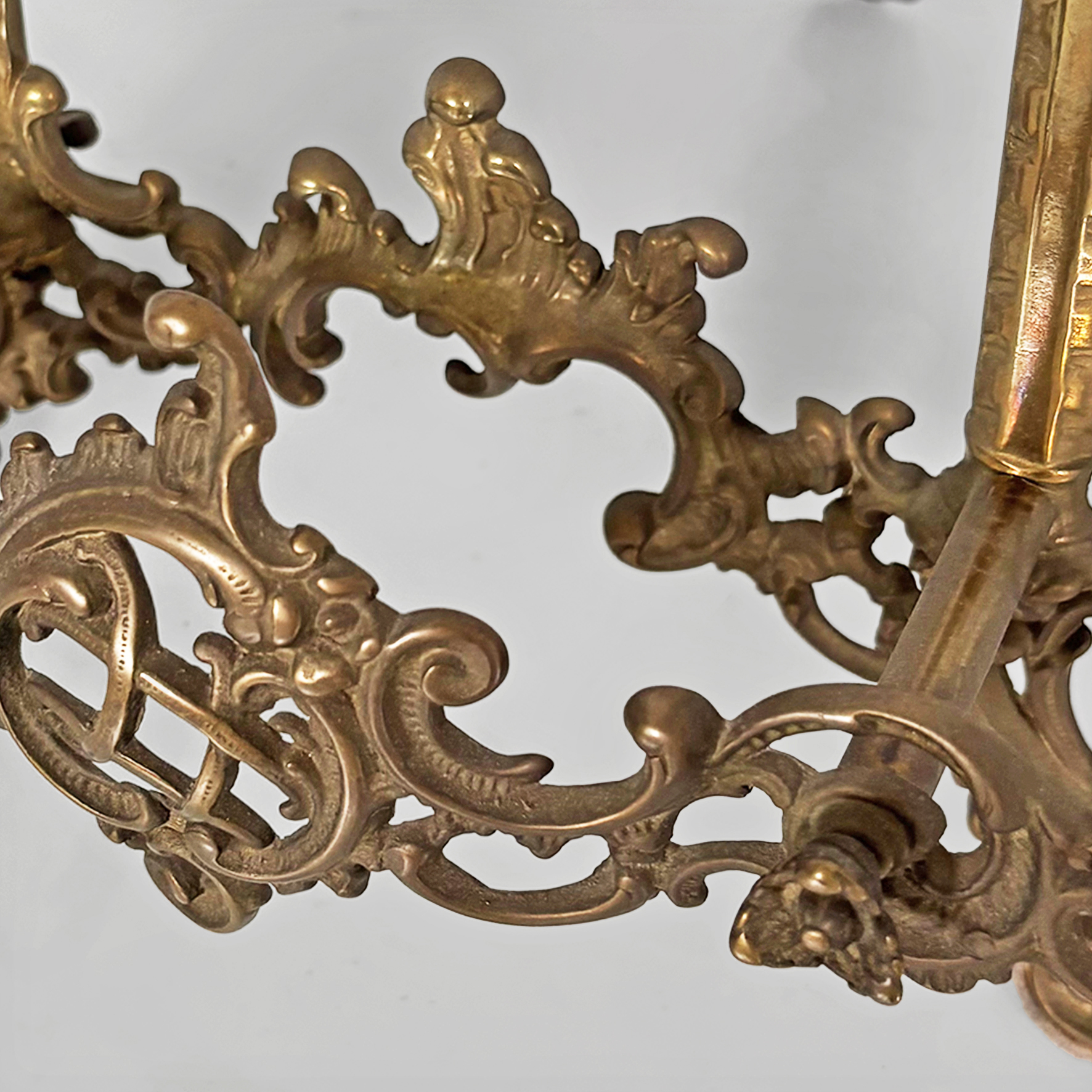 Cavalletto o leggio da tavolo interamente in bronzo, finemente lavorato con decorazioni in stil Barocco. Utilizzabile come espositore di quadri da tavolo.