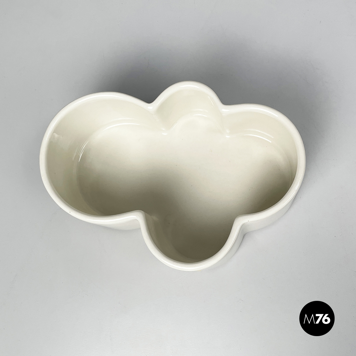 Ciotola di forma tondeggiante, la quale ricorda una nuvola, in ceramica bianca. Utilizzabile come svuotatasche o centrotavola.