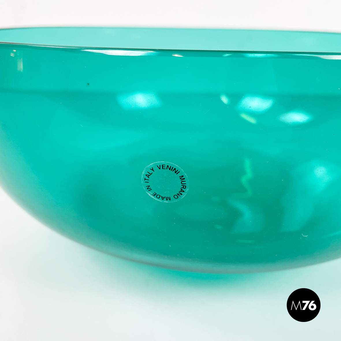 Ciotola decorativa a base tonda in vetro di Murano verde-acqua. Perfetta come centrotavola o svuotatasche.