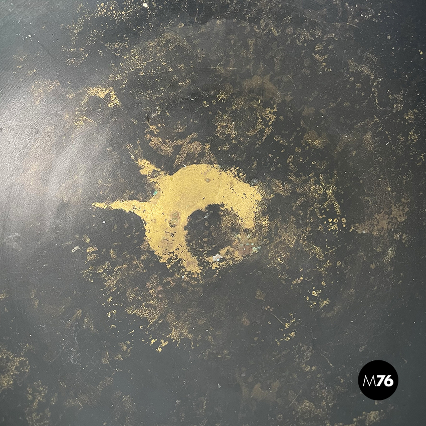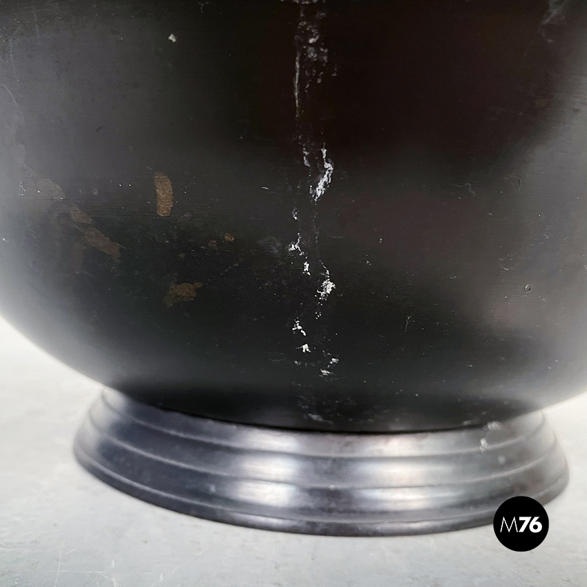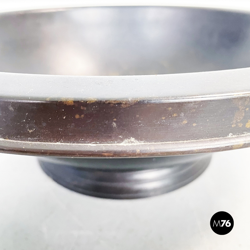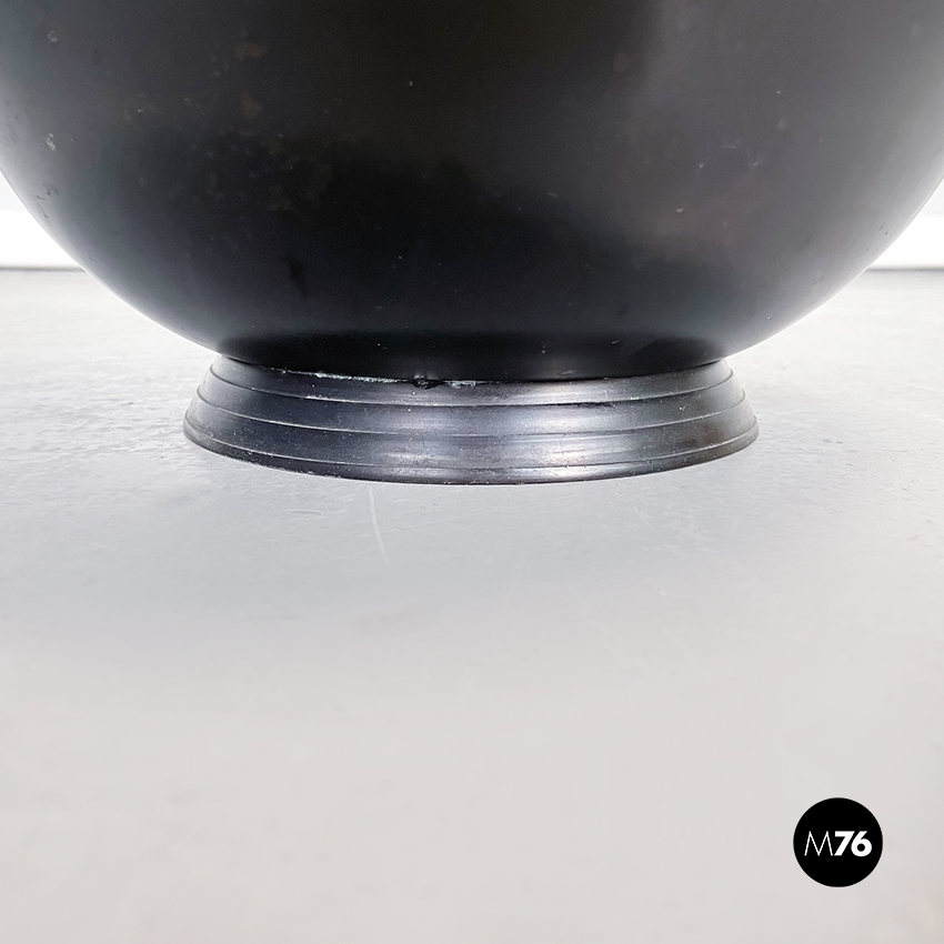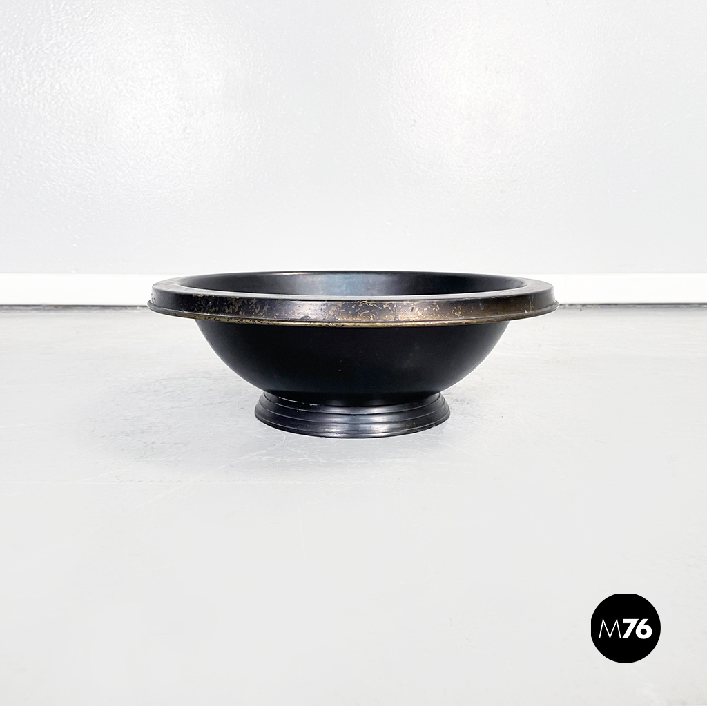 Ciotola tonda in metallo verniciato nero. La parte centrale composta da una semisfera con profilo sporgente, poggiata sulla base tonda. Utilizzabile come centrotavola.