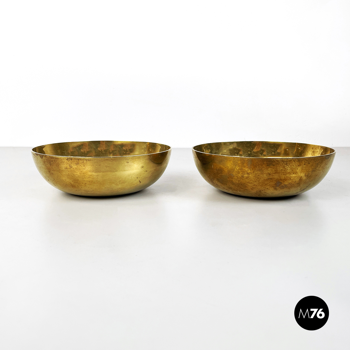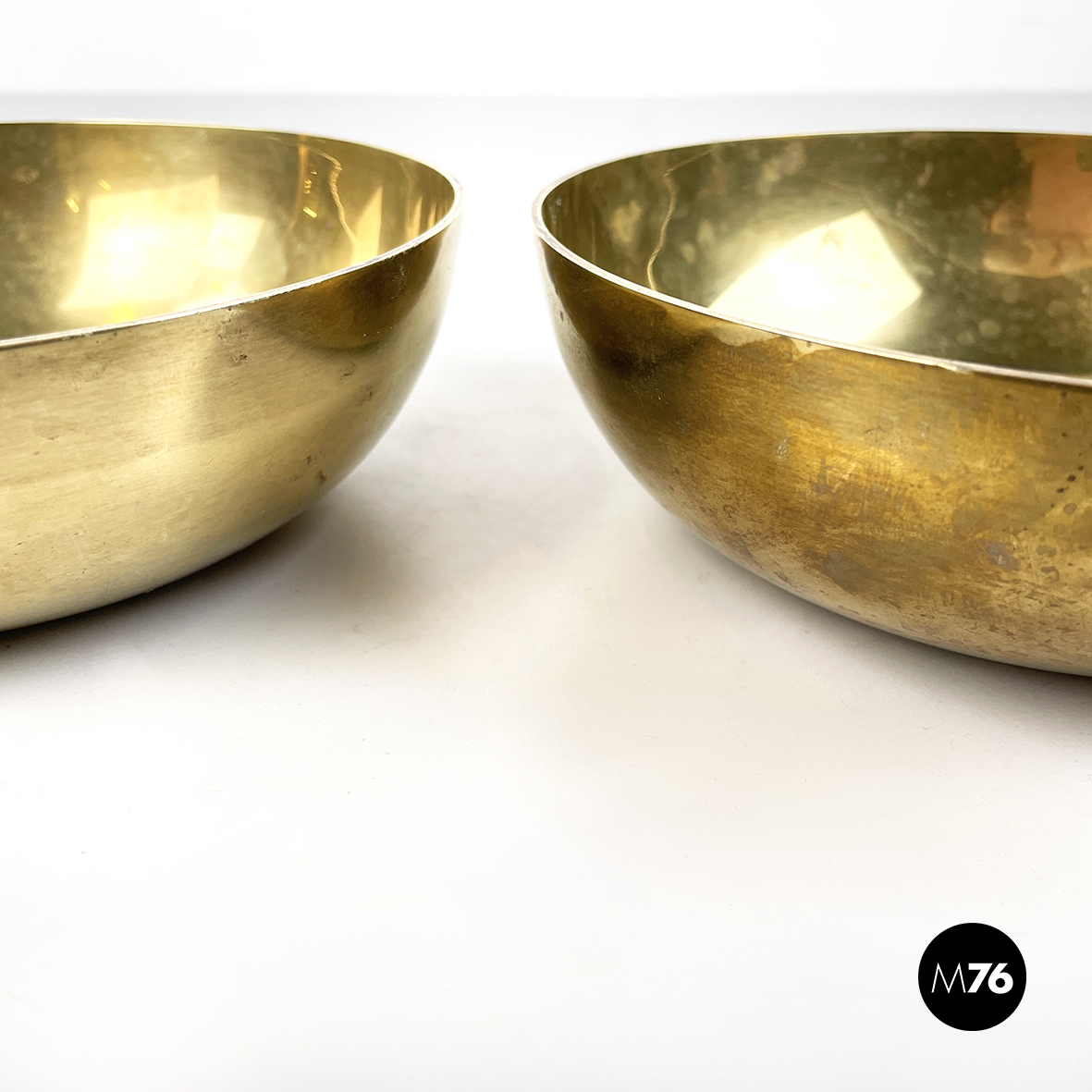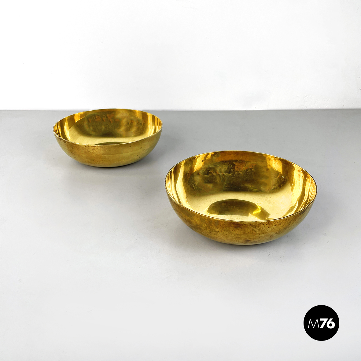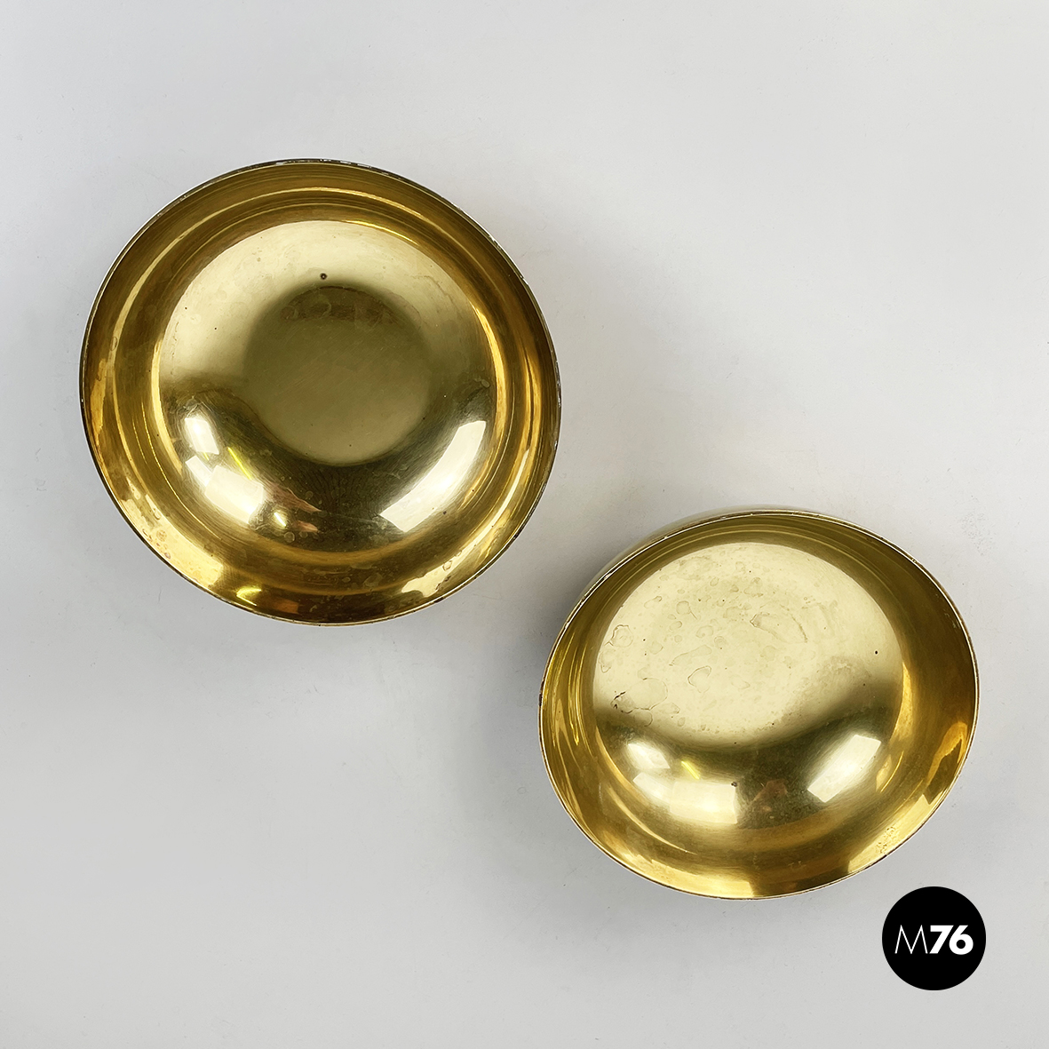 Coppia di ciotole a base tonda in ottone. Le coppette, che hanno uguali dimensioni, possono essere usate sia come servizio da tavola per aperitivi sia come svuota tasche.