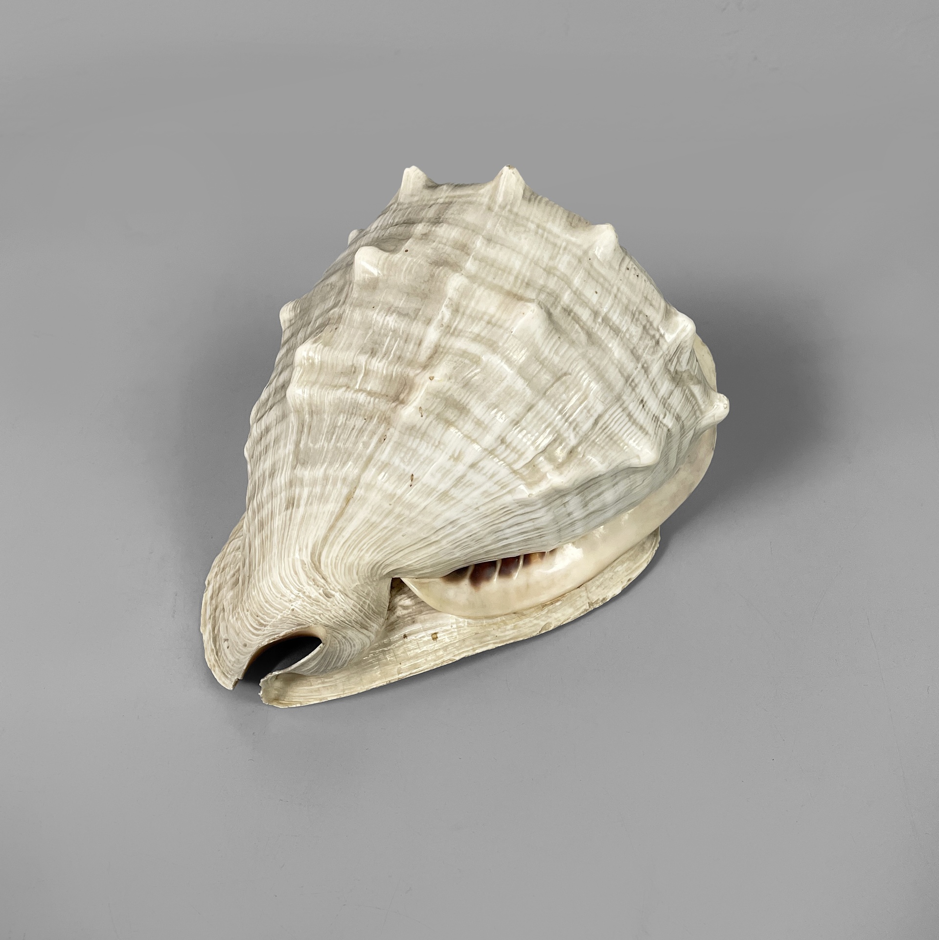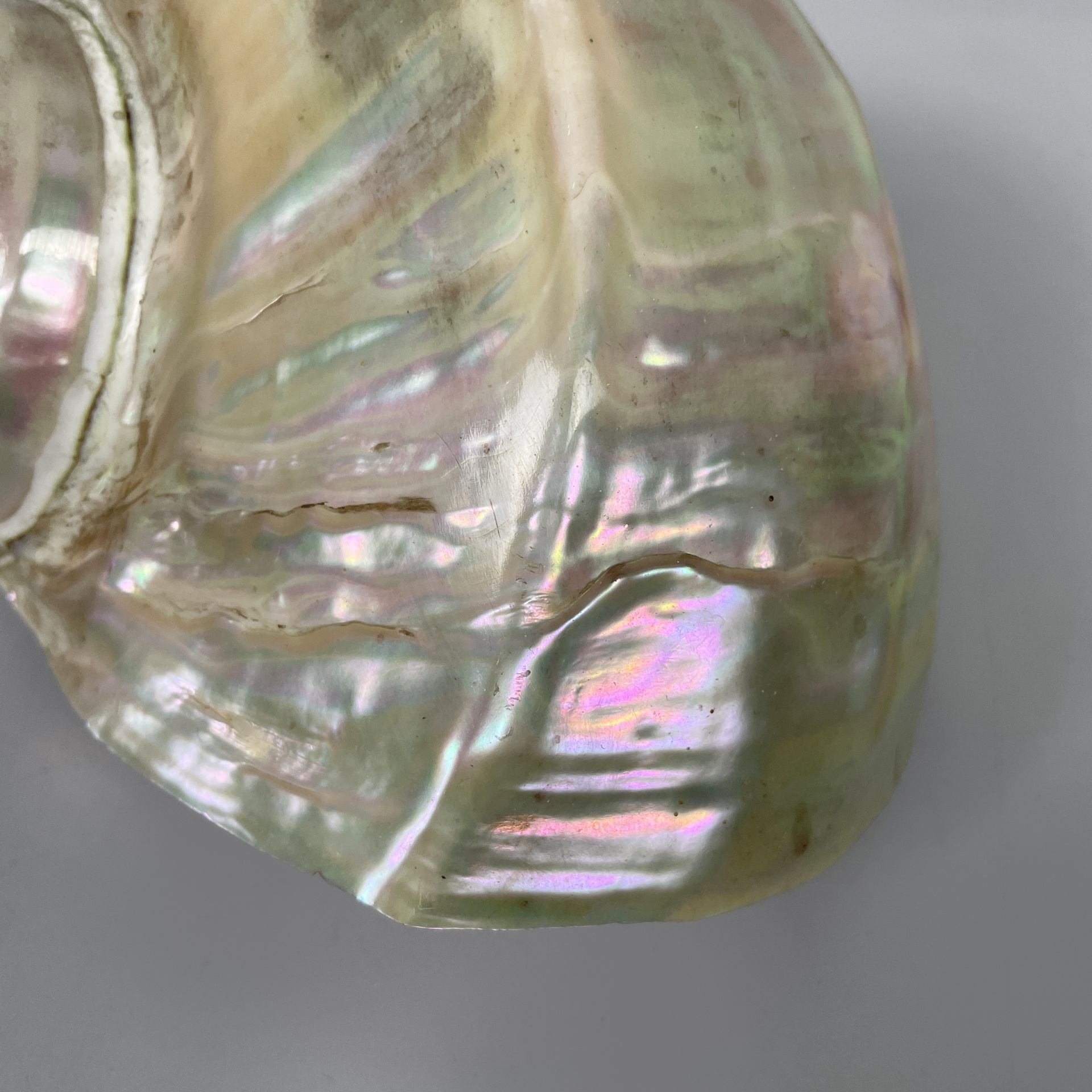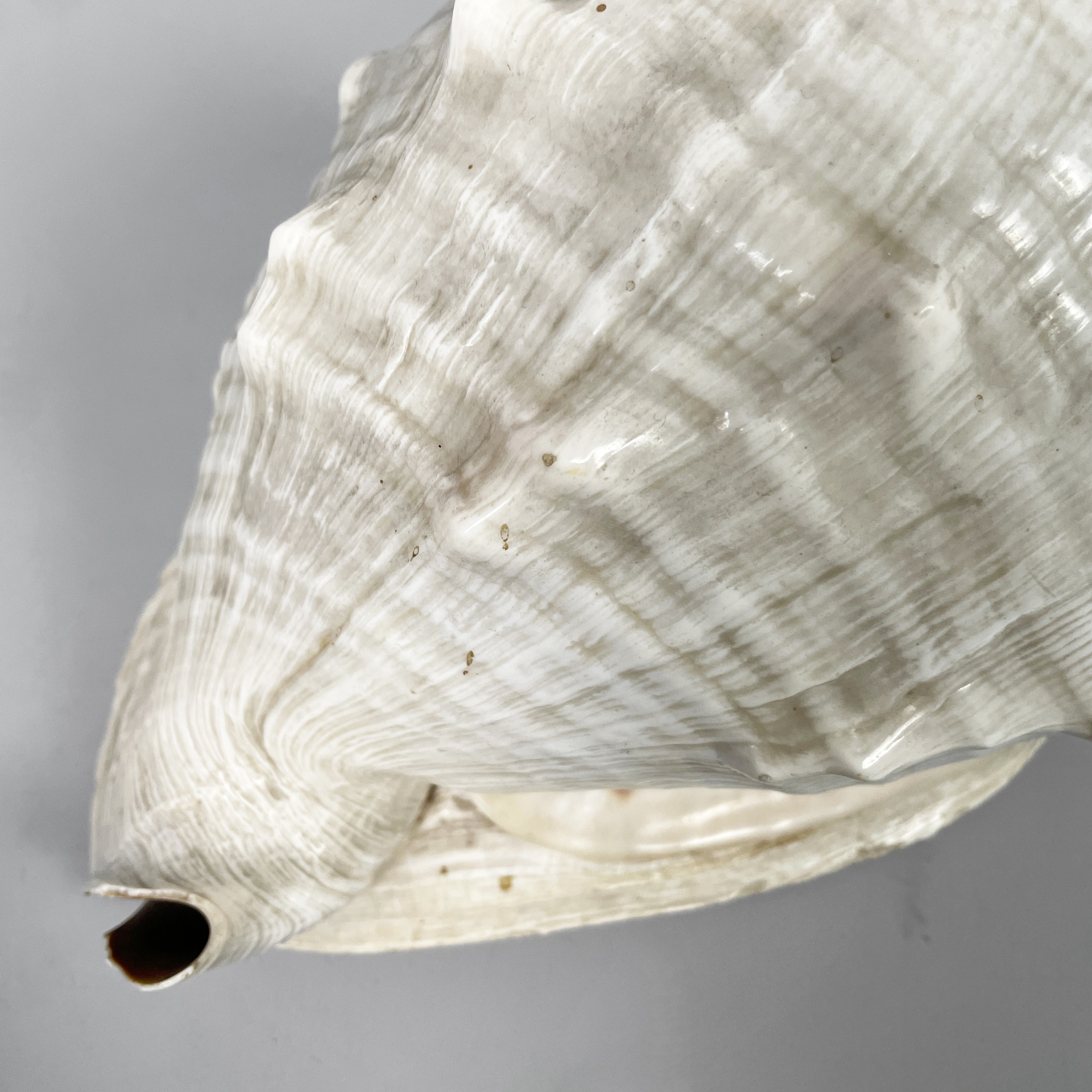 Set di quattro conchiglie ornamentali di diverse dimensioni. Tre conchiglie sono sui toni del bianco, una presenta dei colori cangianti sui toni del verde e del blu.