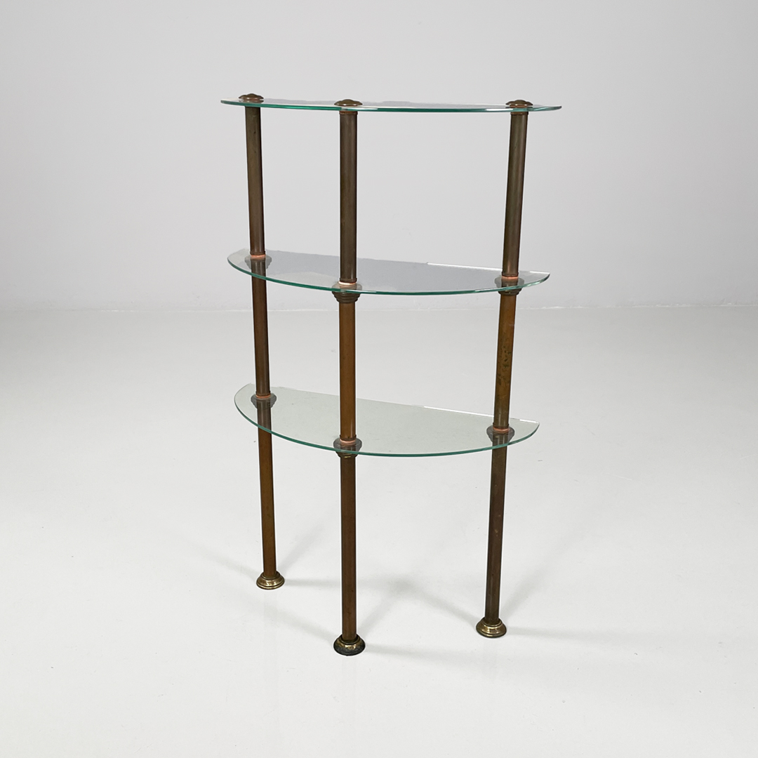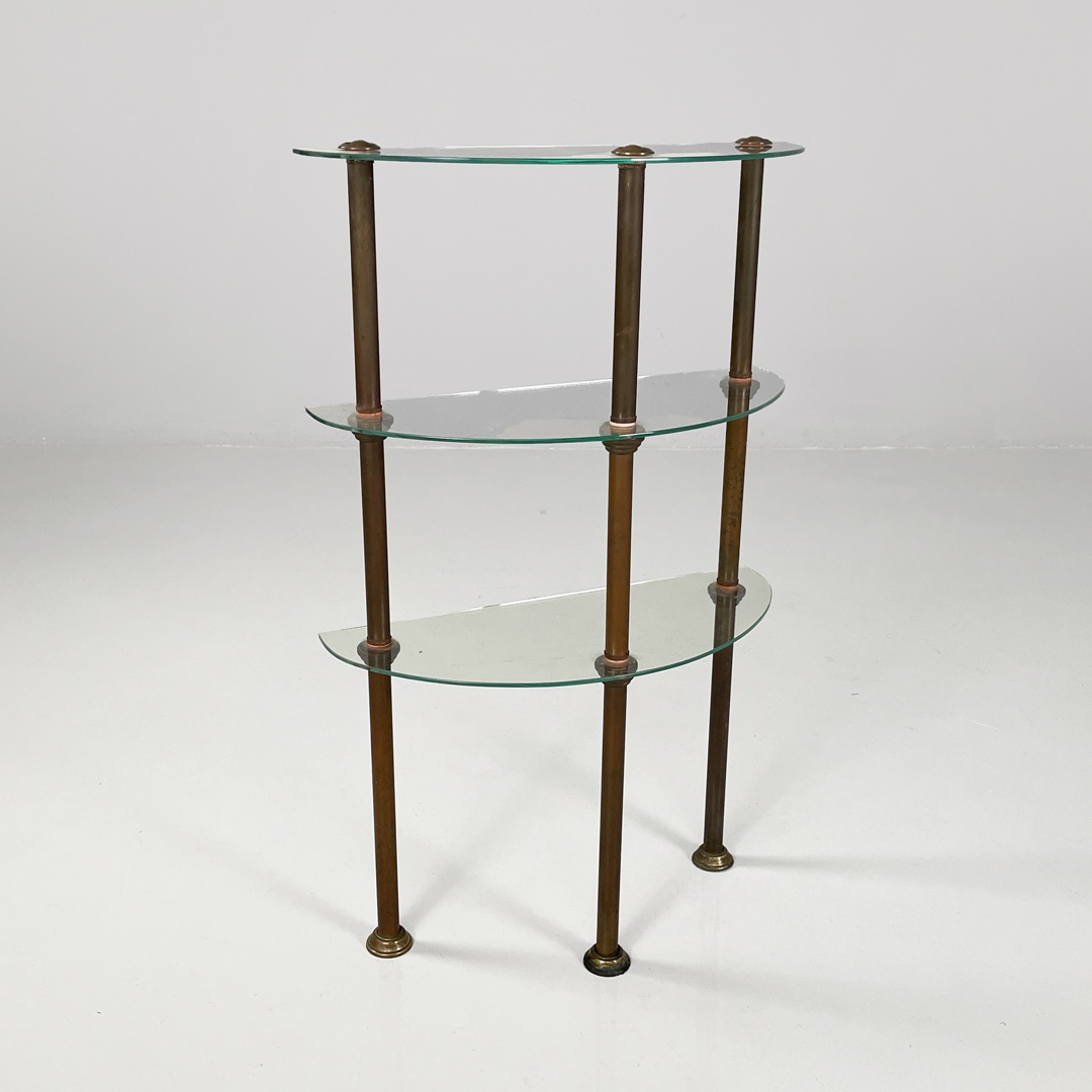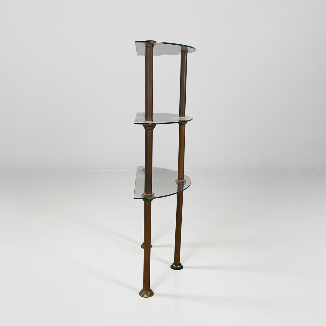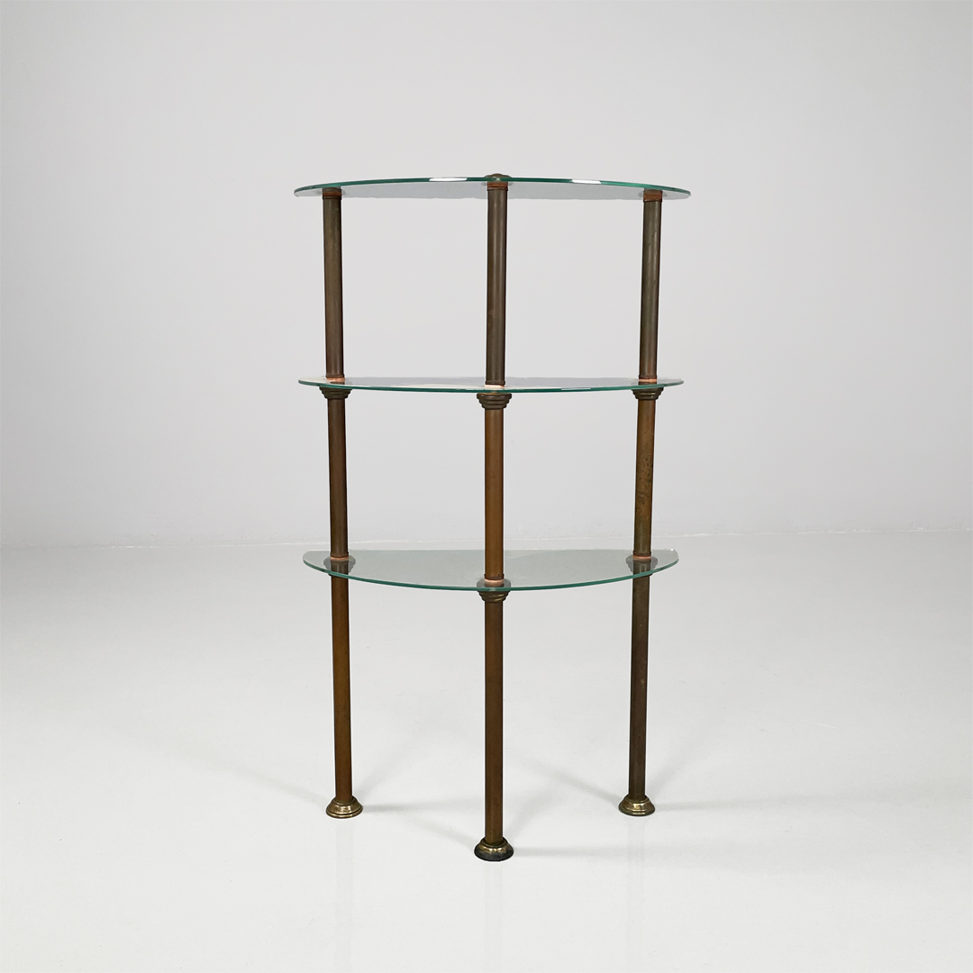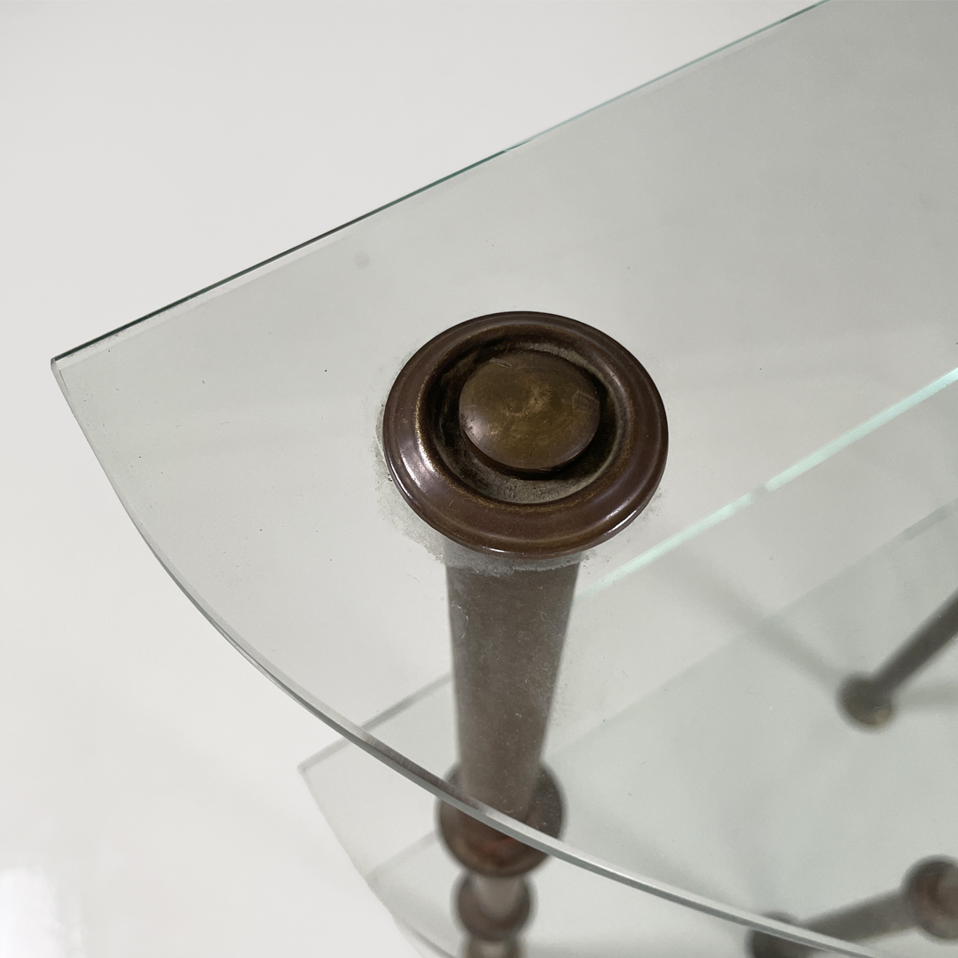 Consolle a tre piani in metallo e vetro, 1920 ca.