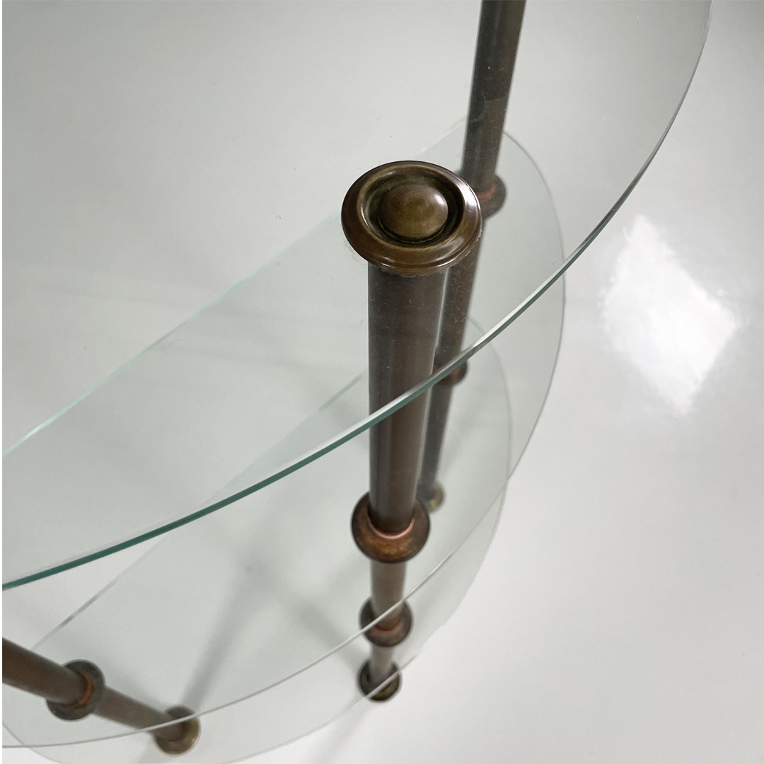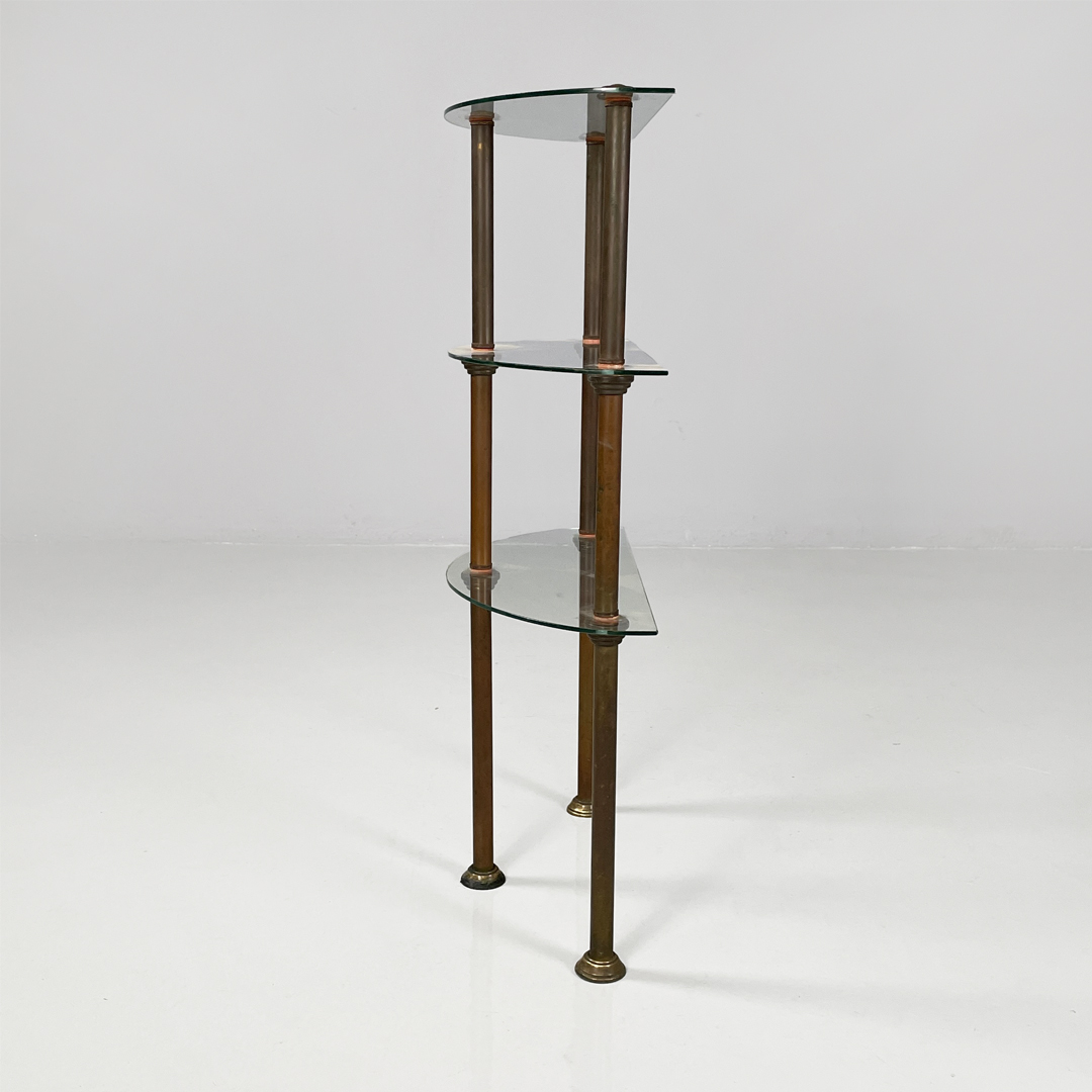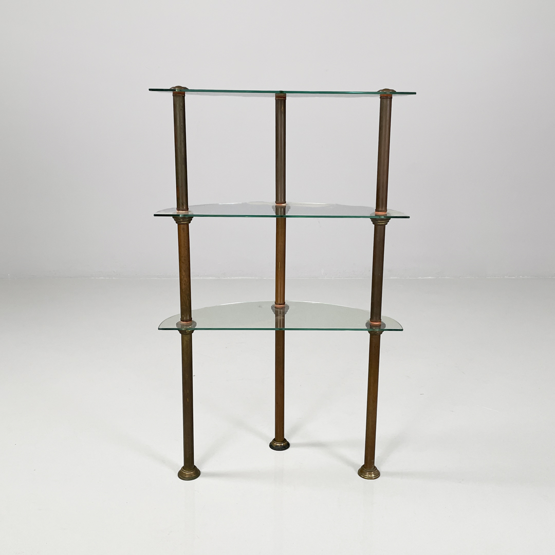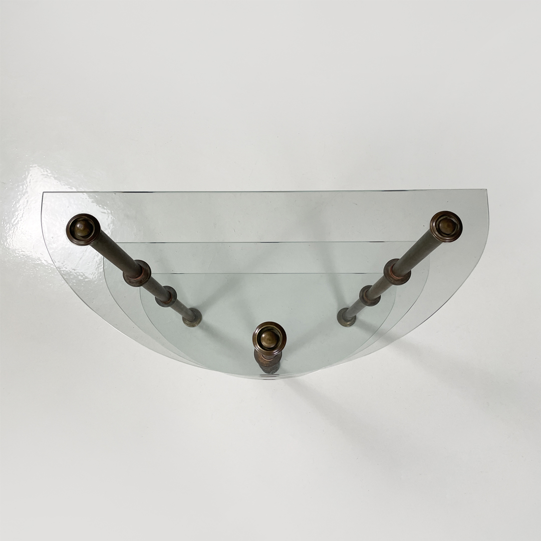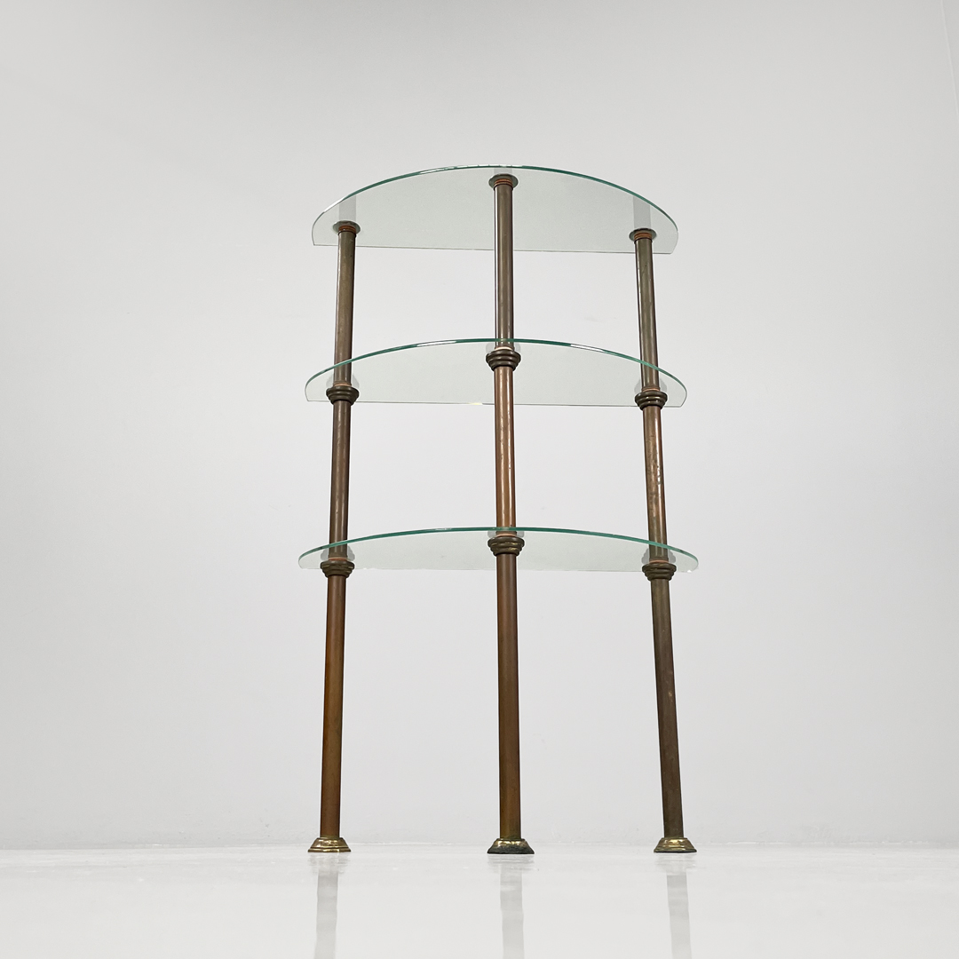 Consolle a tre piani in metallo e vetro, 1920 ca.