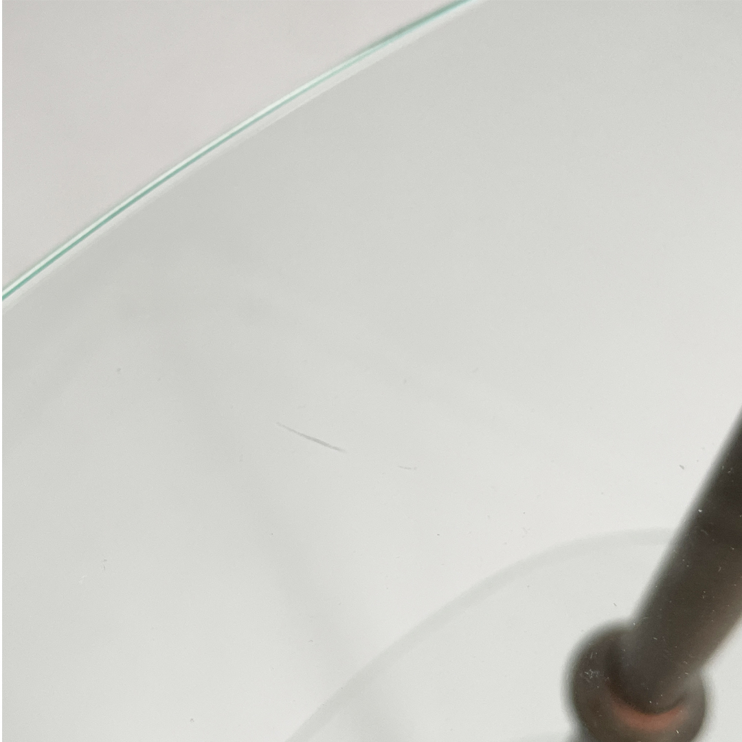 Consolle a tre piani in vetro. La struttura è composta da tre tubolari in metallo.