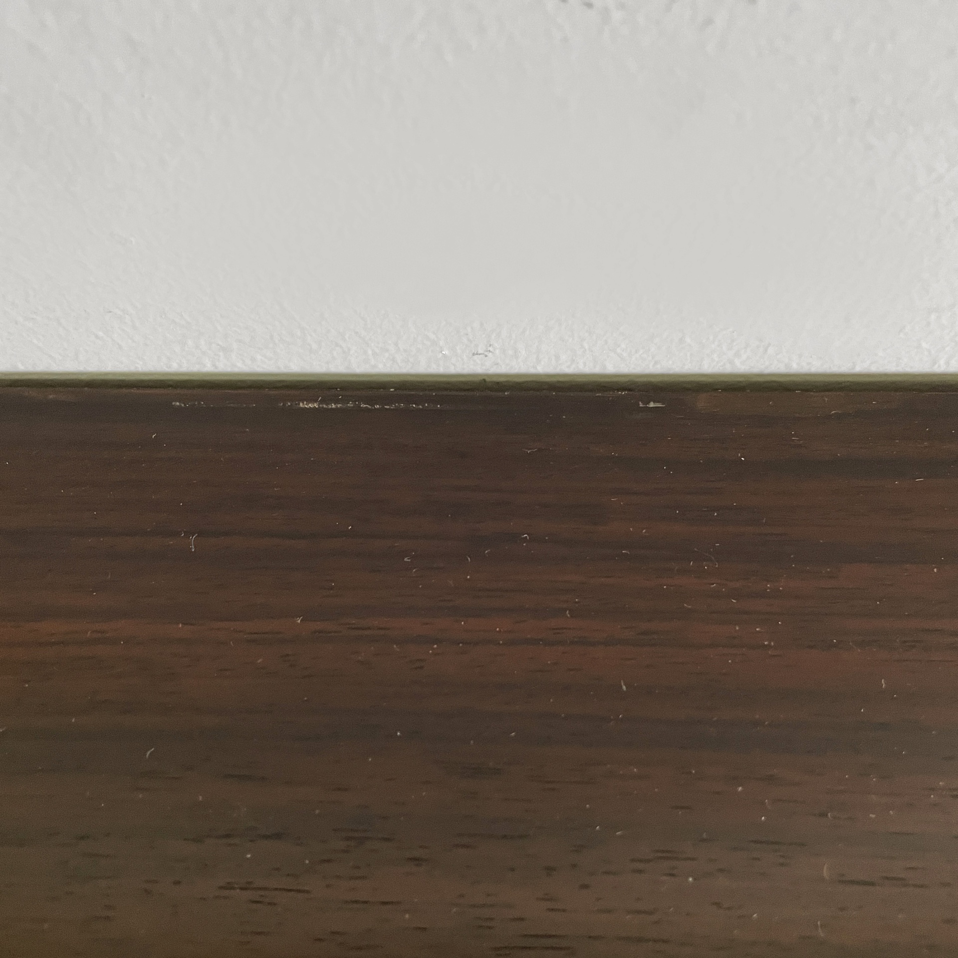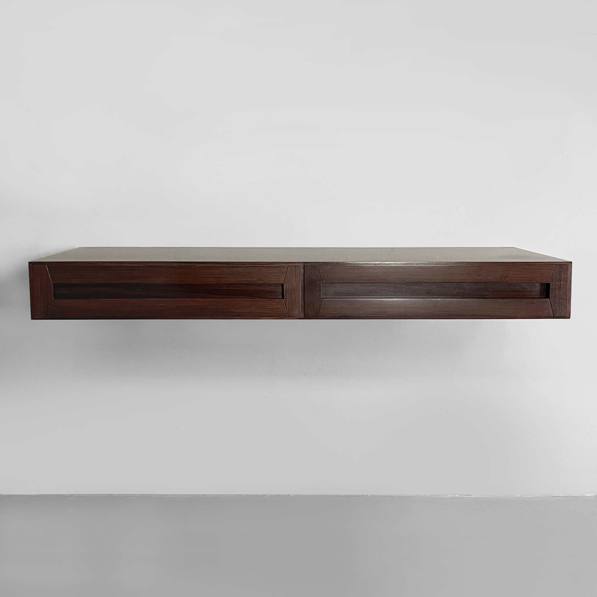 Consolle da parete con piano rettangolare, interamente in legno. Sul fronte presenta due cassetti rettangolari.