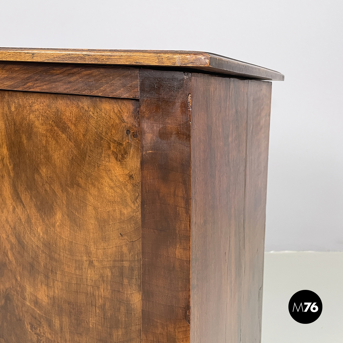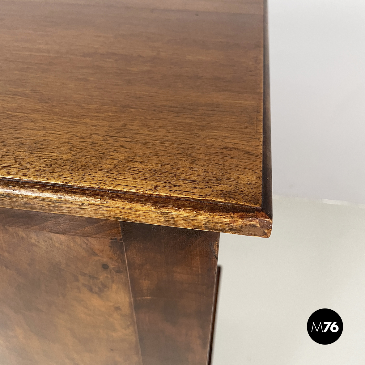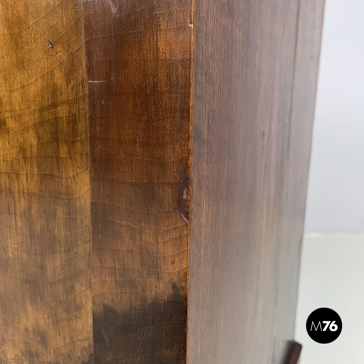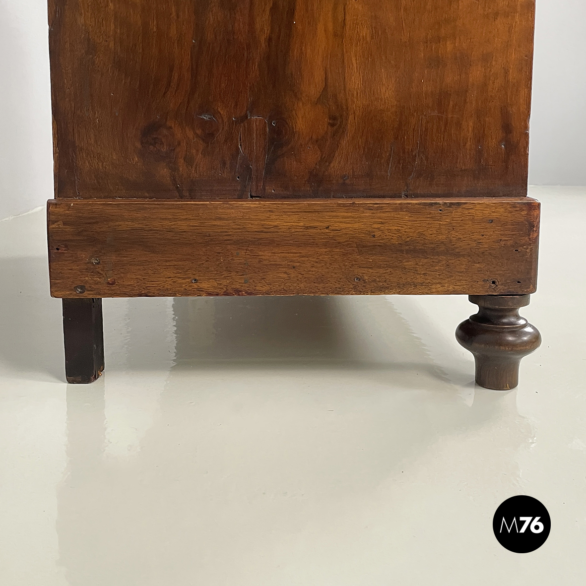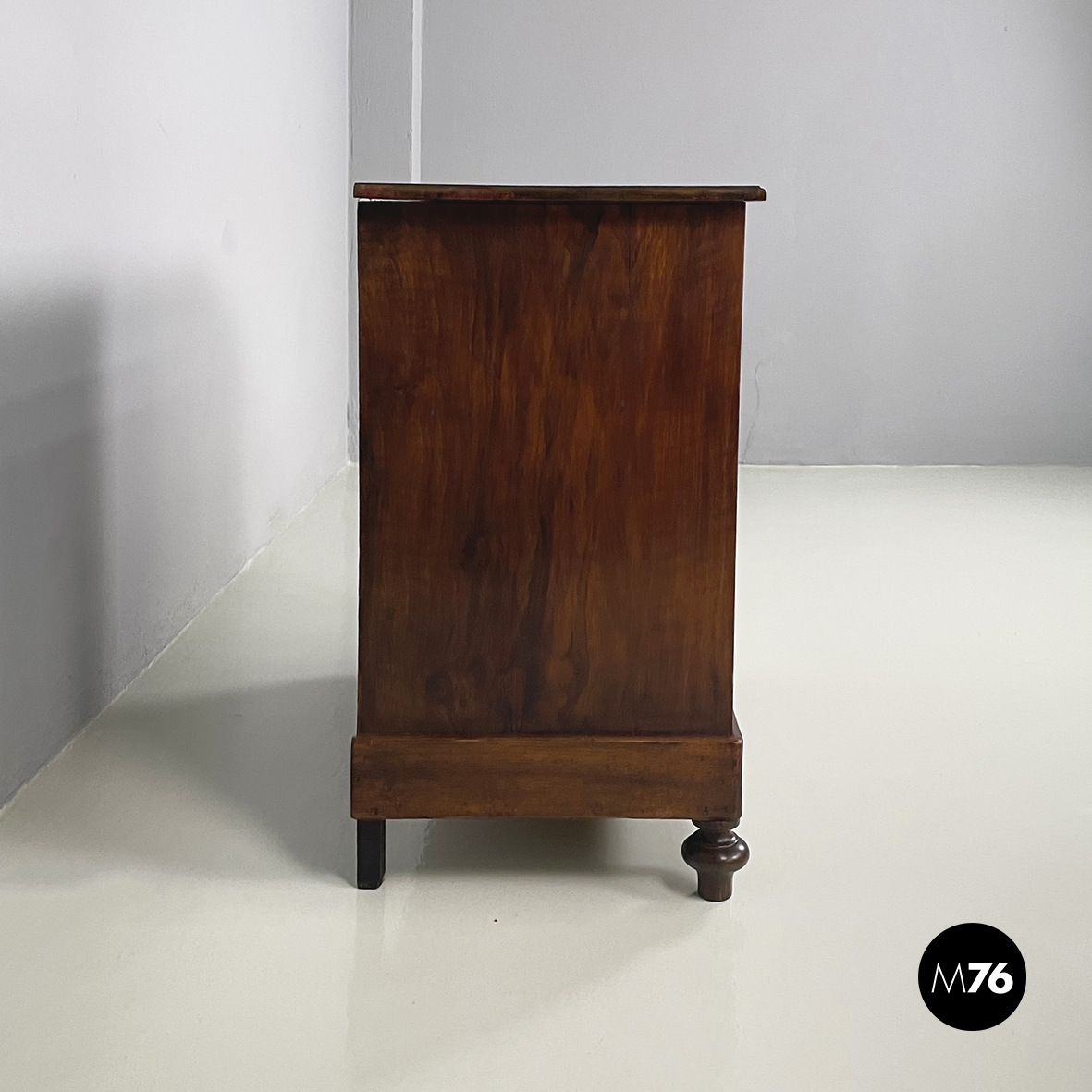Credenza con piano rettangolare, interamente in legno. Sul fronte presenta una doppia anta a battente e con mensola interna. Chiave presente. I piedini anteriori sono lavorati, mentre piedini posteriori sono a sezione quadrata. Utilizzabile come sideboard, armadietto o highboard.