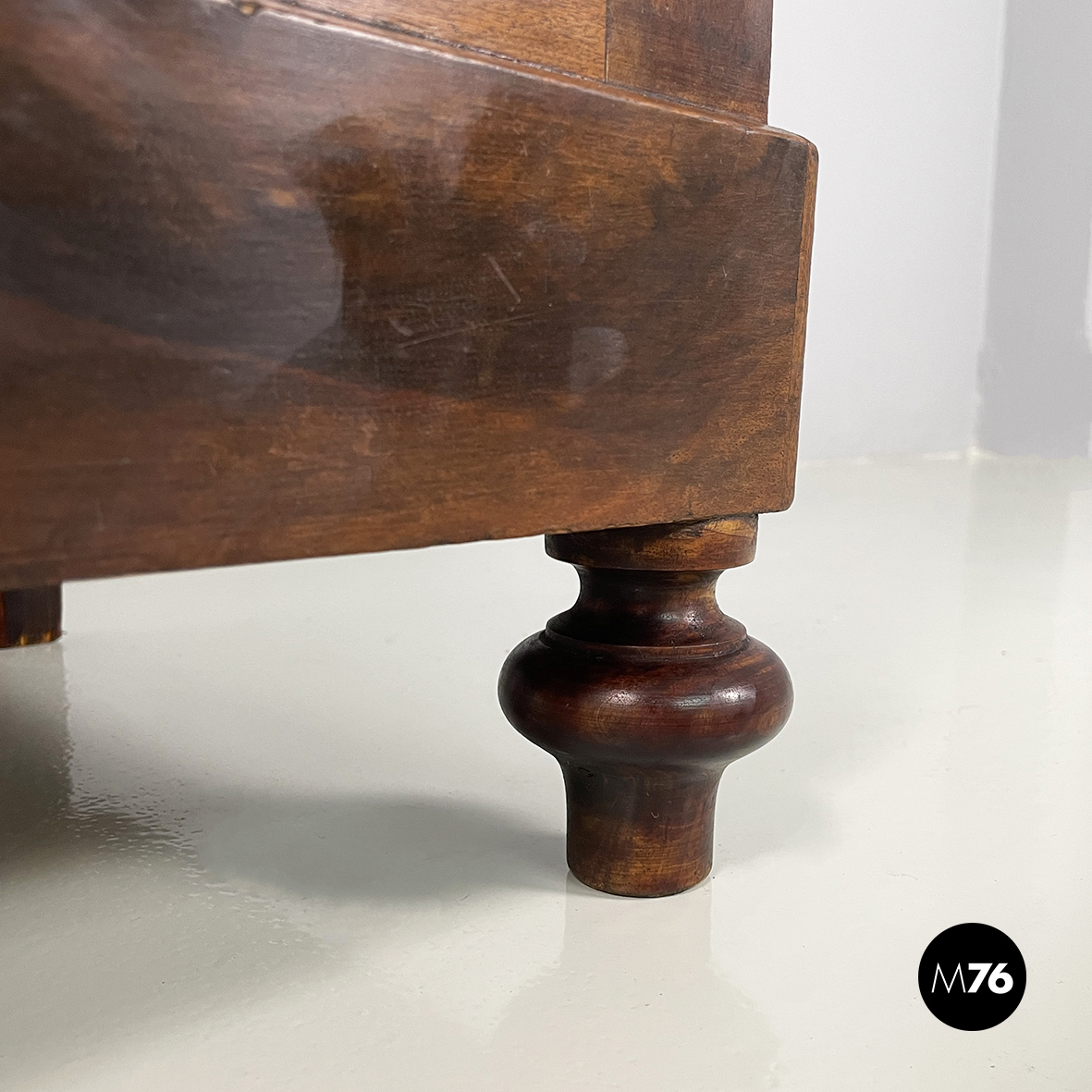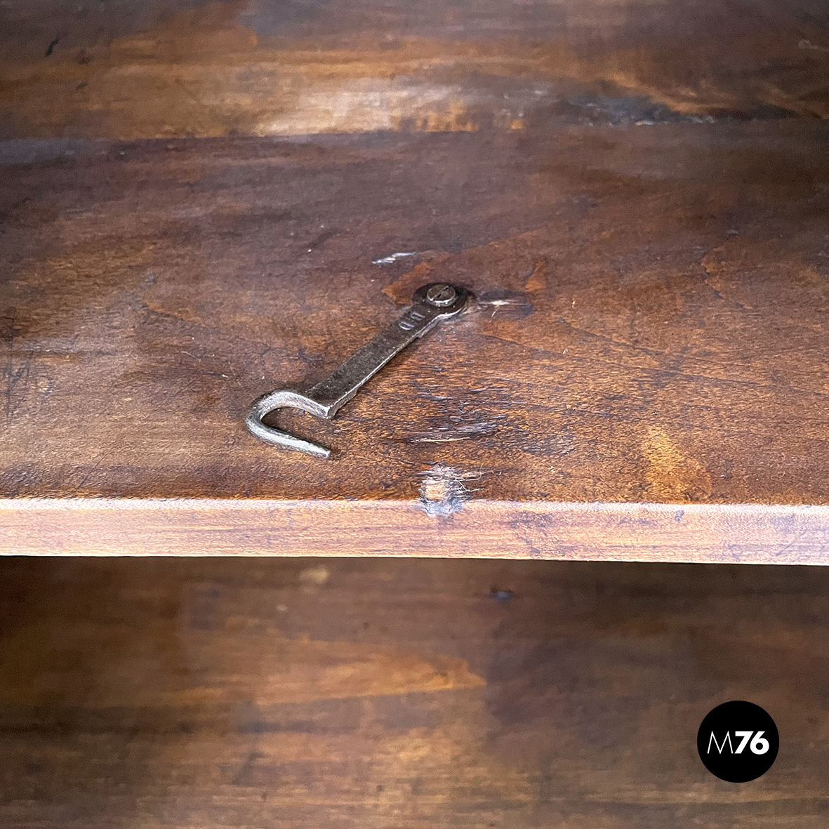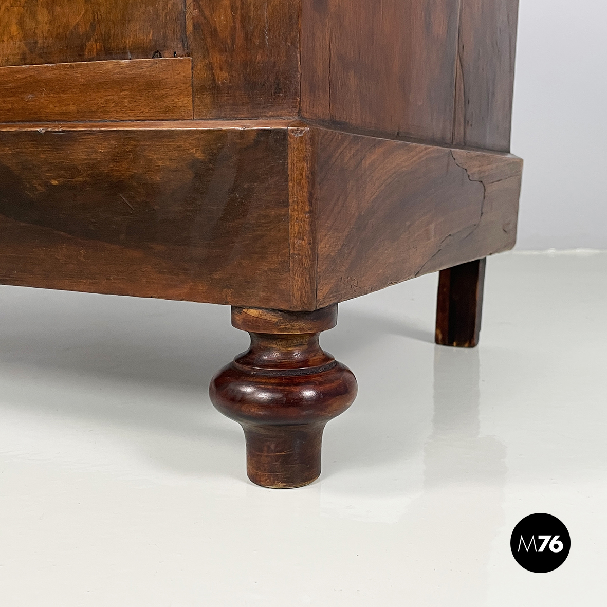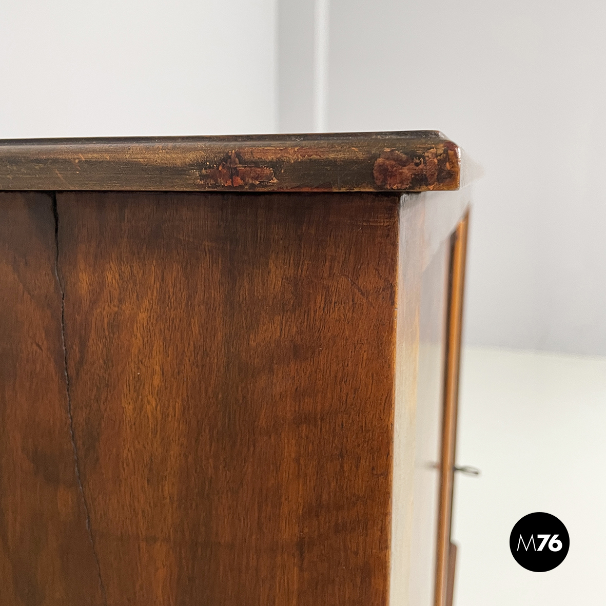 Credenza con piano rettangolare, interamente in legno. Sul fronte presenta una doppia anta a battente e con mensola interna. Chiave presente. I piedini anteriori sono lavorati, mentre piedini posteriori sono a sezione quadrata. Utilizzabile come sideboard, armadietto o highboard.