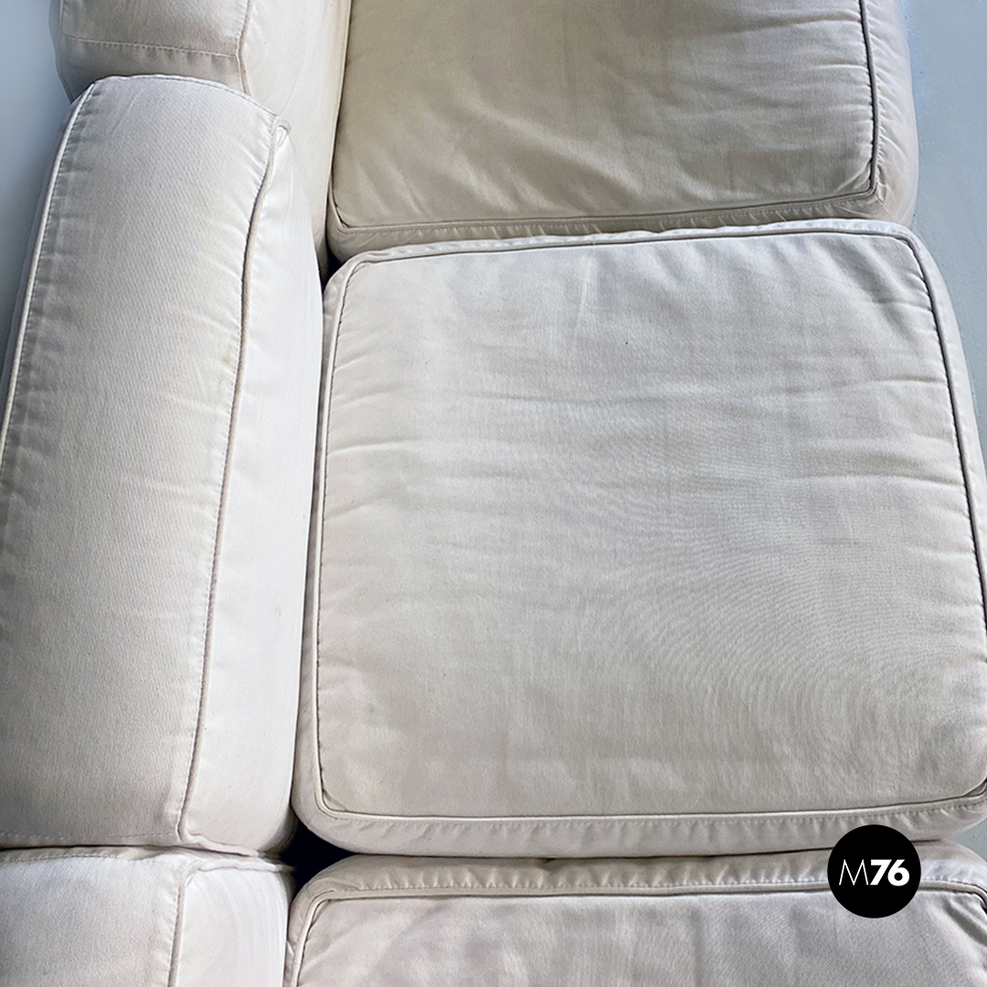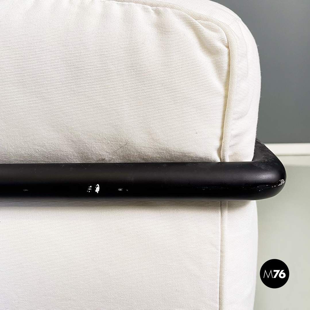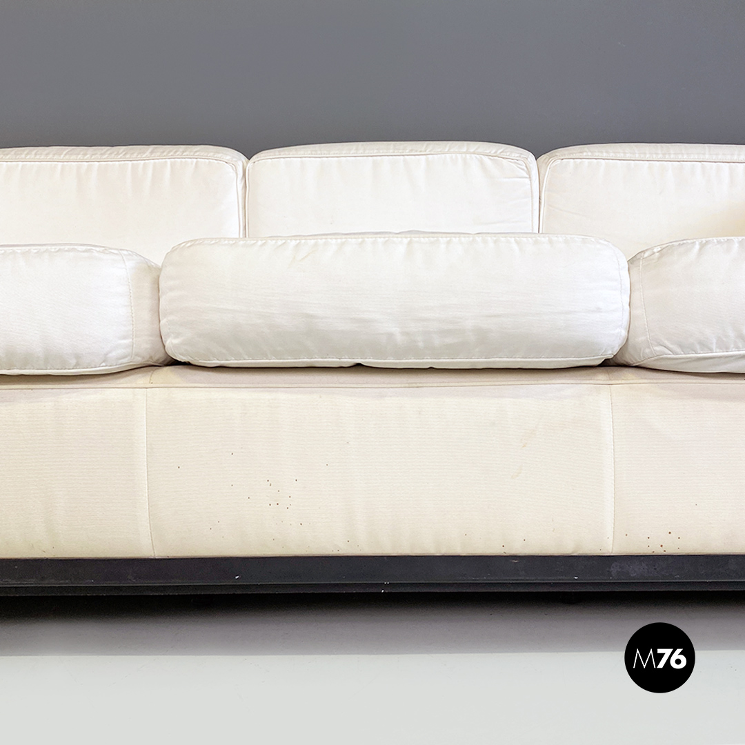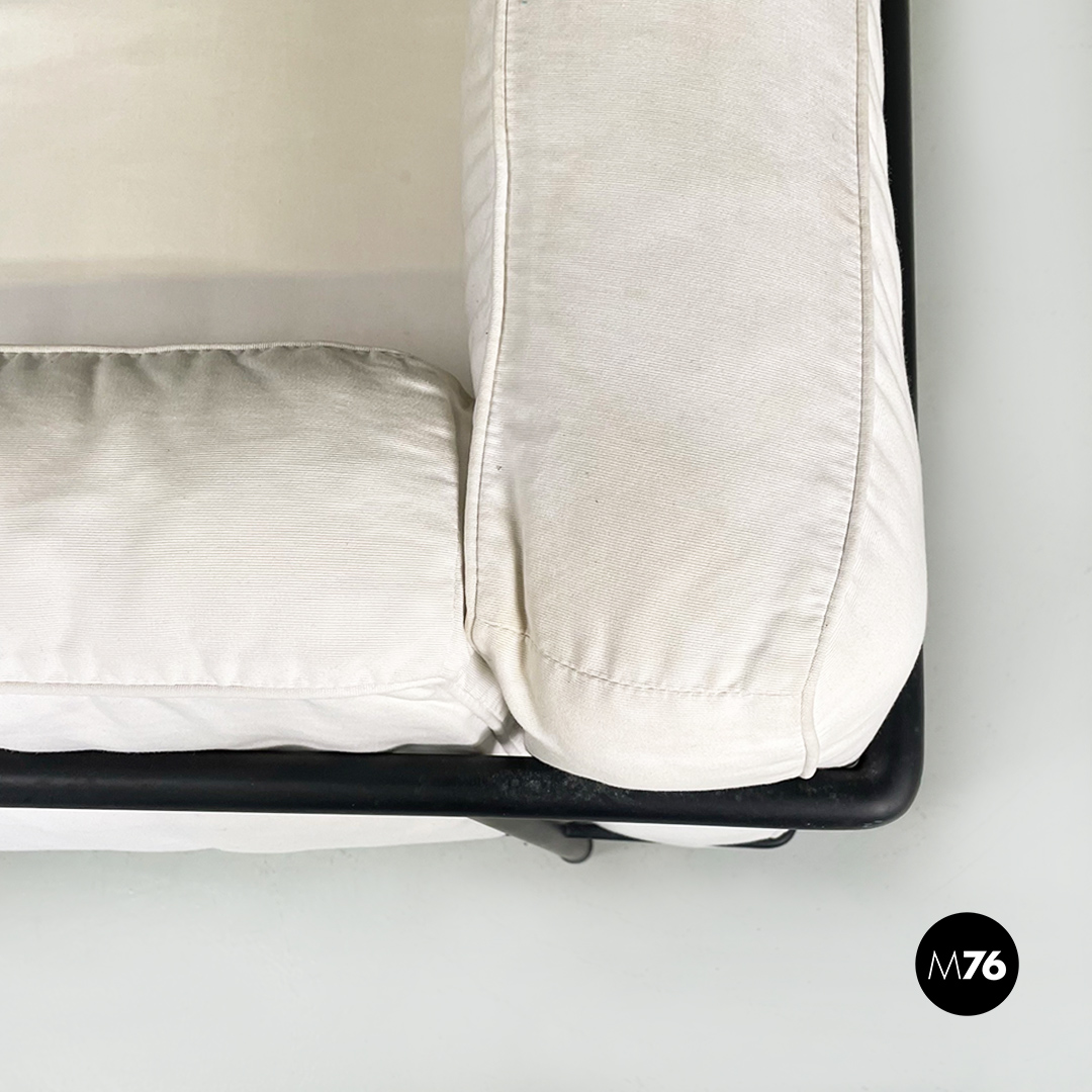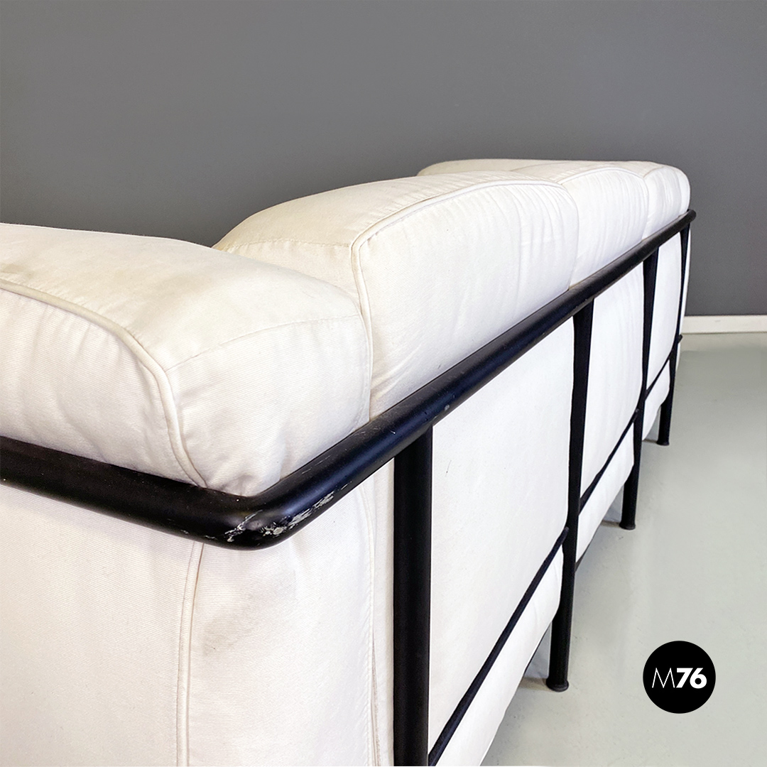 Coppia di divani modello LC2 da due e tre posti, con struttura in tubolare nero con finitura satinata e rivestimento interamente sfoderabile in tessuto di cotone bianco.