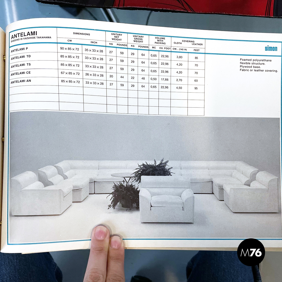 Prodotto da Simon Gavina nel 1970 ca. e disegnato da Kazuhide Takahama. Logo dell’azienda impresso sul tessuto sotto la seduta.
